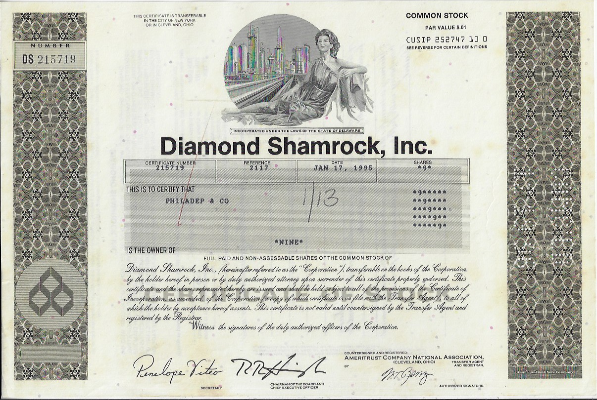 | 65411 | EUA, 1995, ação da empresa Diamond Shamrock Inc | 15,00 | Foto |