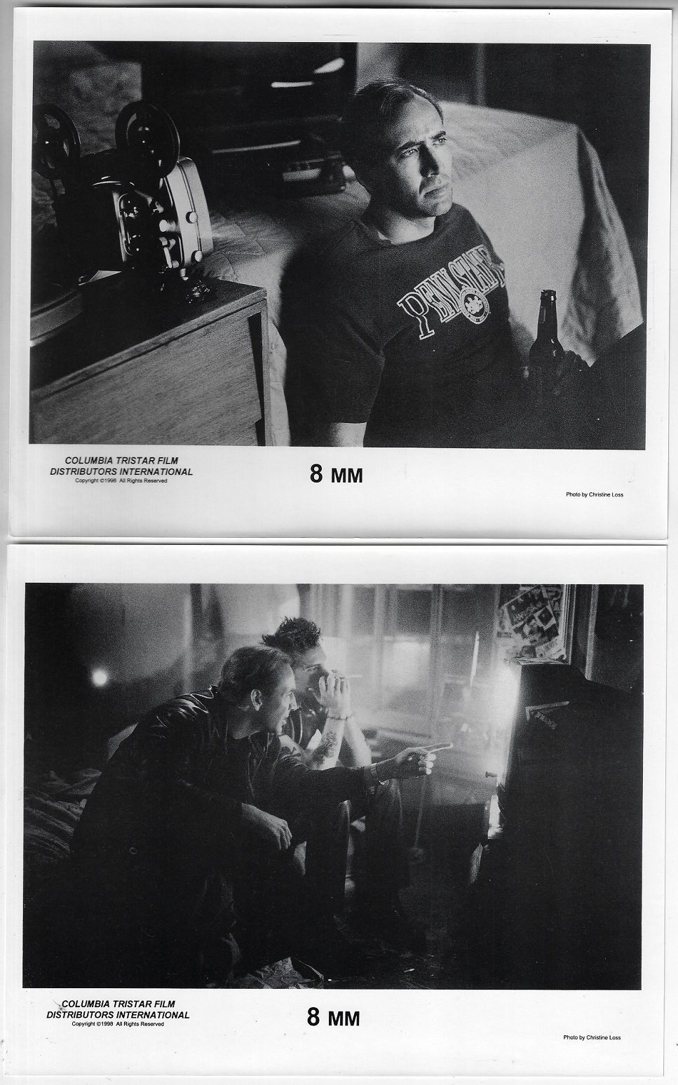 | 66212 | EUA, 1998, 2 Pôsters tipo Lobby Card do filme "8 mm (8 Milímetros)", tamanho 20x25 cm, estrelando Nicolas Cage e Joaquim Phoenix, identificado a caneta no verso | 16,00 | Foto |