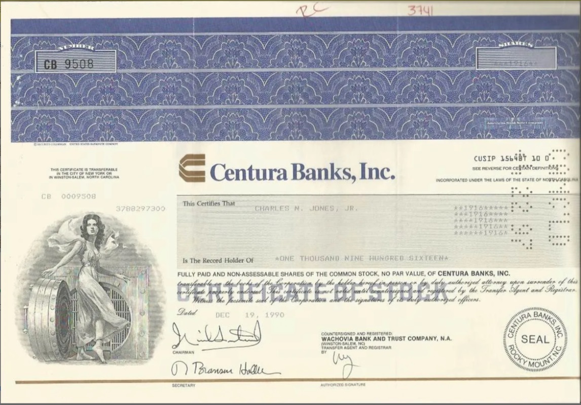 | 72957 | EUA, 1990, Ação da empresa Centura Banks, Inc. | 15,00 | Foto |