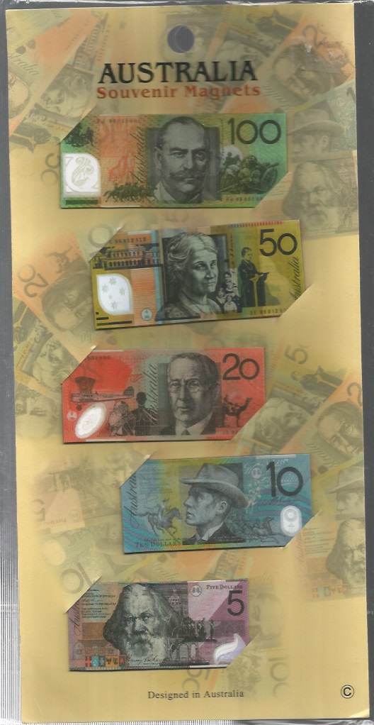 | 73480 | Austrália, 2000s, folder com 5 imãs de geladeira diferentes retratando cédulas | 10,00 | Foto |