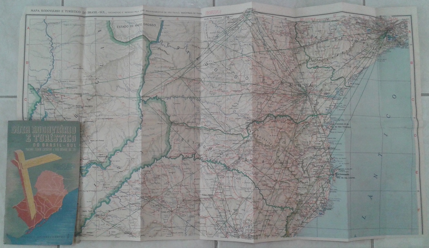 | 74054 | Brasil, 1950s, guia rodoviário e turístico do Brasil - Sul, Editora Melhoramentos, tamanho 45x98 cm, 88 páginas mais mapas | 20,00 | Foto |