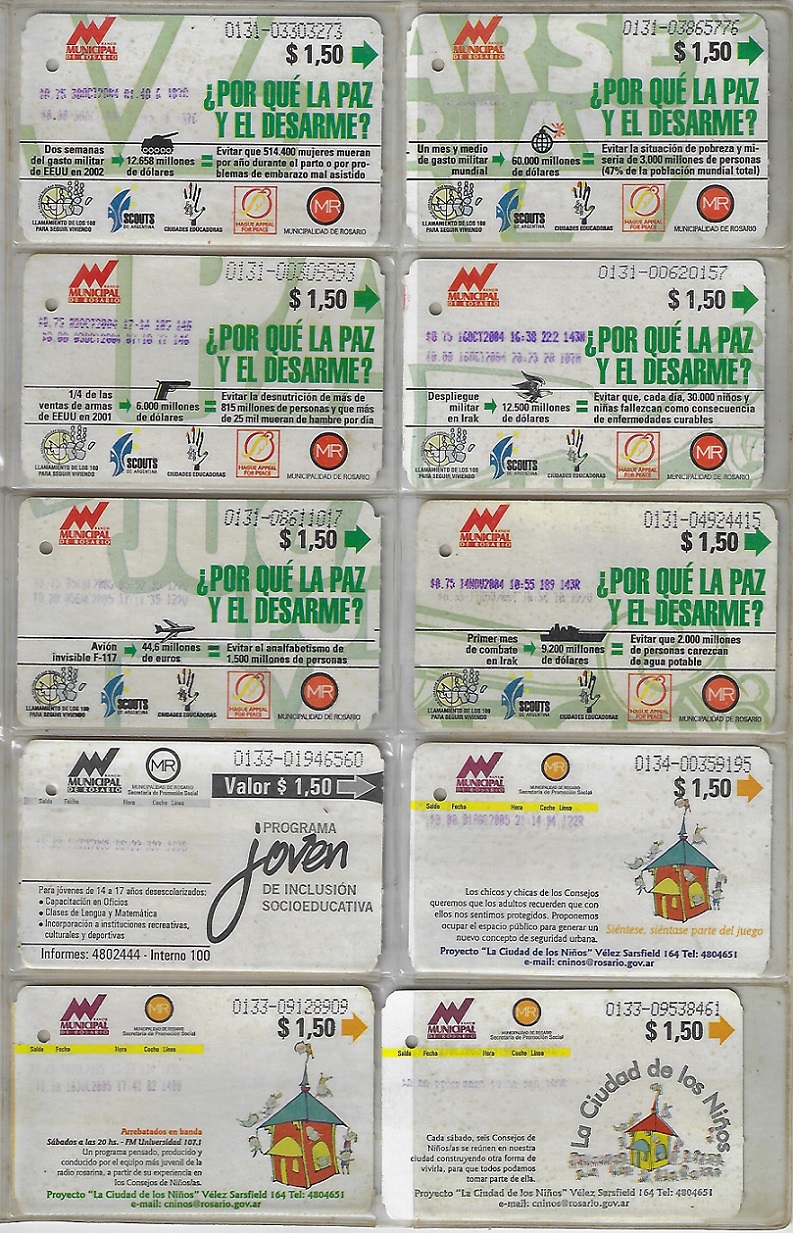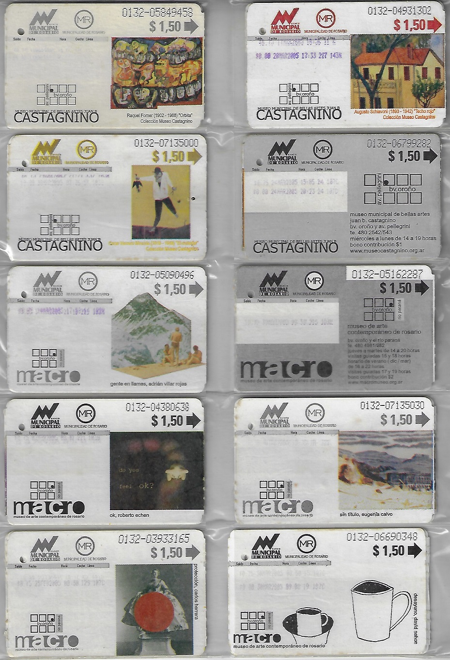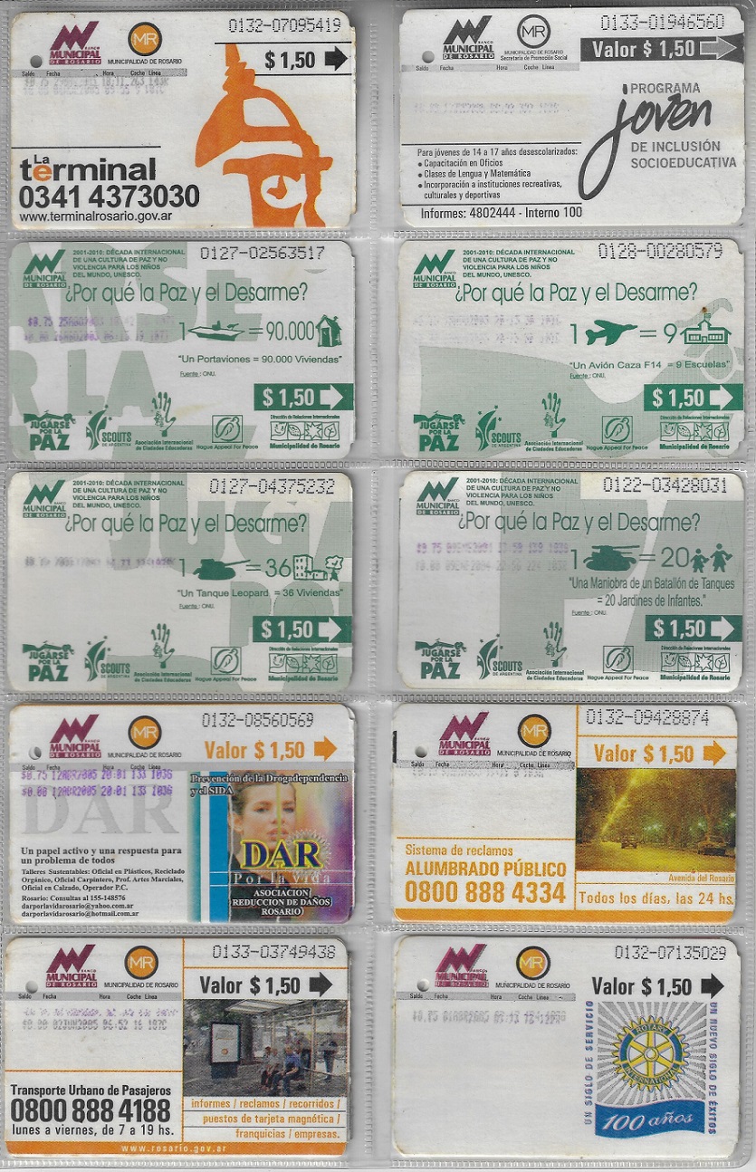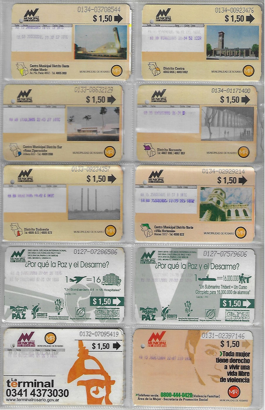| 75526 | Argentina, 2000s, 10 cartões magnéticos de metrô diferentes do município de Rosário | 5,00 | Foto |