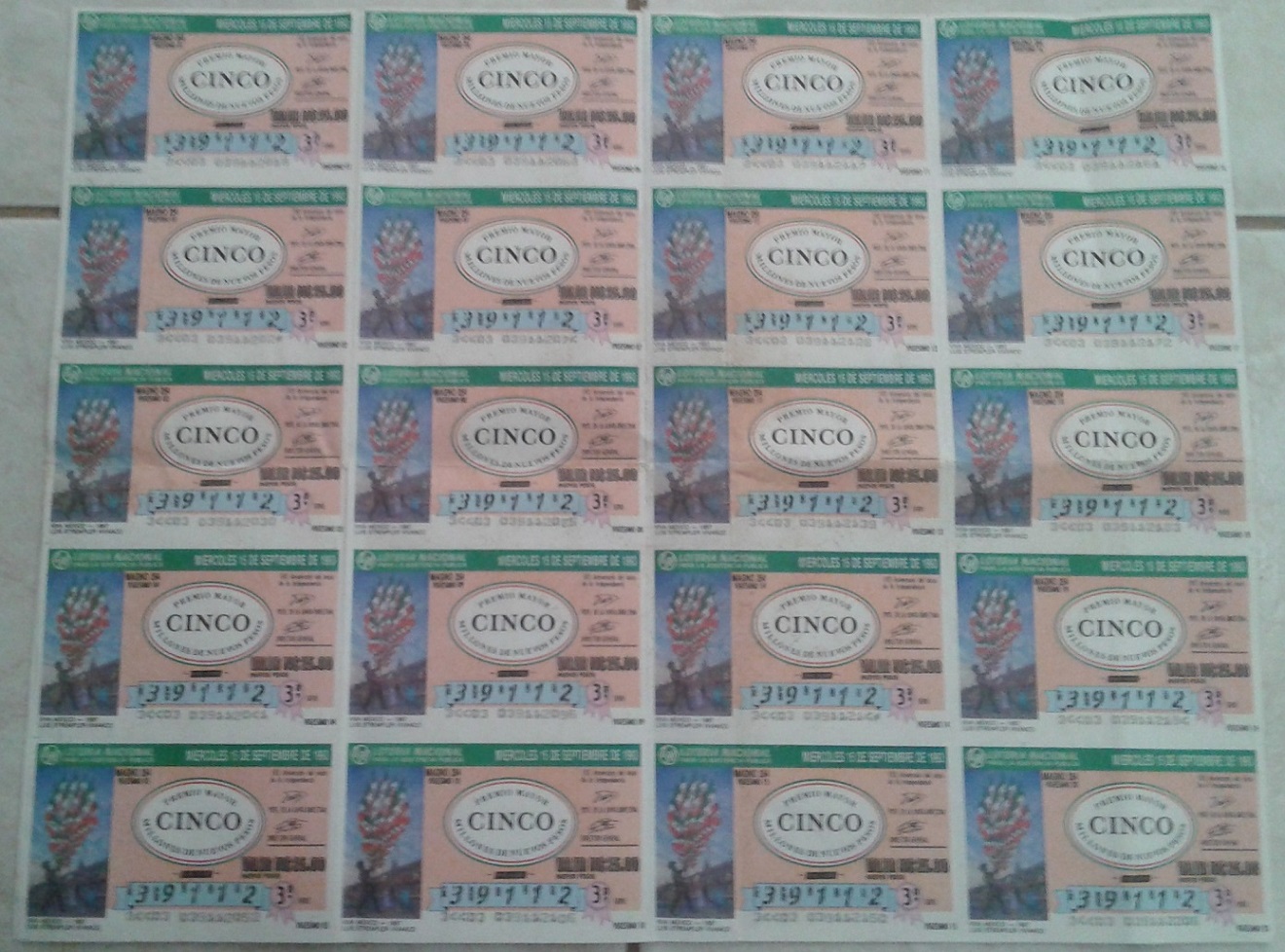 | 76411 | México, 1987, folha com 20 vigésimos da Loteria Nacional | 10,00 | Foto |