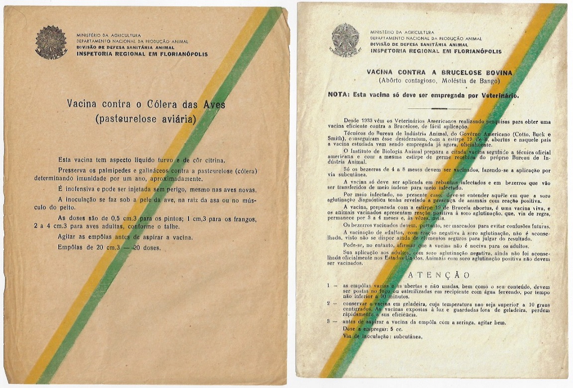 | 78233 | Brasil, 19??, 8 folhetos técnicos diferentes do Departamento Nacional de Produção Animal, Inspetoria de Florianópolis, com informações sobre várias vacinas | 16,00 | Foto |