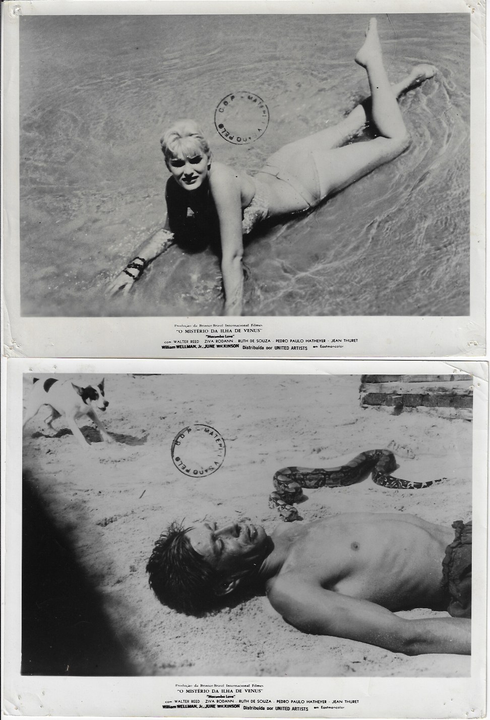 | 78793 | EUA, 1960, 2 Pôsteres tipo Lobby card do filme Macumba Love (O Mistério da Ilha de Vênus), estrelando William Wellman Jr. e June Wilkinson, filmado no Brasil, tamanho 18x24 cm, mínimos furos de tachinha nos cantos | 16,00 | Foto |