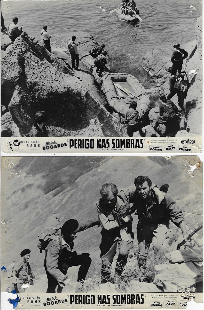 | 78806 | Grã-Bretanha, 1957, 3 Pôsteres tipo Lobby card do filme "Ill Met by Moonlight (Perigo nas Sombras)", tamanho 18x24 cm, mínimos furos de tachinha nos cantos | 24,00 | Foto |