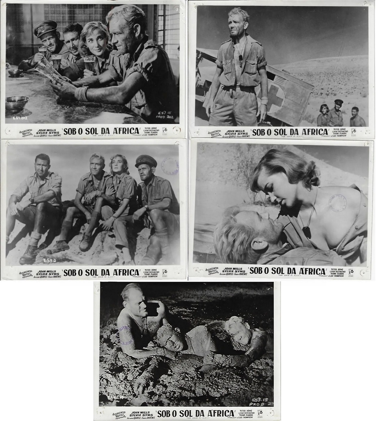 | 78829 | Grã-Bretanha, 1958, 5 Pôsteres tipo Lobby card do filme Ice-Cold in Alex (Sob o Sol da África), tamanho 18x24 cm, mínimos furos de tachinha nos cantos | 40,00 | Foto |