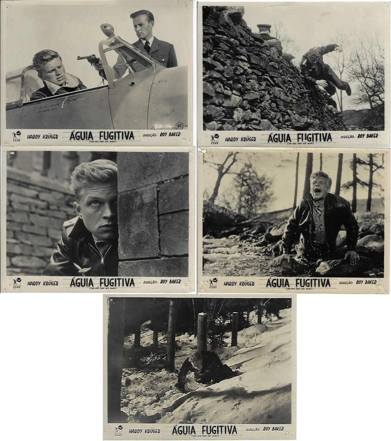 | 78833 | Grã-Bretanha, 1957, 5 Pôsteres tipo Lobby card do filme The One That Got Away (A Águia Fugitiva), tamanho 18x24 cm, mínimos furos de tachinha nos cantos | 40,00 | Foto |