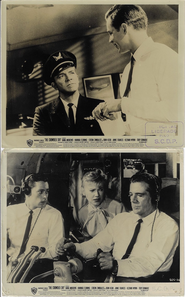 | 78887 | EUA, 1960, 2 Pôsteres tipo Lobby card do filme "The Crowded Sky (Céu de Agonia)", tamanho 20x25 cm, mínimos furos de tachinha nos cantos, Dana Andrews, Rhonda Fleming, John Kerr | 16,00 | Foto |