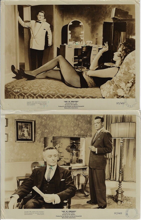 | 78889 | Grã-Bretanha, 1957, 2 Pôsteres tipo Lobby card do filme "Lady of Vengeance (Vingança Diabólica)", tamanho 20x26 cm, mínimos furos de tachinha nos cantos, Dennis O'Keefe, Ann Sears | 16,00 | Foto |