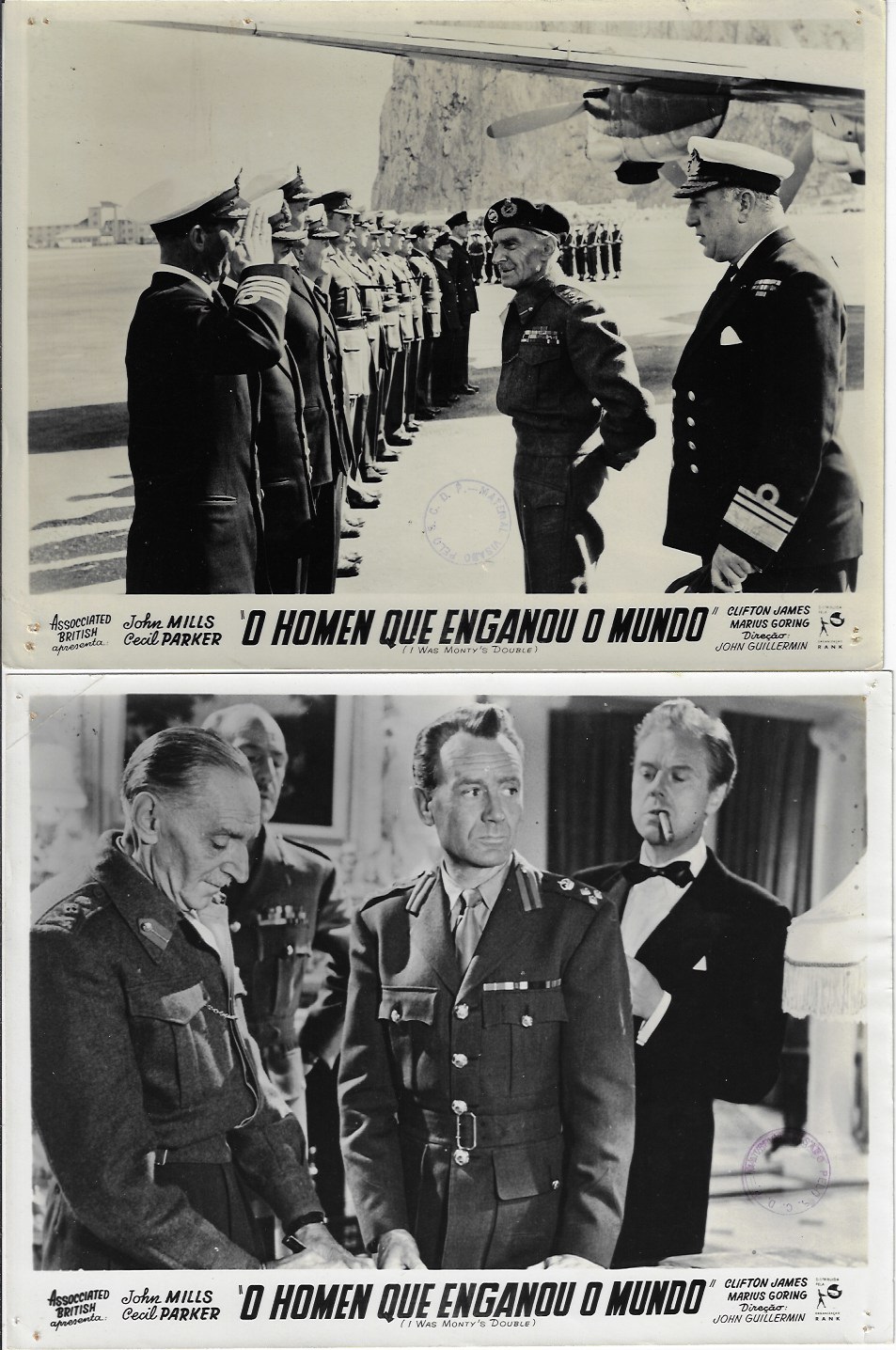 | 78897 | Grã-Bretanha, 1958, 2 Pôsteres tipo Lobby card do filme "I Was Monty's Double (O homem que enganou o mundo)", tamanho 18x24 cm, estrelando Clifton James, Cecil Parker, John Mills e Marius Goring, mínimos furos de tachinha nos cantos | 16,00 | Foto |