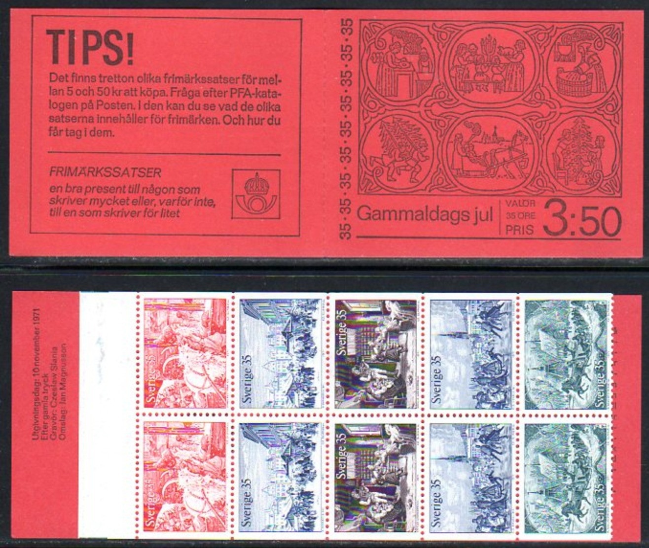 | 79099 | Suécia, caderneta completa de 1971 alusiva ao Natal, goma levemente amarelada | 20,00 | Foto |