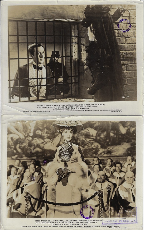 | 79178 | Grã-Bretanha, 1951, 2 Pôsteres tipo Lobby card do filme "Kind Hearts and Coronets (As Oito Vítimas)", estrelando Dennis Price, Joan Greenwood e Valerie Hobson, tamanho 20x25 cm | 16,00 | Foto |