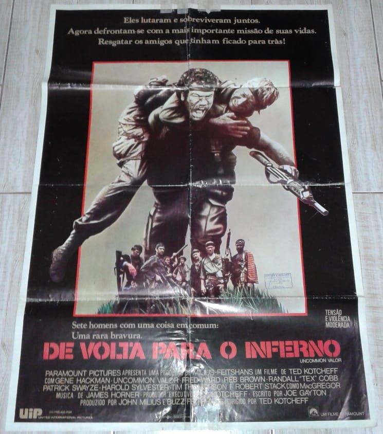 | 79673 | EUA, 1983, pôster do filme "Uncommon Valor (De volta para o Inferno)", tamanho 74x104 cm, estrelando Gene Hackman, pequenos defeitos, alguns reparos com fita adesiva | 20,00 | Foto |