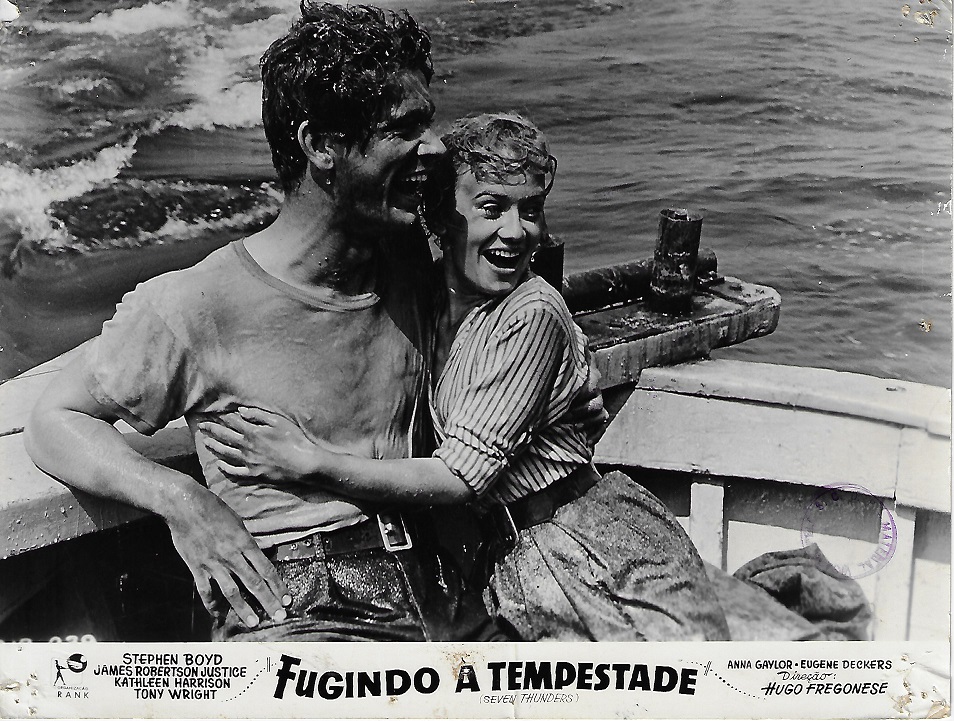 | 81121 | Grã-Bretanha, 1959, Pôster tipo Lobby card do filme "Seven Thunders (Fugindo à Tempestade)", tamanho 18x24 cm, Stephen Boyd e Anna Gaylor, mínimos furos de tachinha nos cantos | 10,00 | Foto |