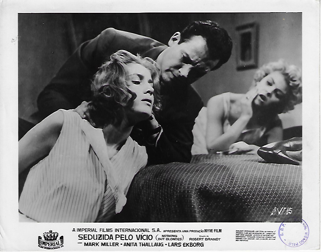 | 81127 | Suécia, 1957, Pôster tipo Lobby card do filme "Nothing But Blondes (Seduzida pelo Vício)", tamanho 20x25 cm, Anita Thallaug, Mark Miller, Rita Johannson | 10,00 | Foto |