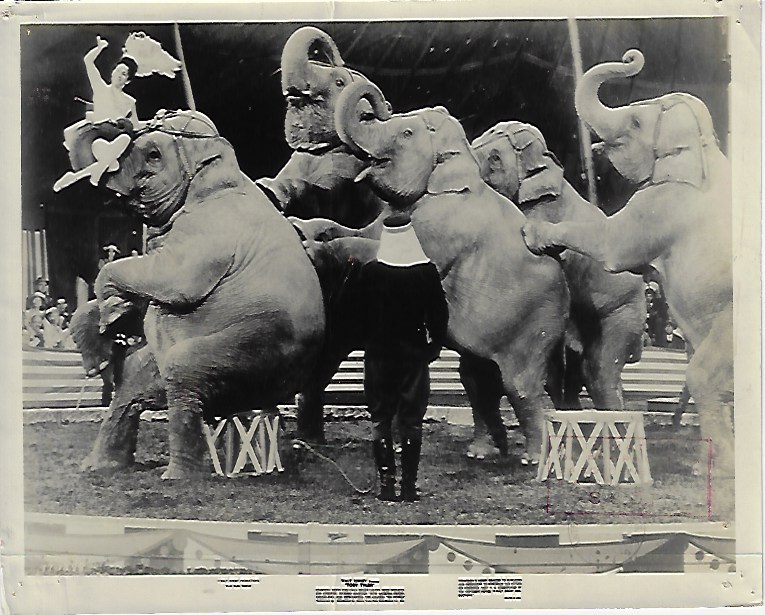 | 81162 | EUA, 1960, Pôster tipo Lobby card do filme "Disney - Toby Tyler (Disney - O Mundo Maravilhoso do Circo)", 20x25 cm, dobra e furos de tachinha nos cantos, elefantes | 10,00 | Foto |