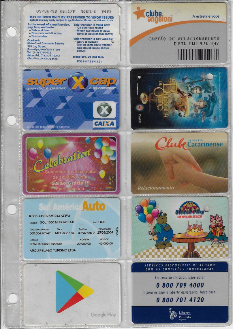 | 82767 | Universais, 50 cartões magnéticos, com código de barra ou chip, todos diferentes | 30,00 | Foto |