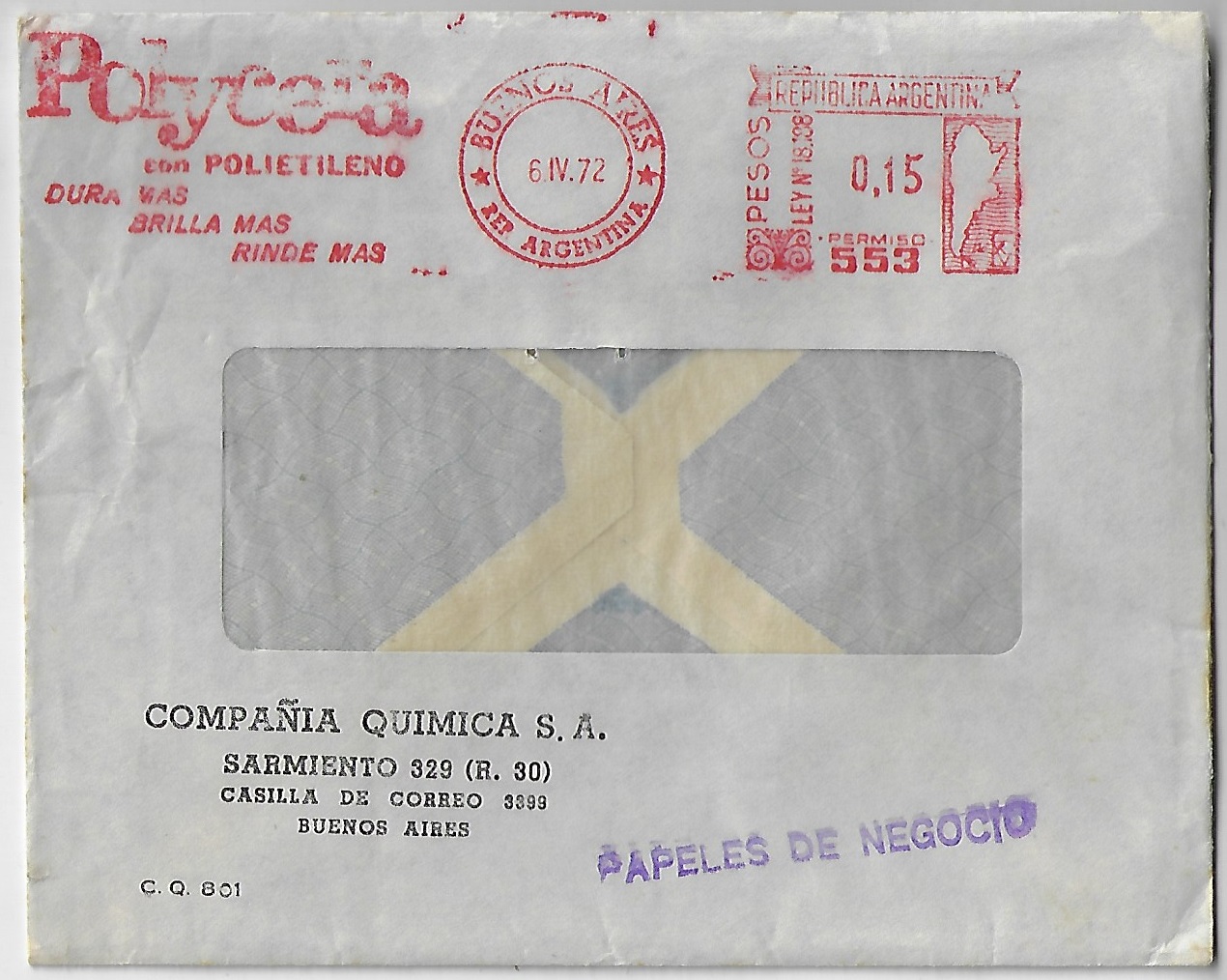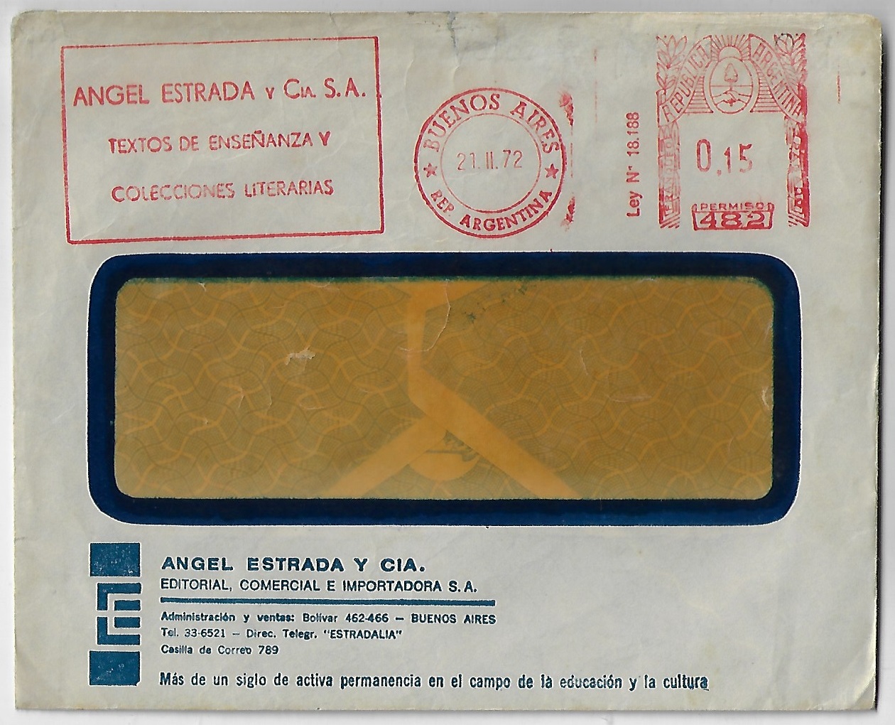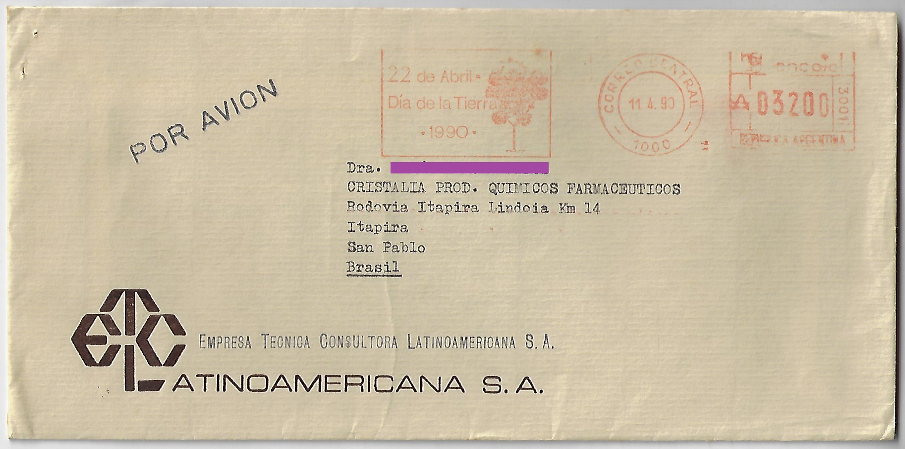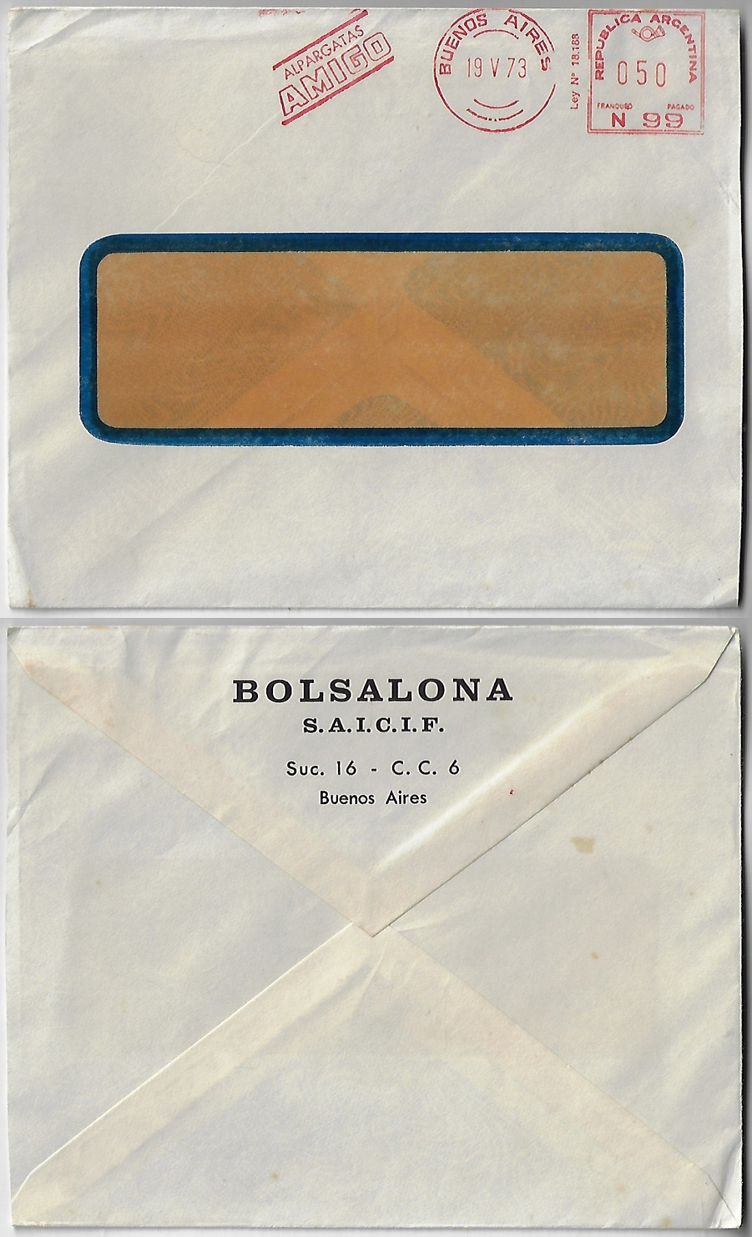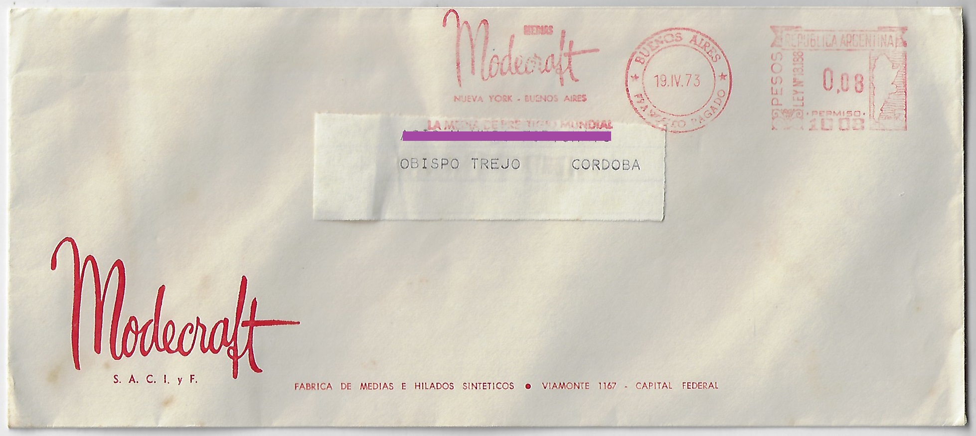 | 43069 | Argentina, 1946, envelope comercial enviado de Buenos Aires (25/12) para São Paulo, reendereçado para Caixa Postal, selo Exposição da Indústria, carimbo com slogan "Apoie a obra de Assistência Social dos Cardiopatas. Damas Cooperadas" | 10,00 | Foto |
