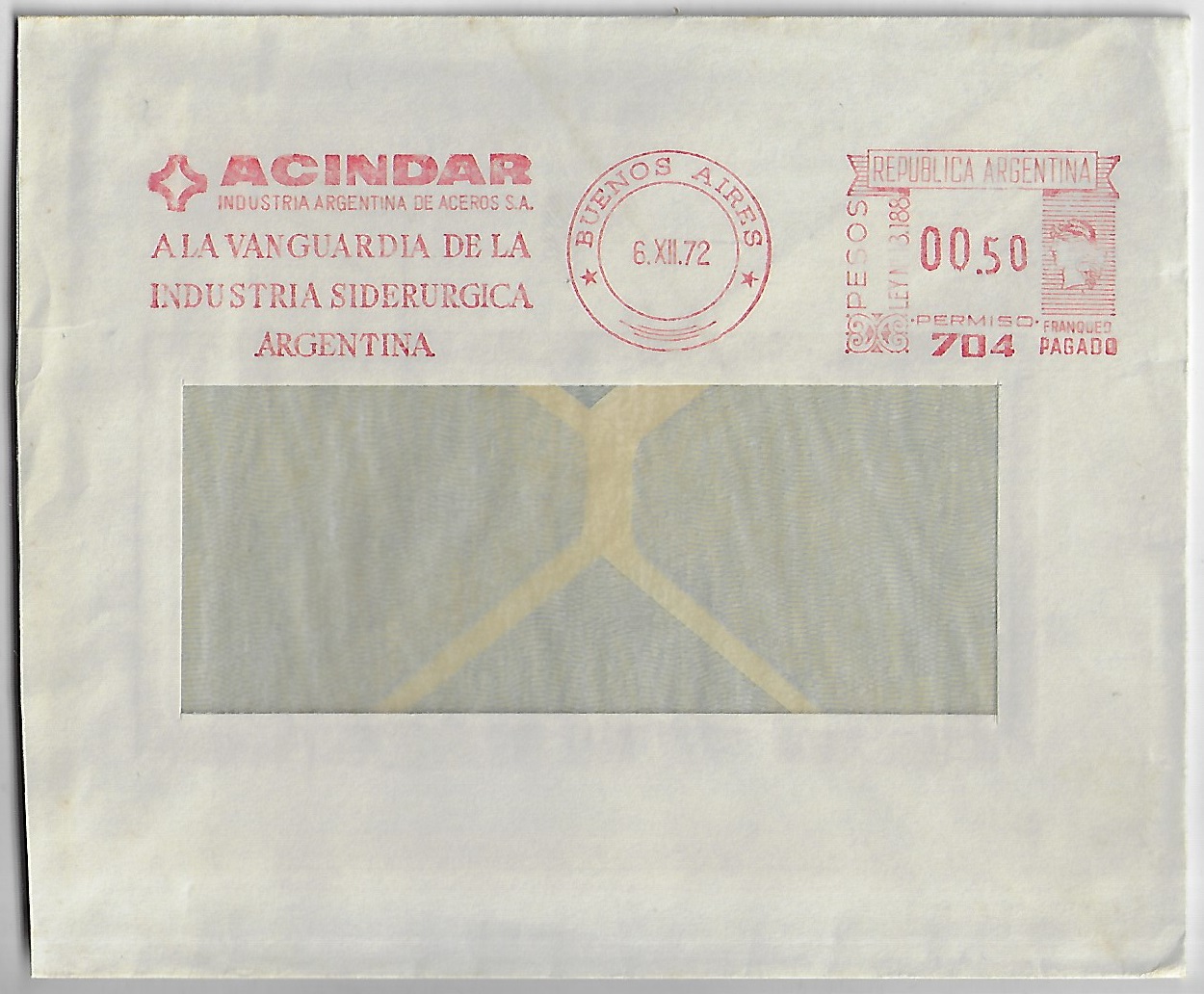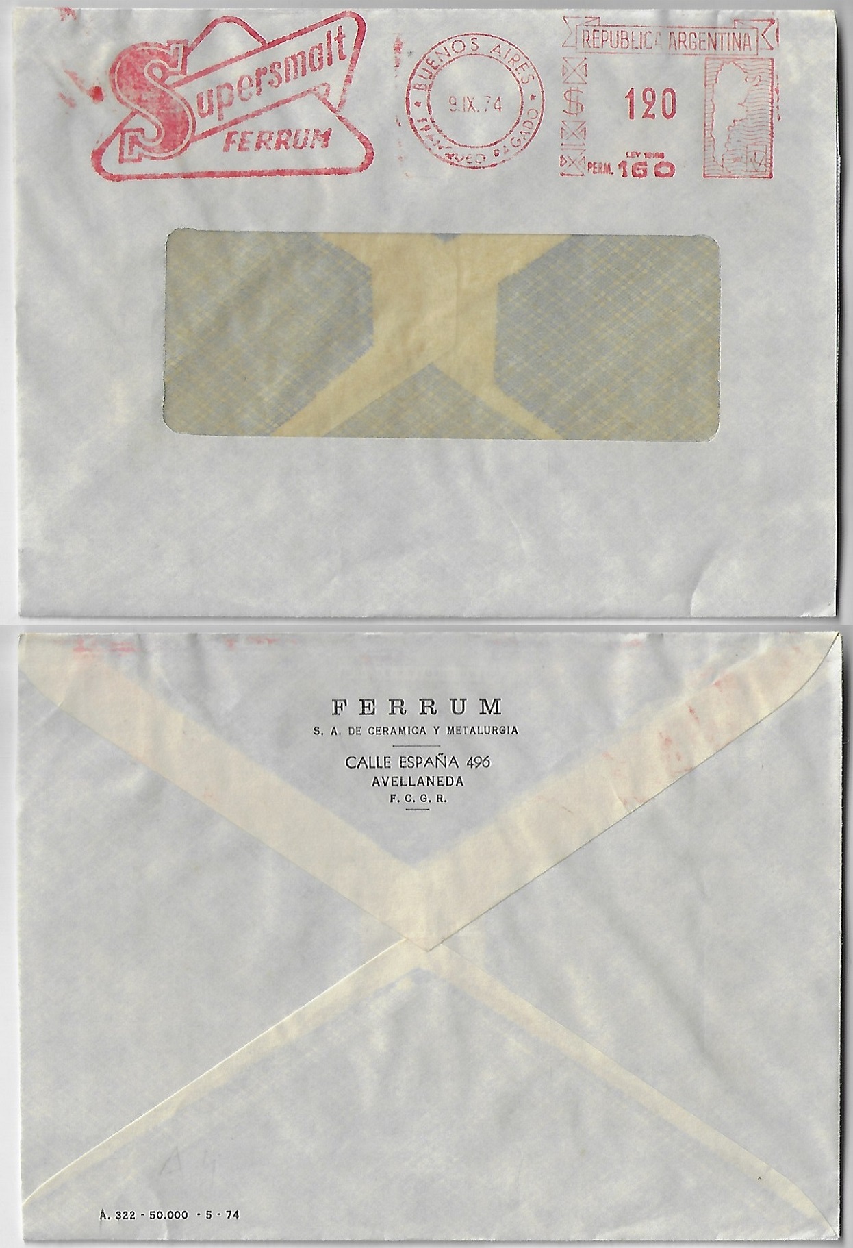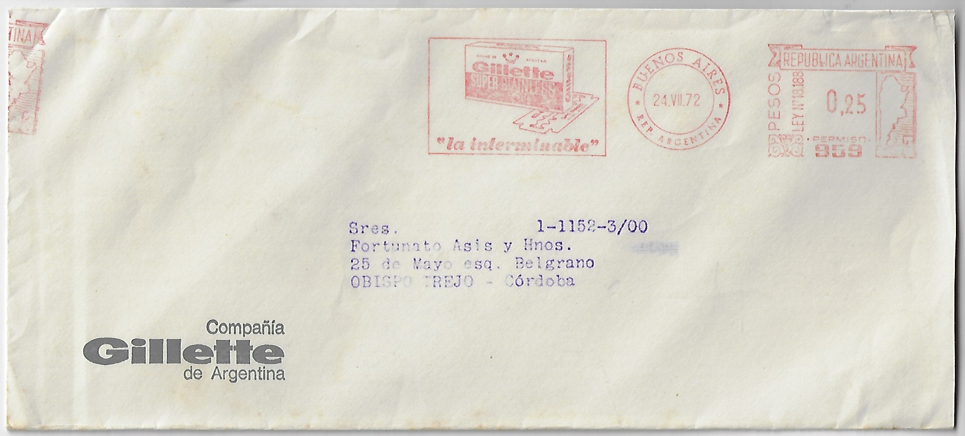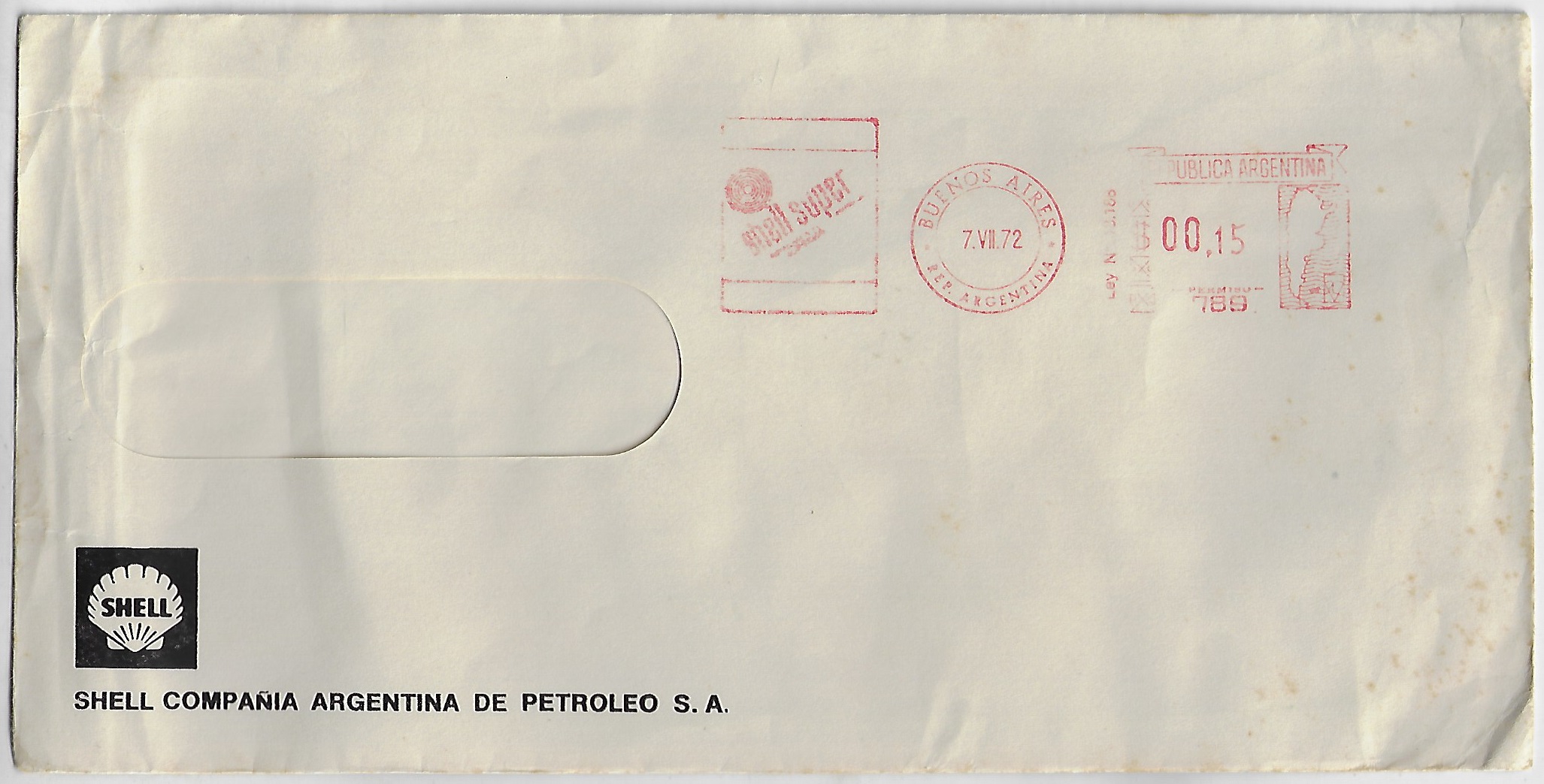| 43069 | Argentina, 1946, envelope comercial enviado de Buenos Aires (25/12) para São Paulo, reendereçado para Caixa Postal, selo Exposição da Indústria, carimbo com slogan "Apoie a obra de Assistência Social dos Cardiopatas. Damas Cooperadas" | 10,00 | Foto |