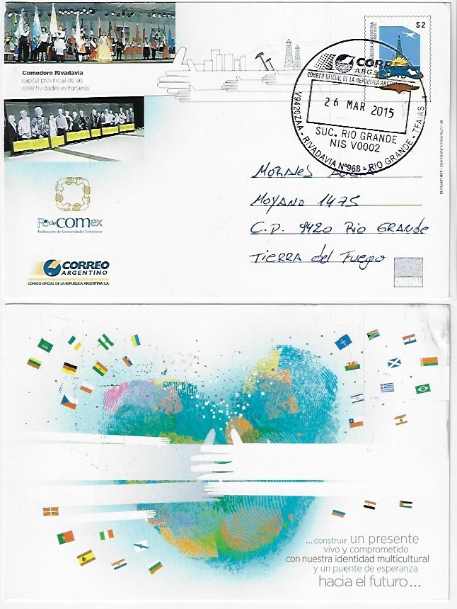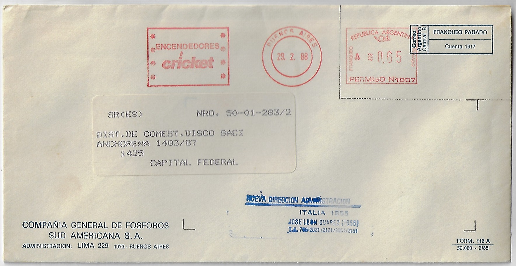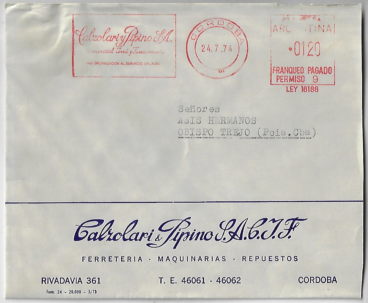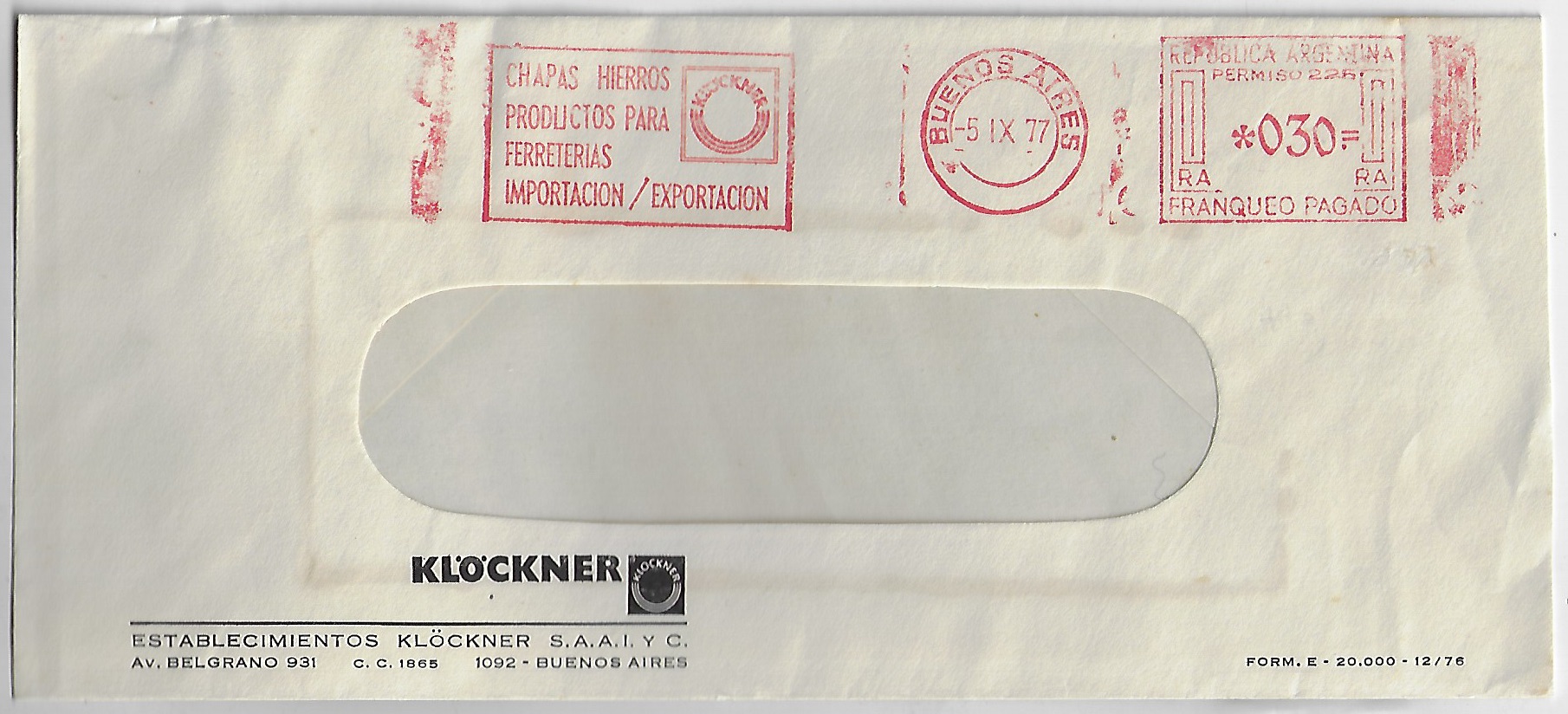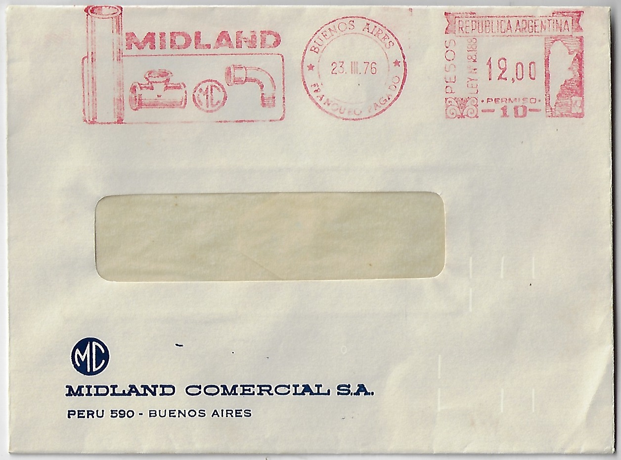 | 43069 | Argentina, 1946, envelope comercial enviado de Buenos Aires (25/12) para São Paulo, reendereçado para Caixa Postal, selo Exposição da Indústria, carimbo com slogan "Apoie a obra de Assistência Social dos Cardiopatas. Damas Cooperadas" | 10,00 | Foto |