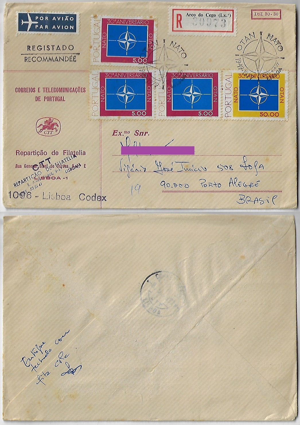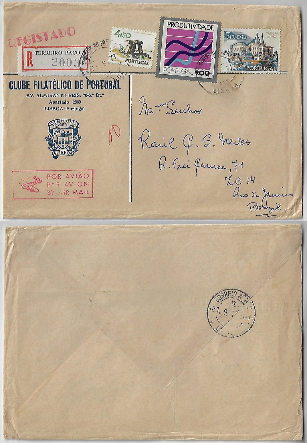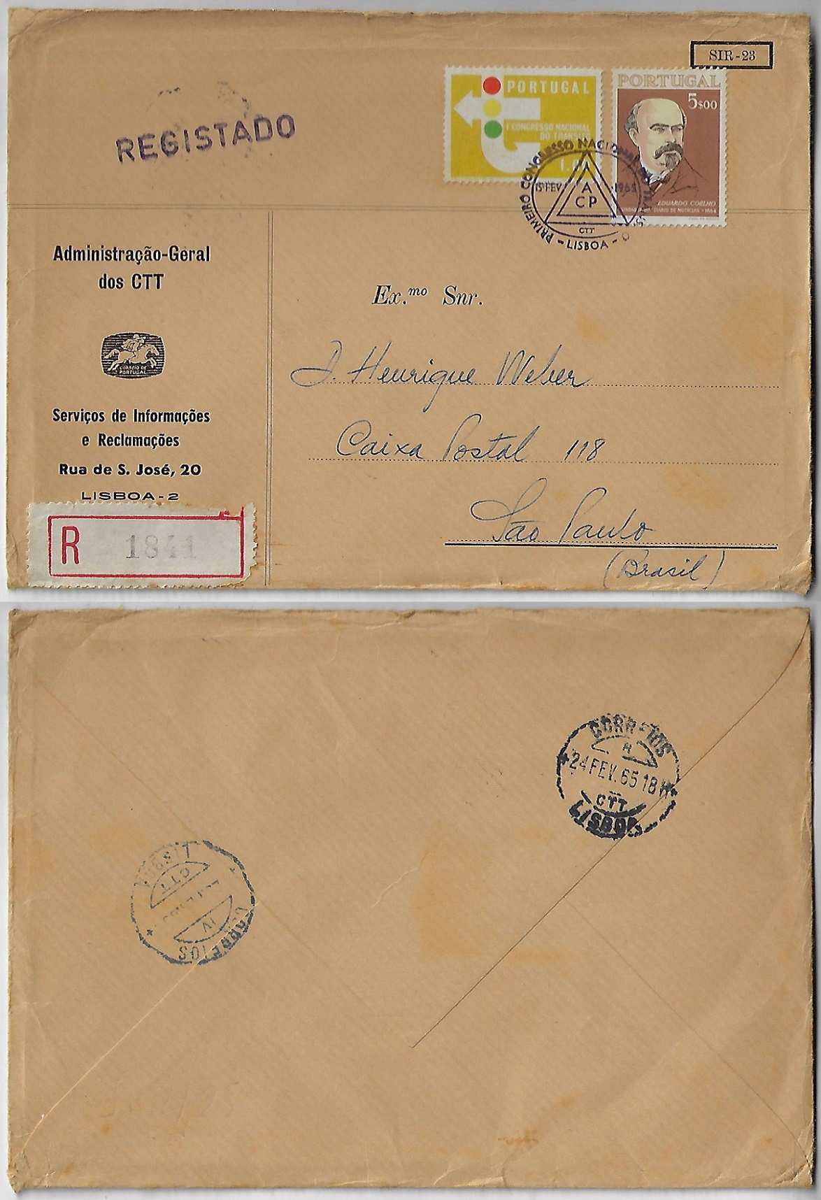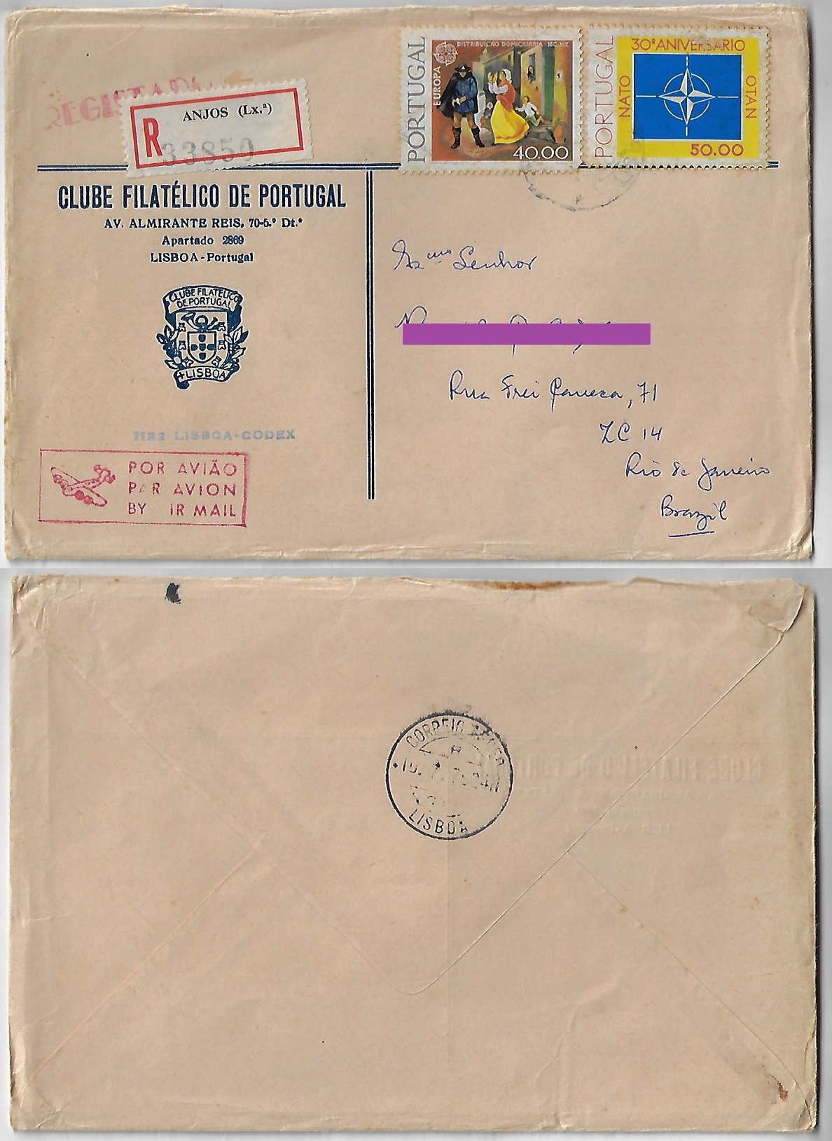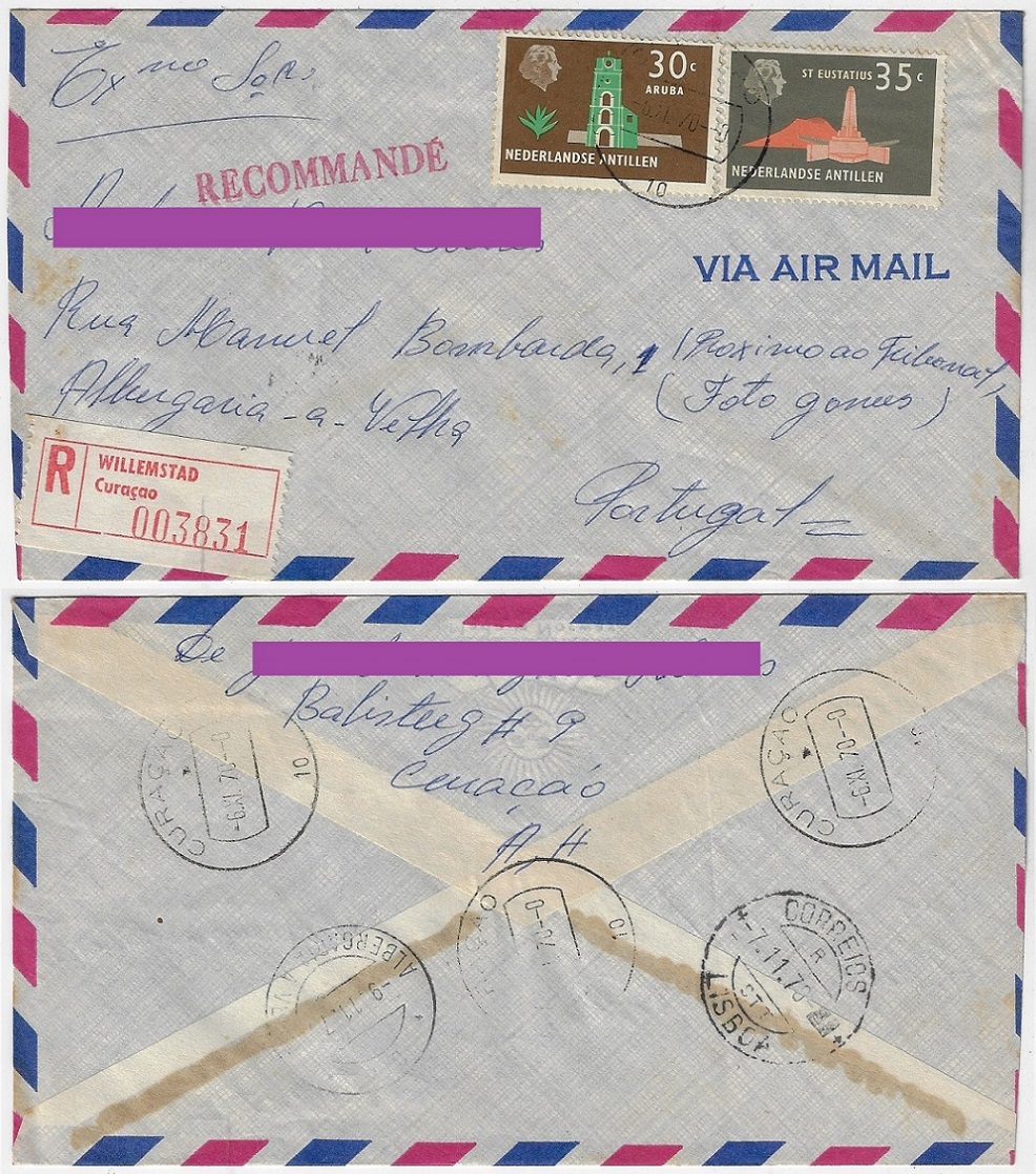 | 75084 | Antilhas Holandesas, 1970, envelope aéreo registrado de Willemstad / Curaçao (6/11), por Lisboa (7/11), para Albergaria a Velha (9/11) | 20,00 | Foto |