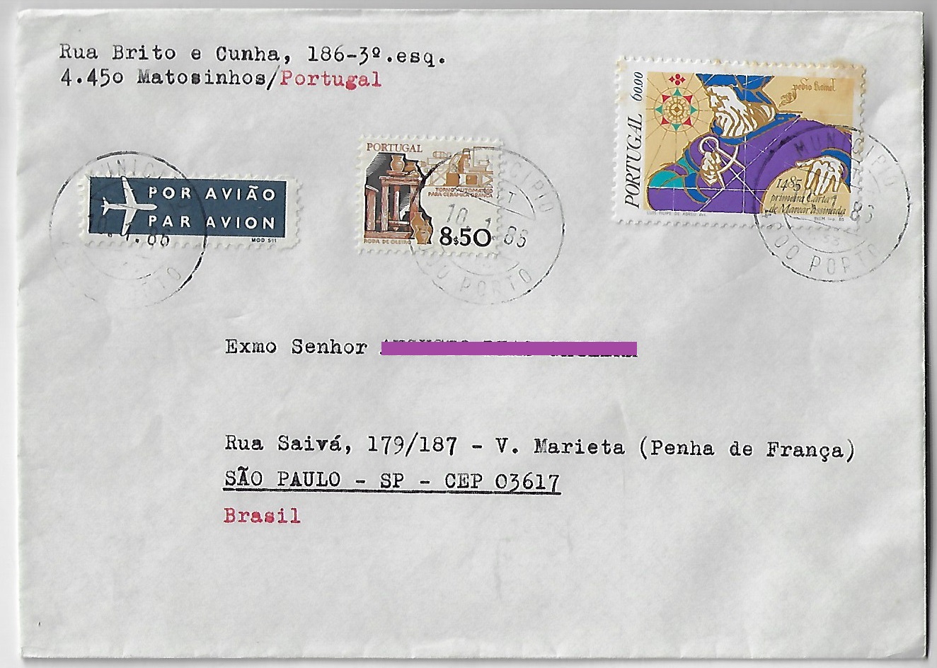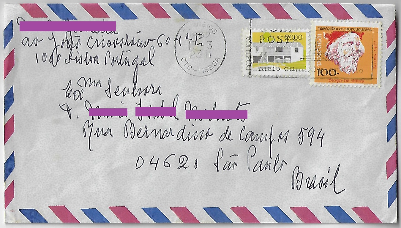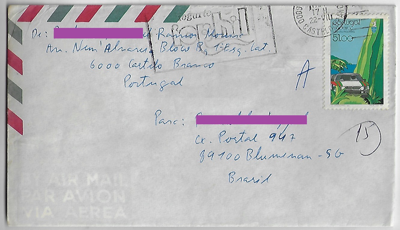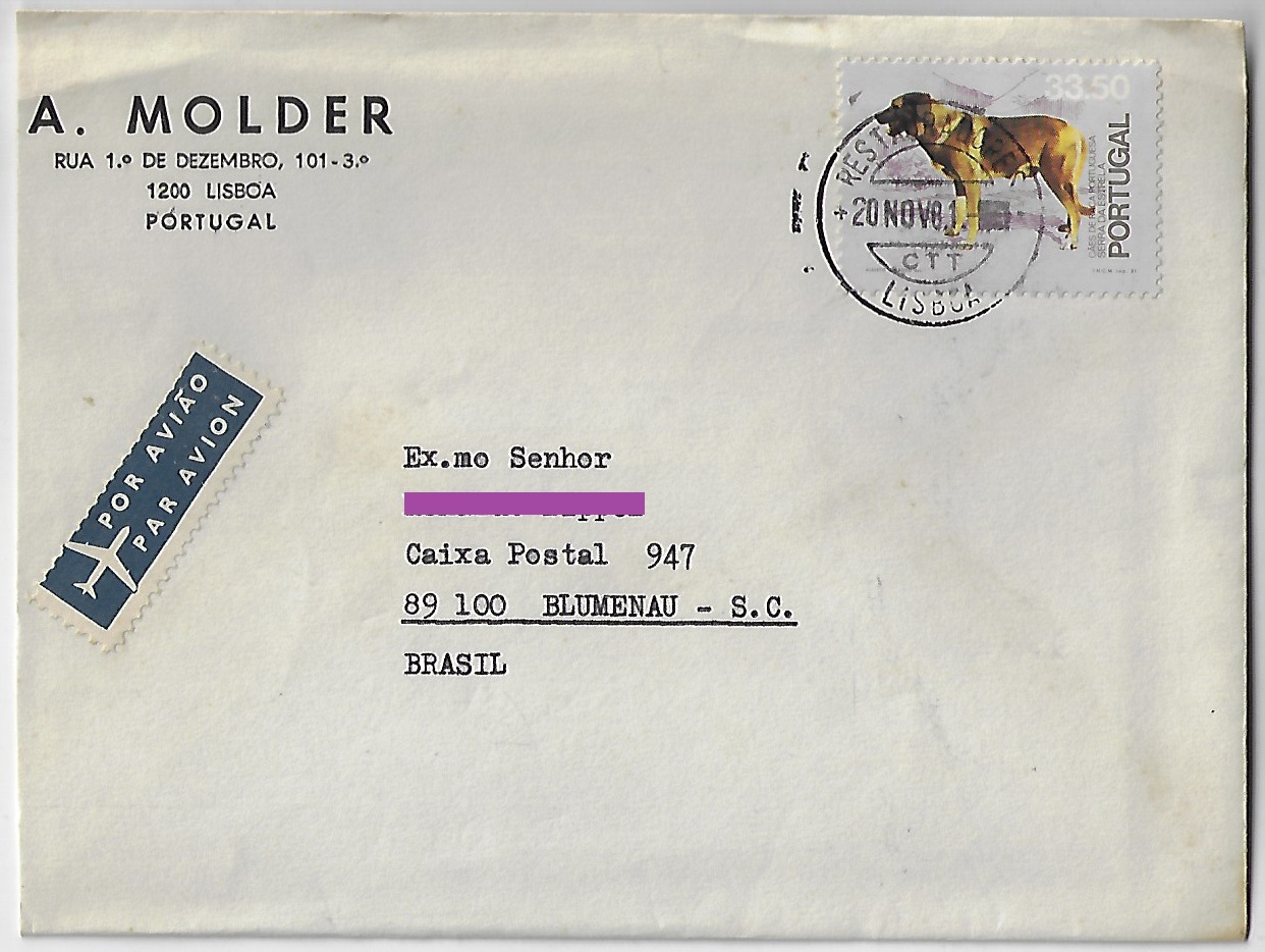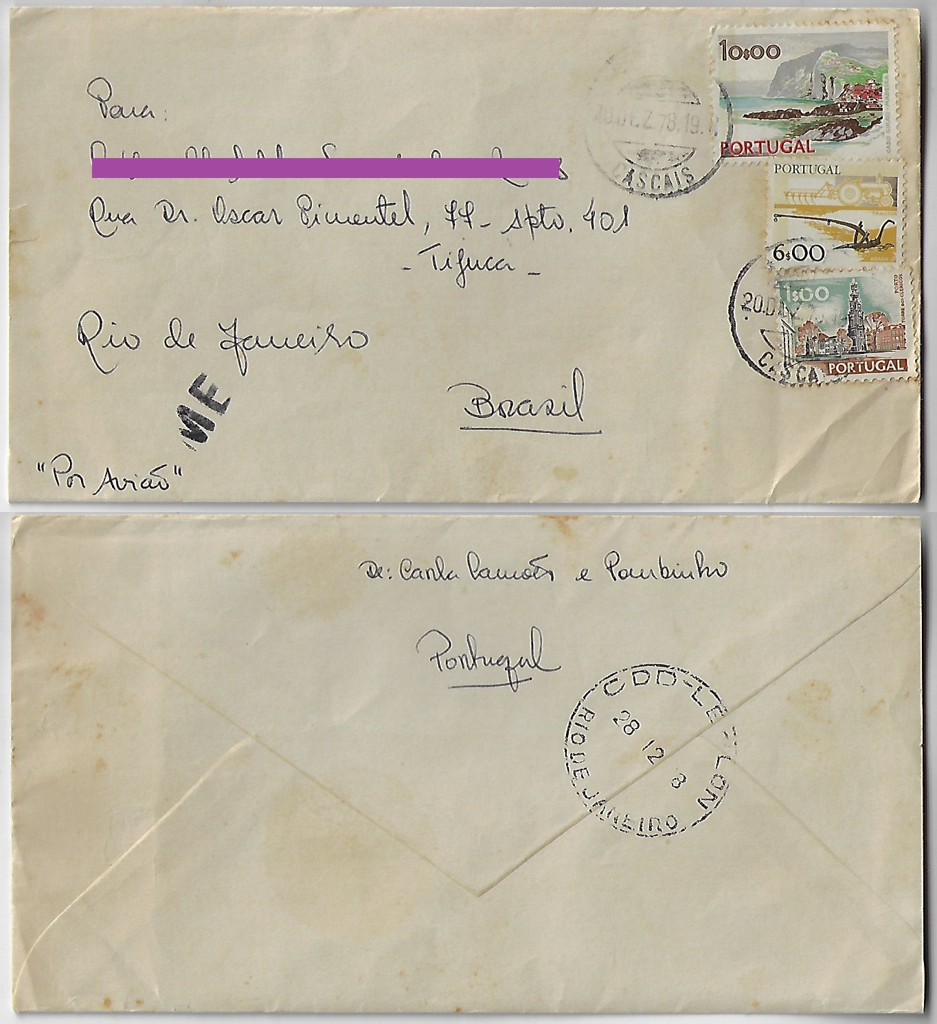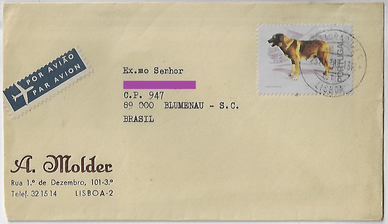 | 75084 | Antilhas Holandesas, 1970, envelope aéreo registrado de Willemstad / Curaçao (6/11), por Lisboa (7/11), para Albergaria a Velha (9/11) | 20,00 | Foto |