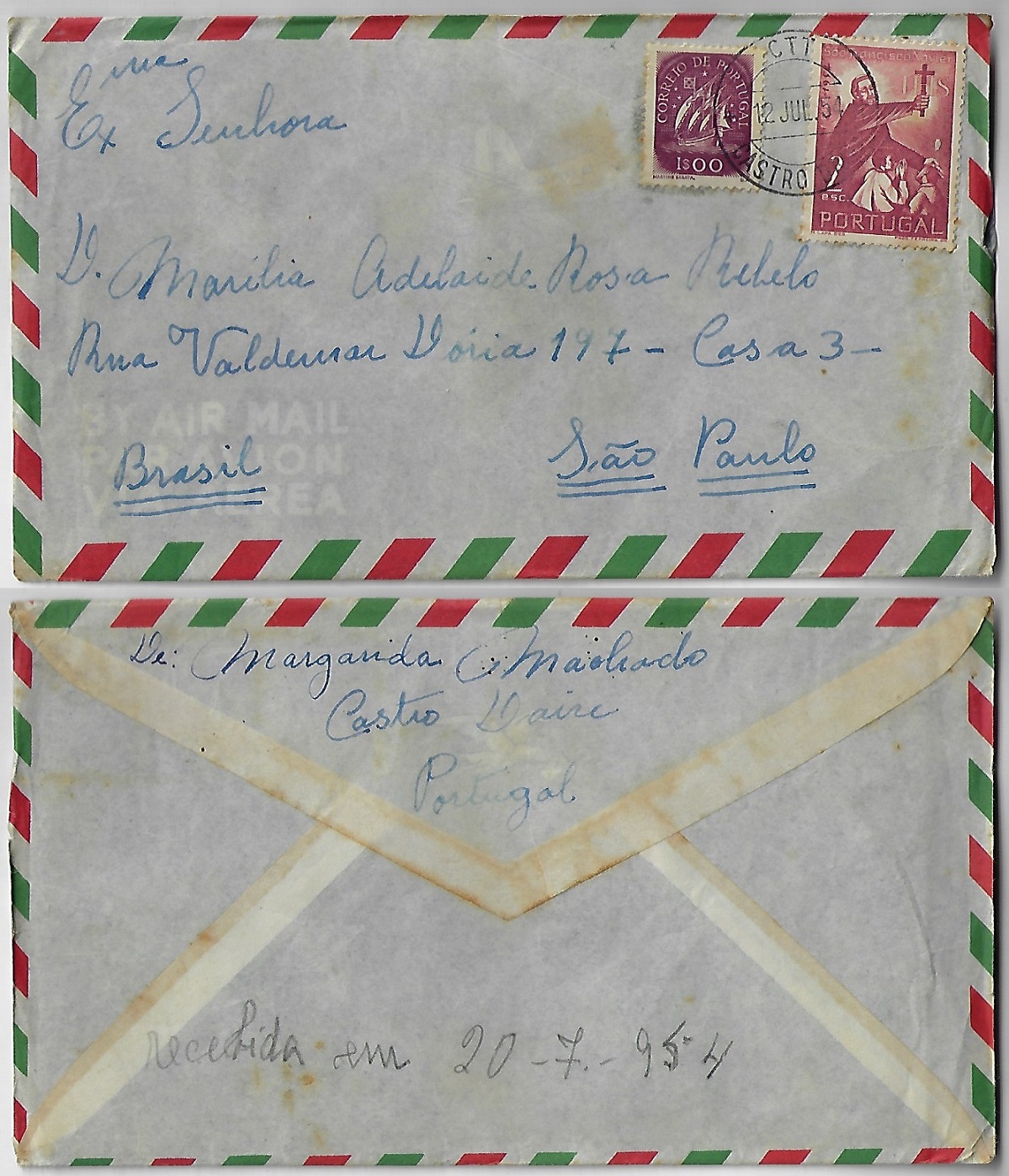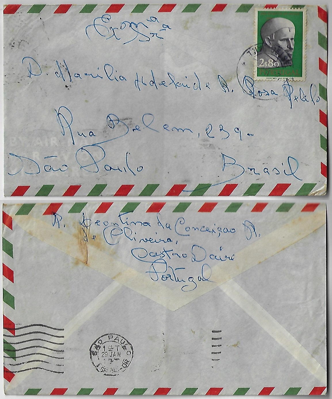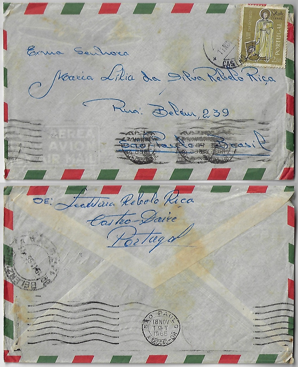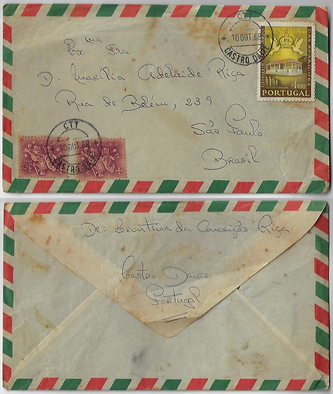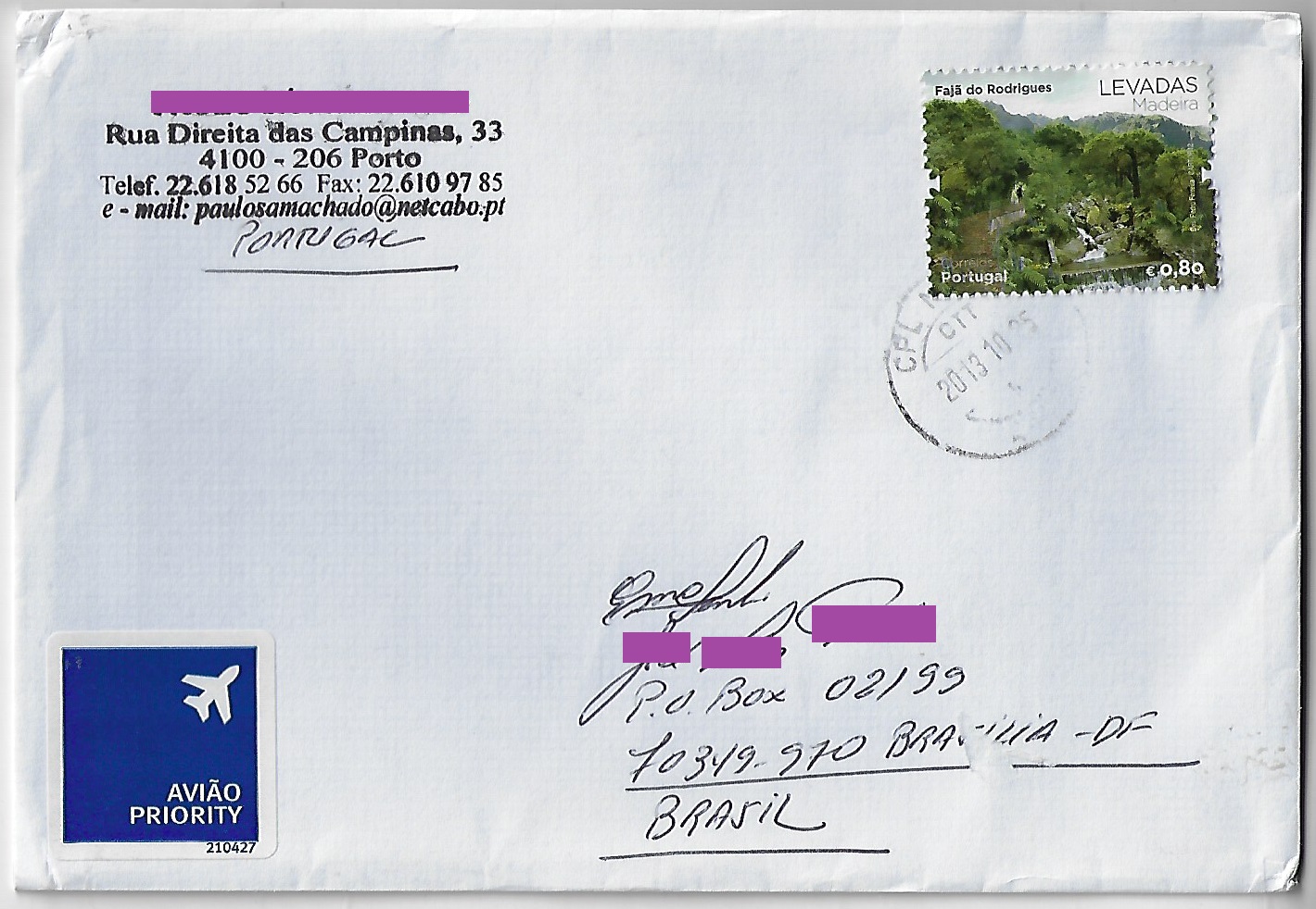 | 75084 | Antilhas Holandesas, 1970, envelope aéreo registrado de Willemstad / Curaçao (6/11), por Lisboa (7/11), para Albergaria a Velha (9/11) | 20,00 | Foto |
