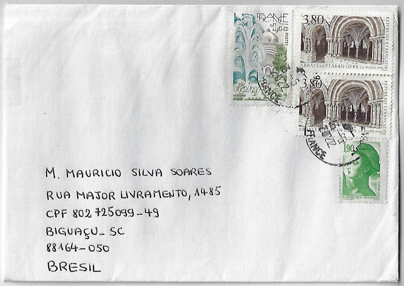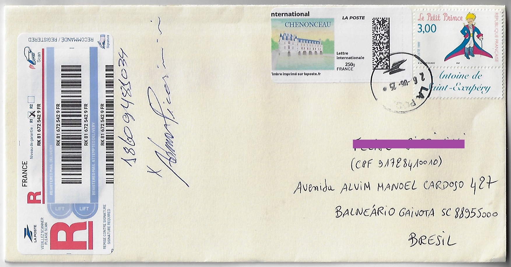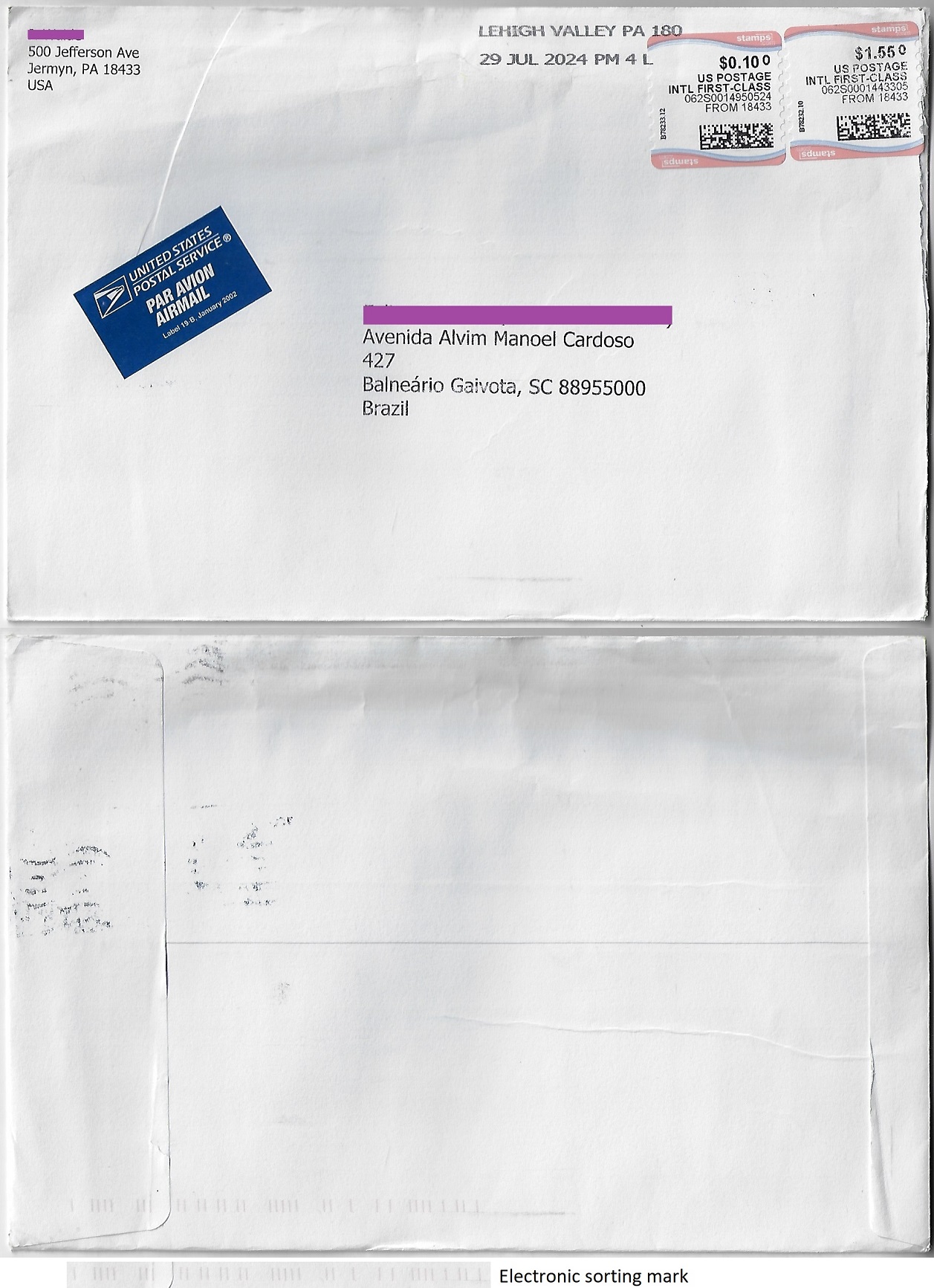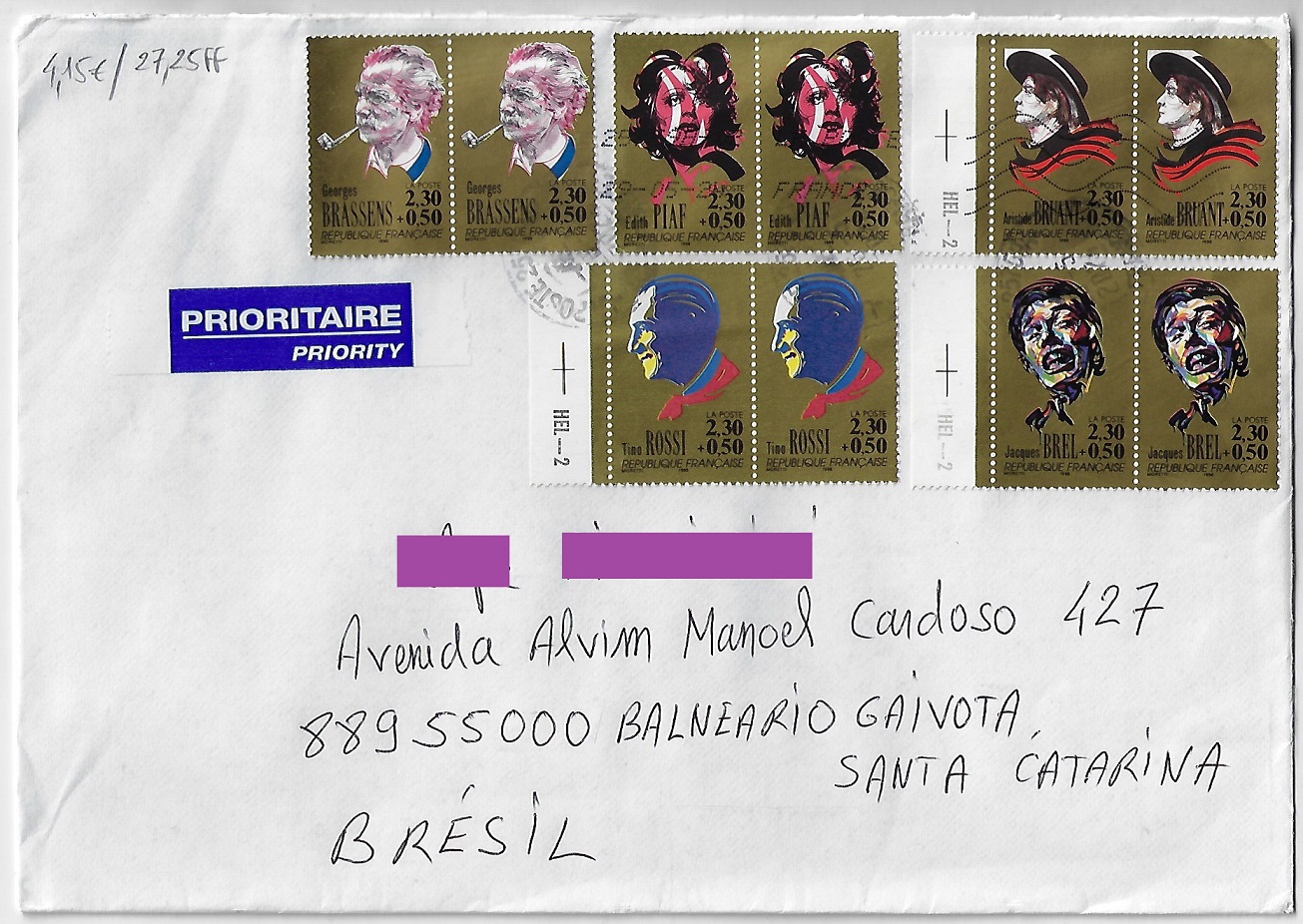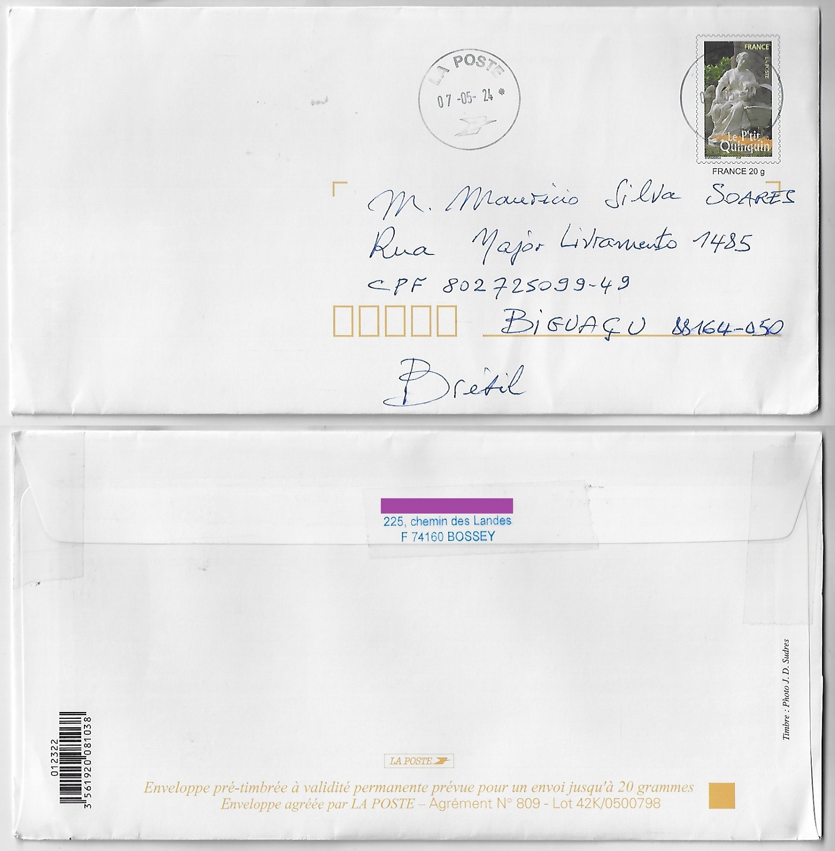 | 81260 | Andorra Espanhola, 2024, envelope enviado para Balneário Gaivota porteado com selo comemorativo Comunidade Judaica e selo espanhol pintura Vivianne III de Manolo Valdés | 10,00 | Foto |
