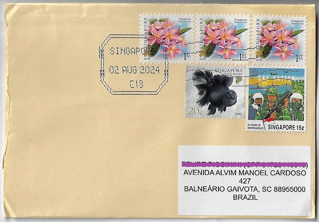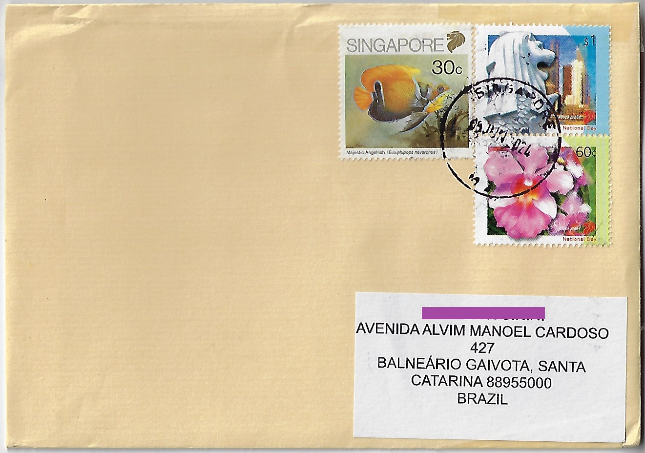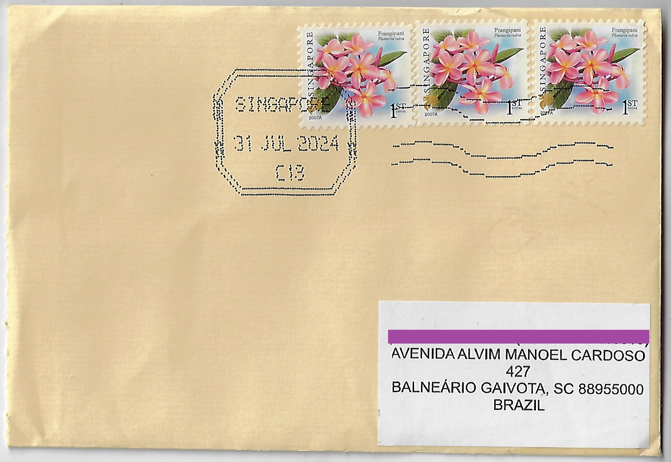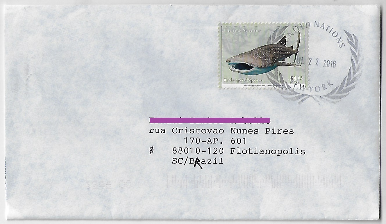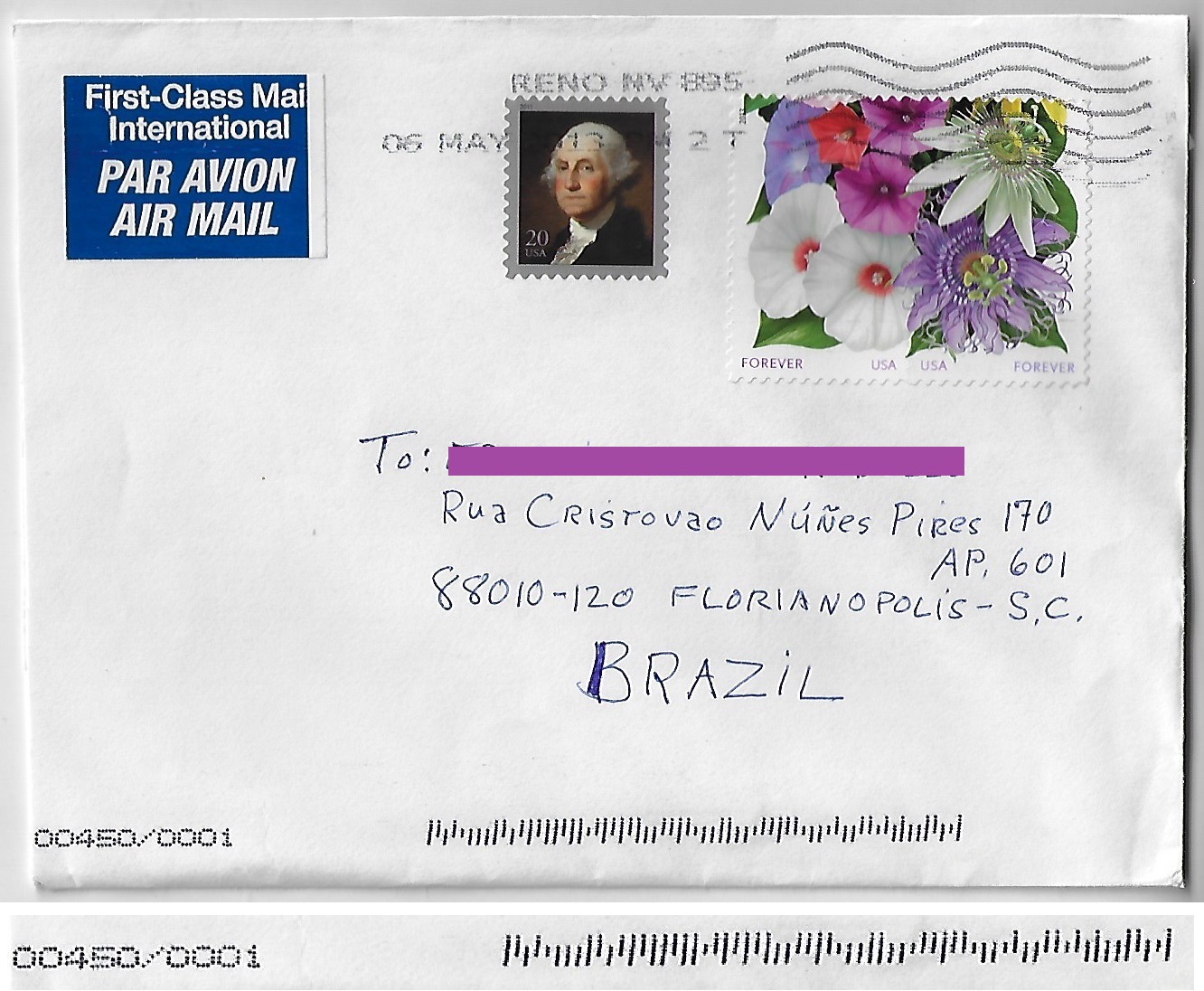 | 50831 | Uruguai, 2009, envelope prioritário de Montevidéu (4/9) para Florianópolis, selo Esporte, Natação, marcas de triagem eletrônica | 10,00 | Foto |