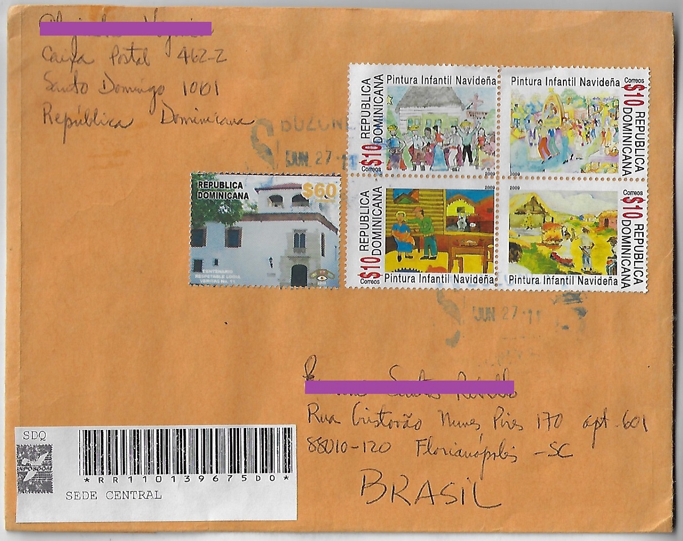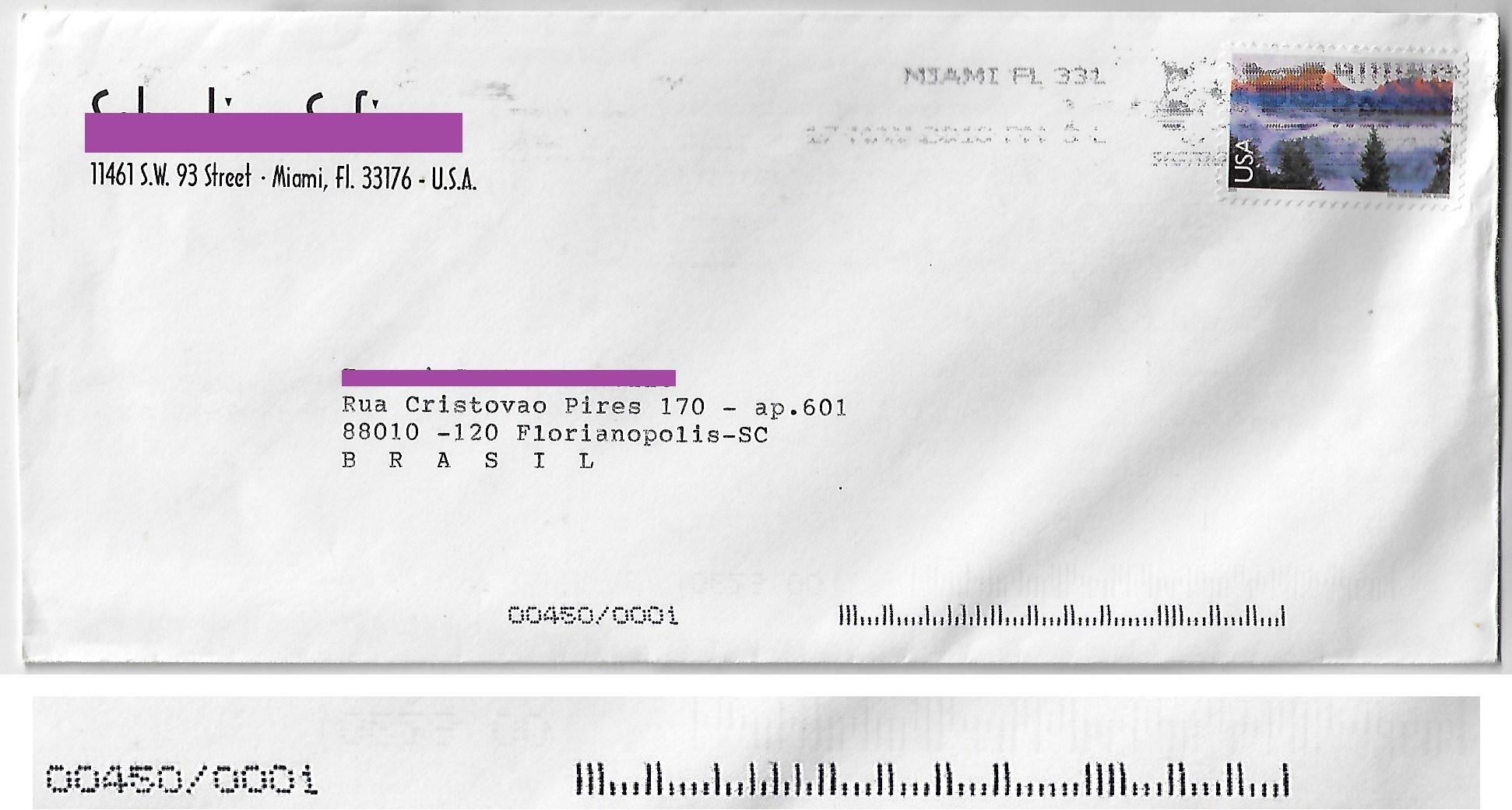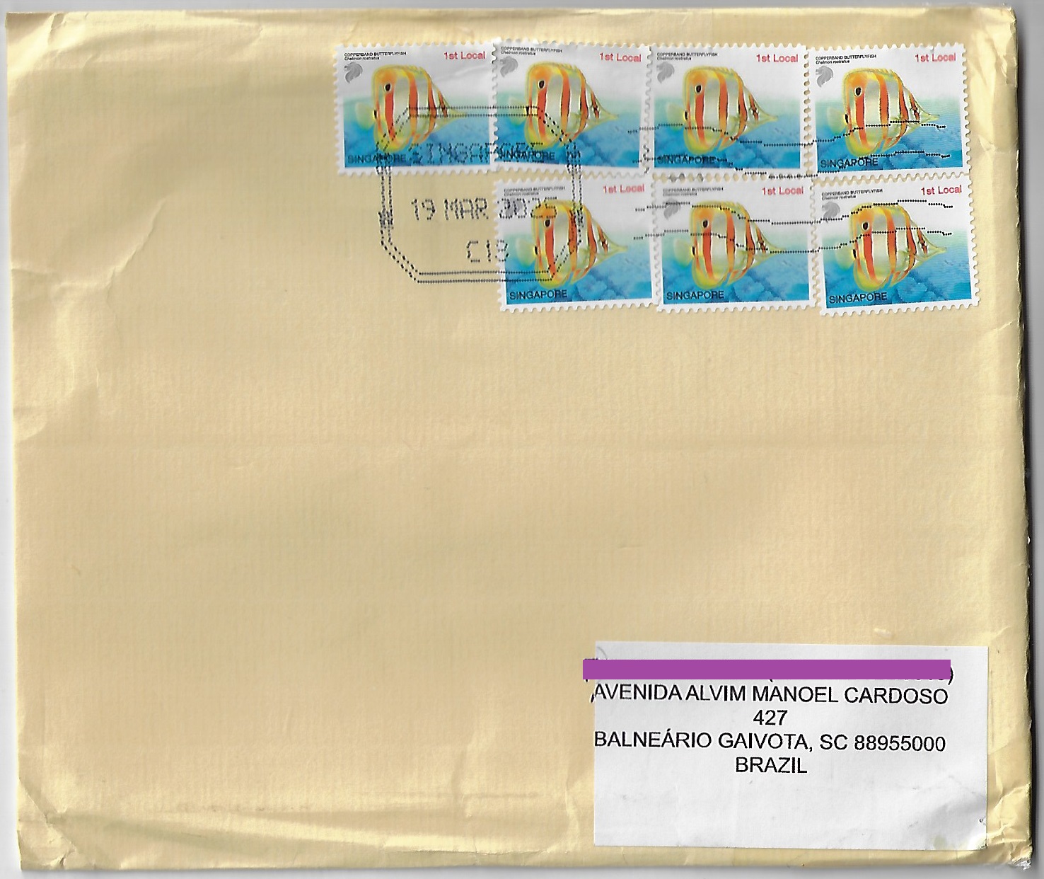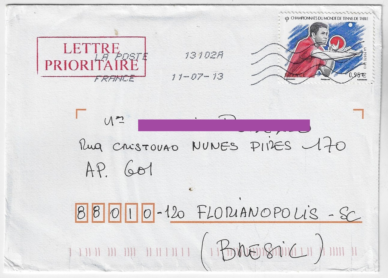 | 50831 | Uruguai, 2009, envelope prioritário de Montevidéu (4/9) para Florianópolis, selo Esporte, Natação, marcas de triagem eletrônica | 10,00 | Foto |
