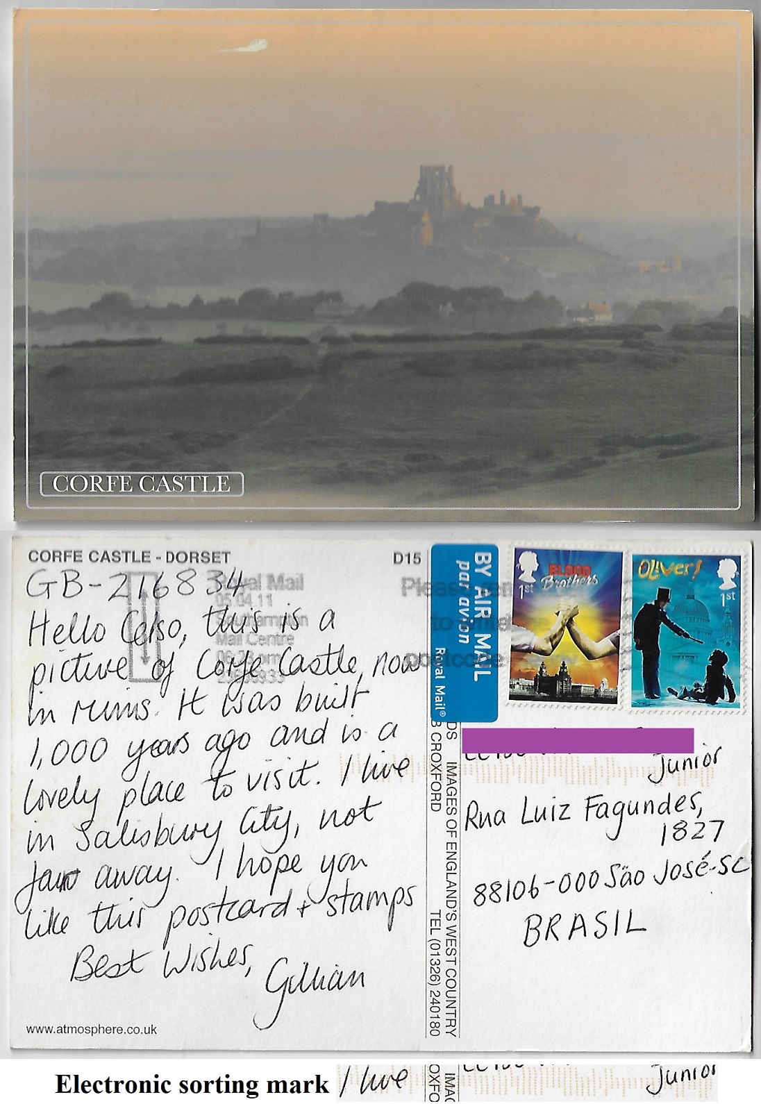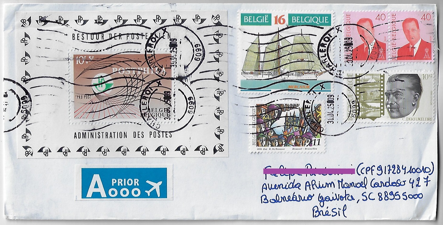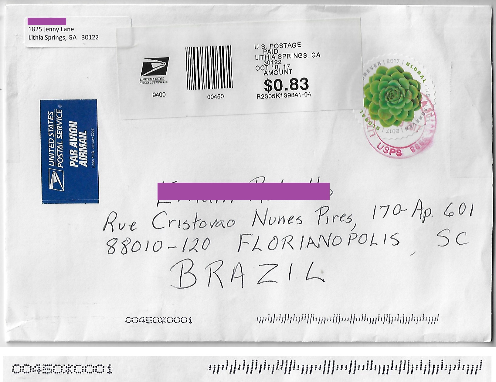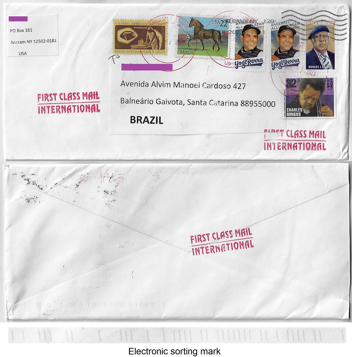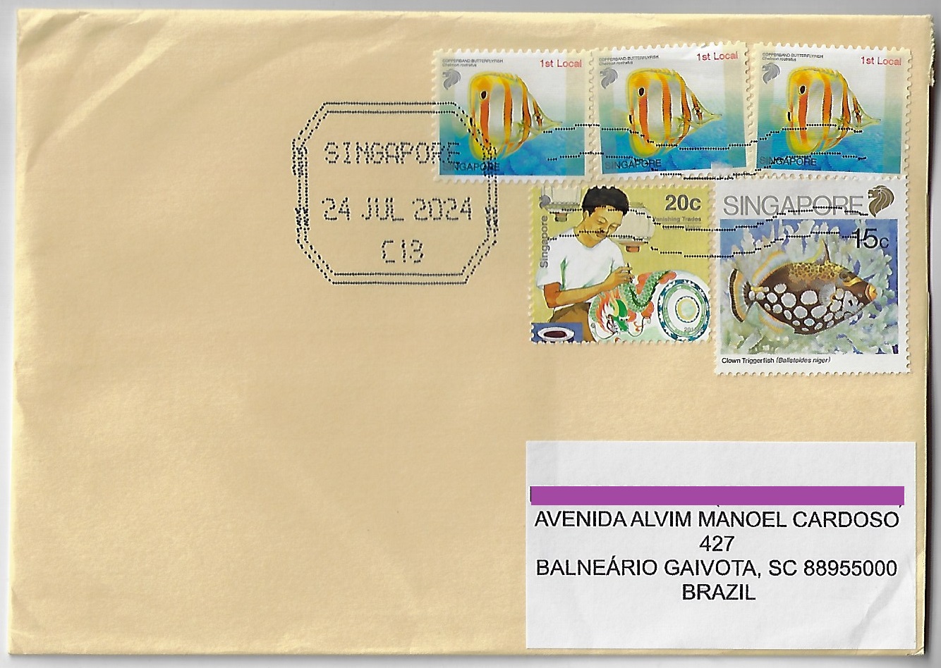 | 50831 | Uruguai, 2009, envelope prioritário de Montevidéu (4/9) para Florianópolis, selo Esporte, Natação, marcas de triagem eletrônica | 10,00 | Foto |