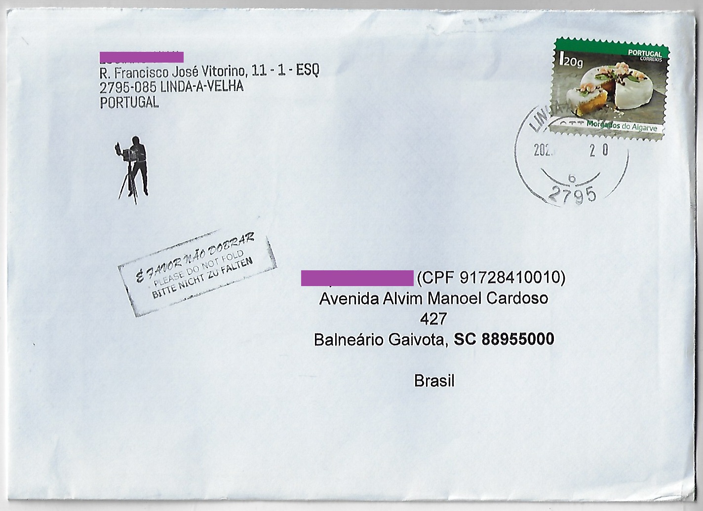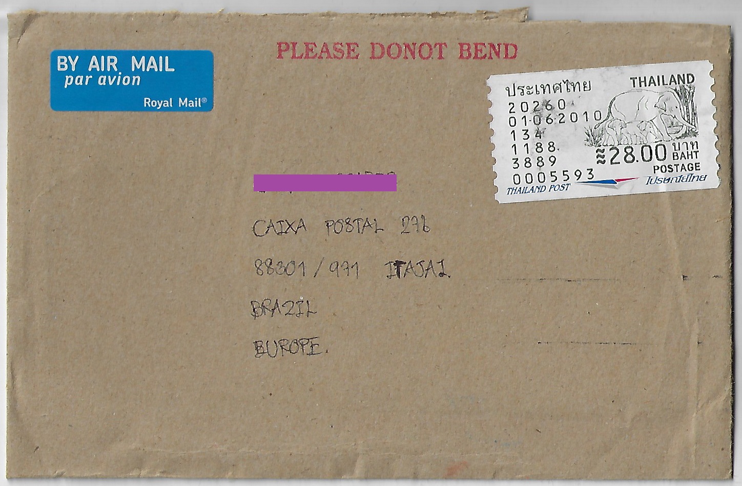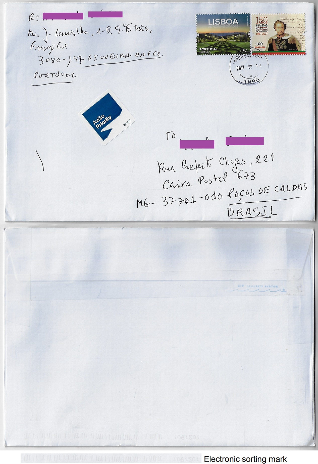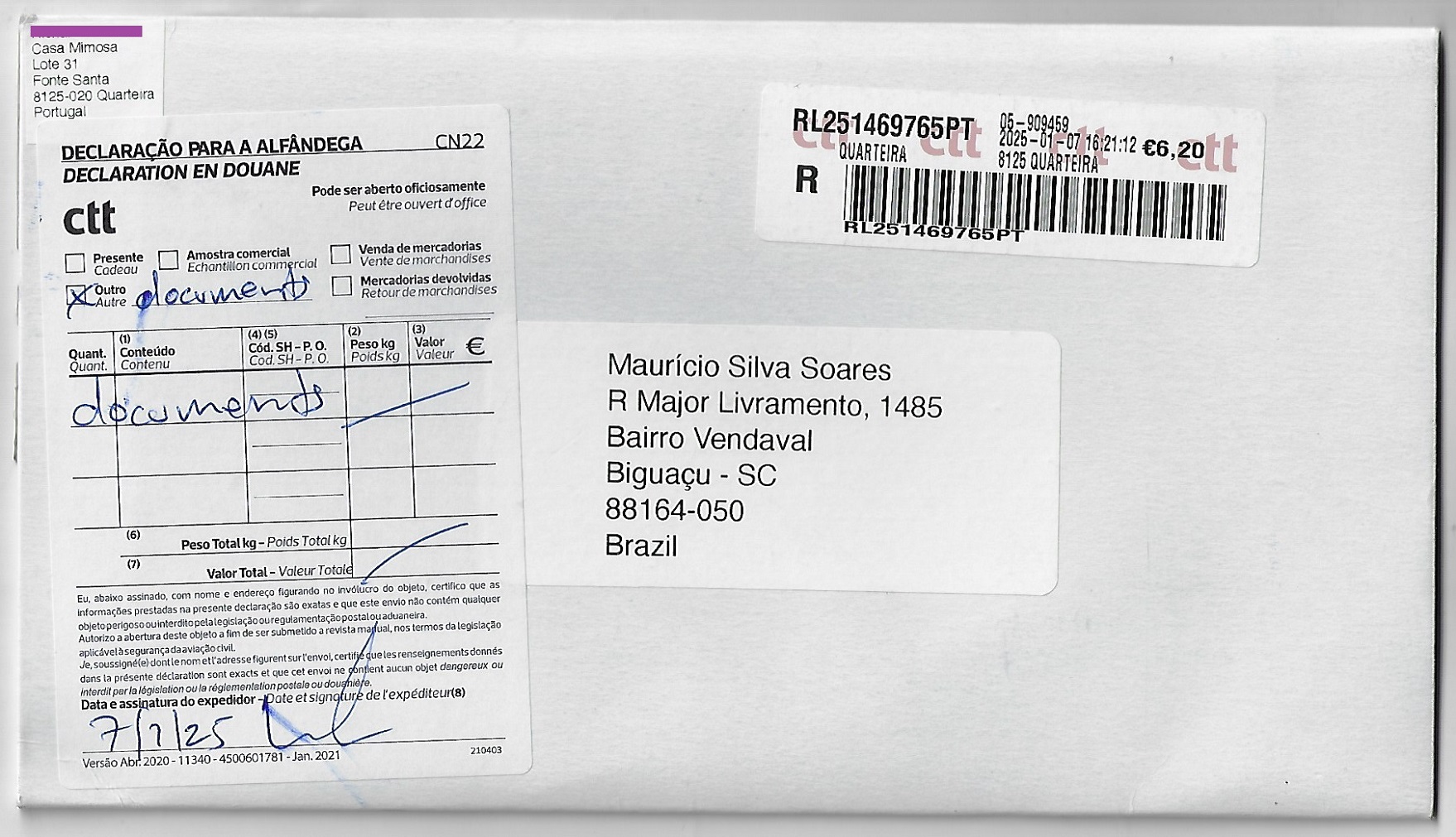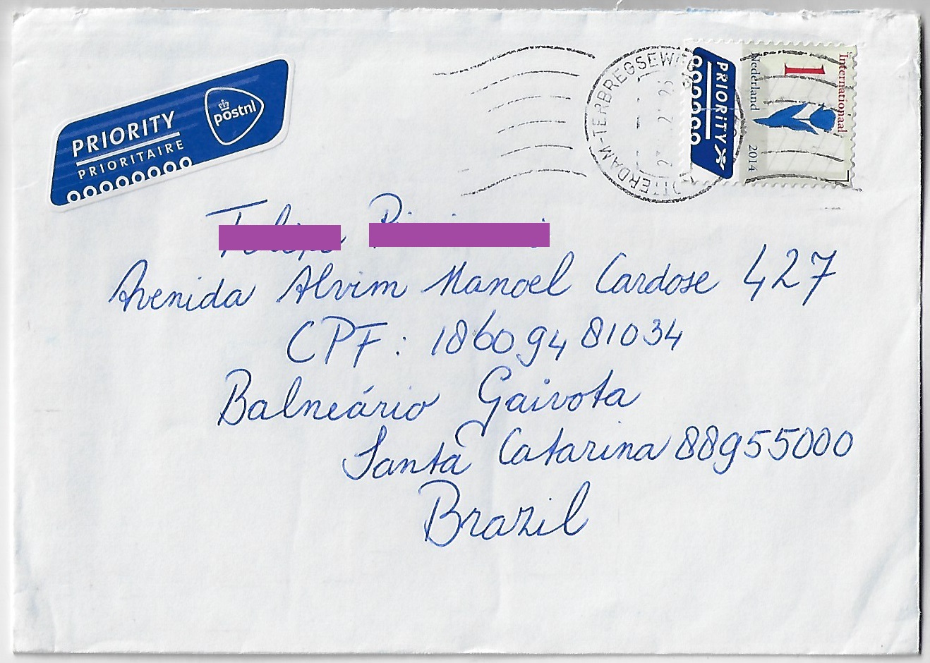 | 84865 | África do Sul, 2022, envelope prioritário registrado enviado de Vredenburg (21/12) para Biguaçu, porteado com franquia mecânica Web RePost (aka "PAT Label") | 10,00 | Foto |
