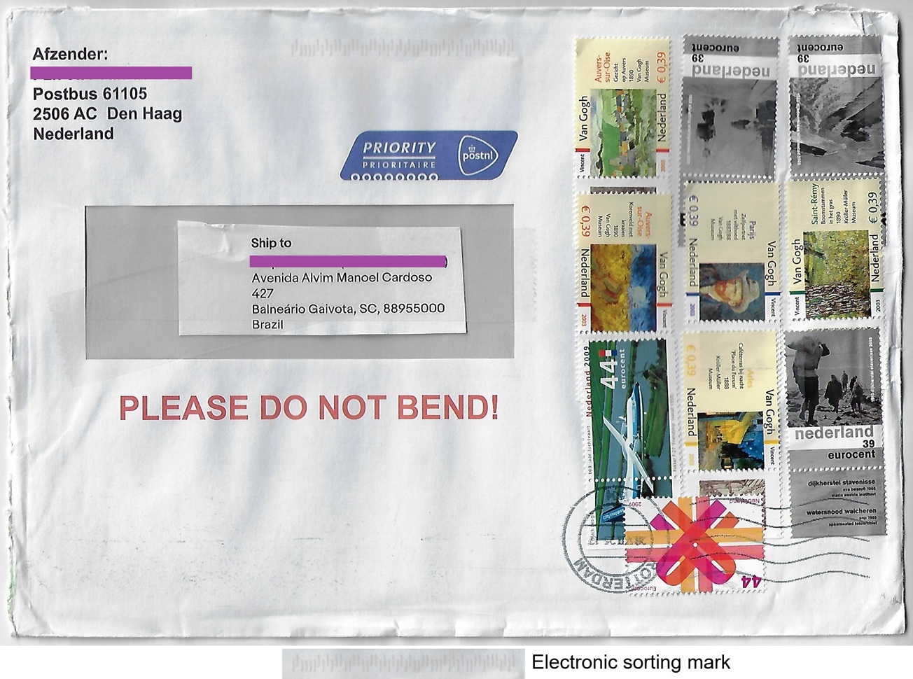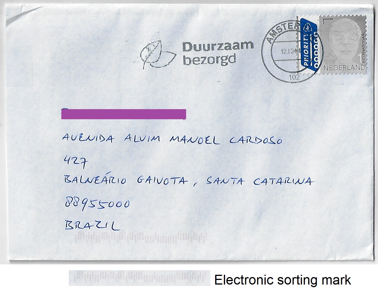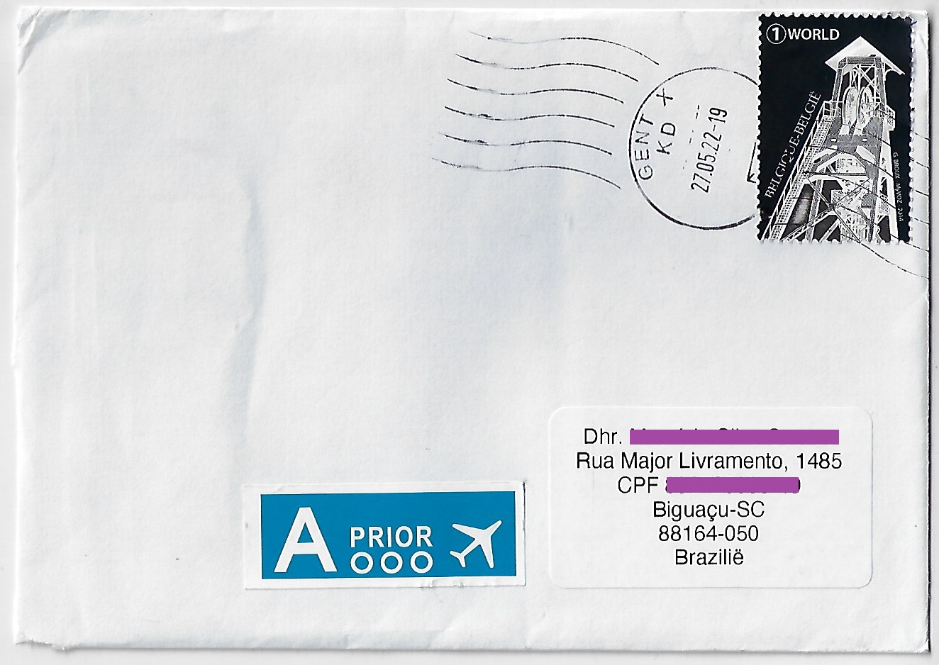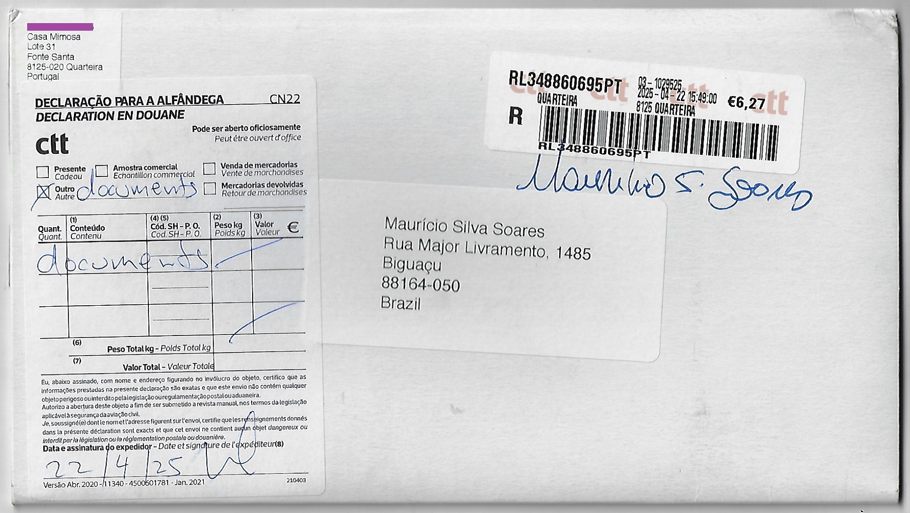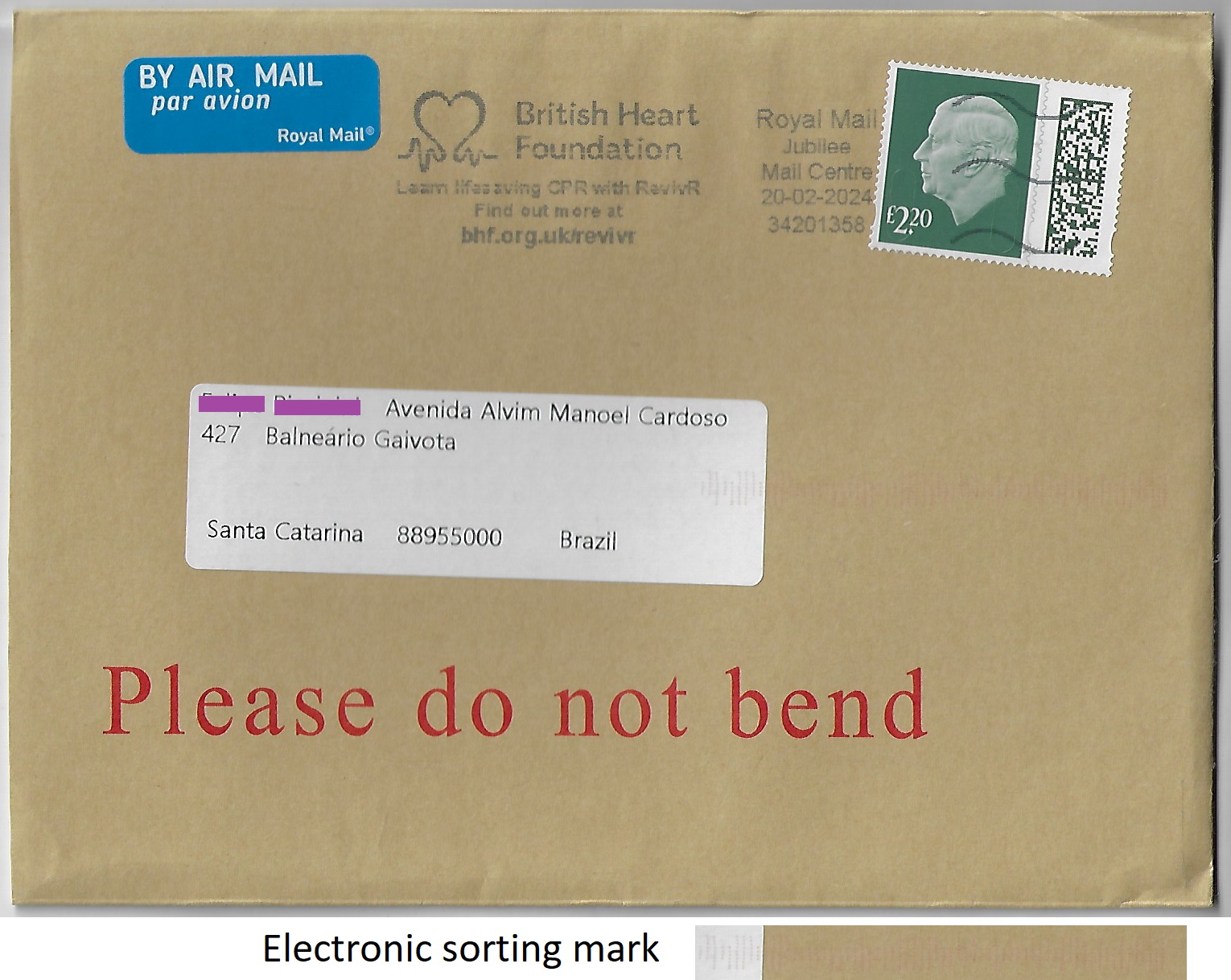 | 84865 | África do Sul, 2022, envelope prioritário registrado enviado de Vredenburg (21/12) para Biguaçu, porteado com franquia mecânica Web RePost (aka "PAT Label") | 10,00 | Foto |