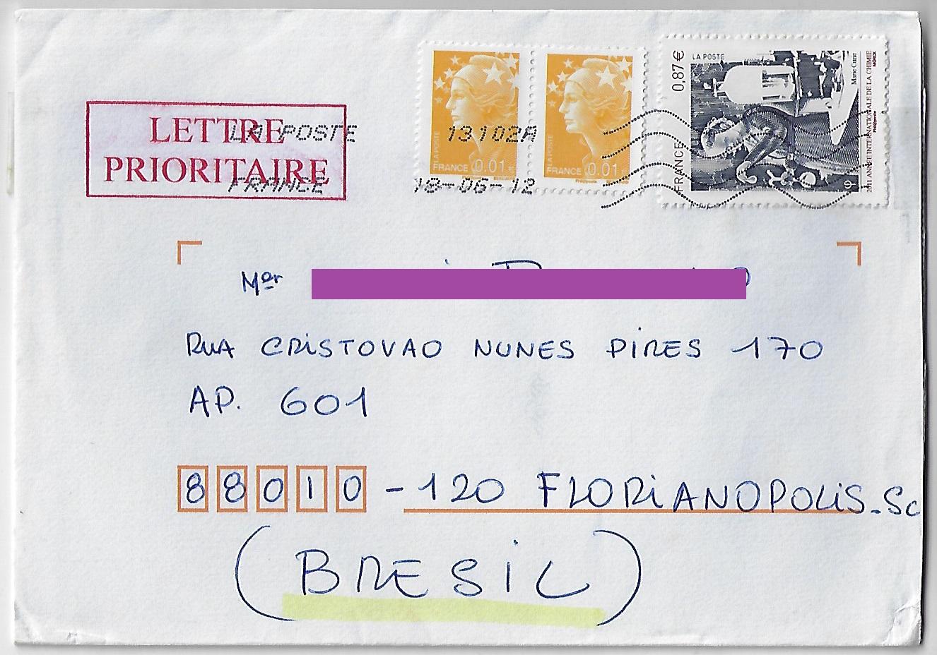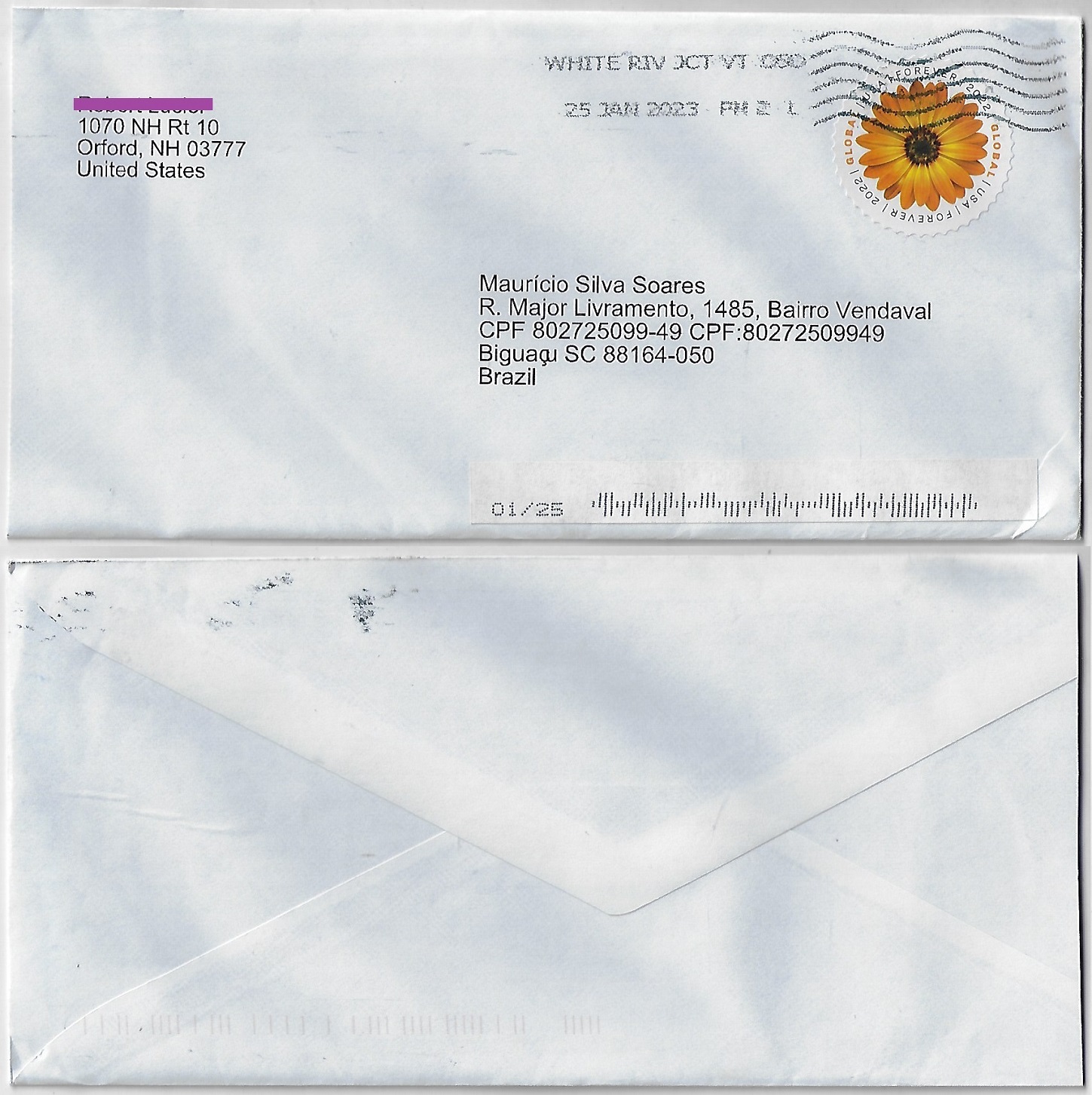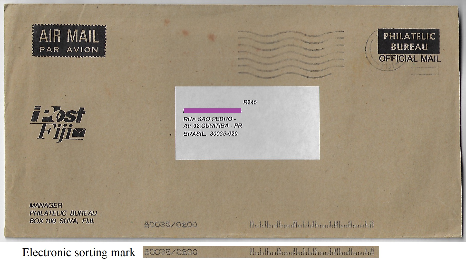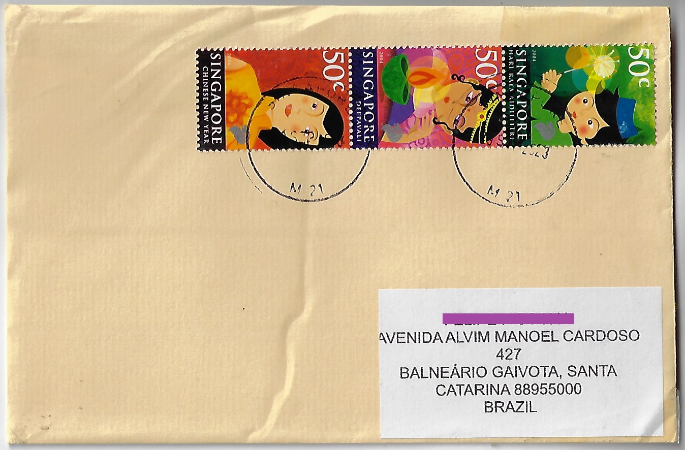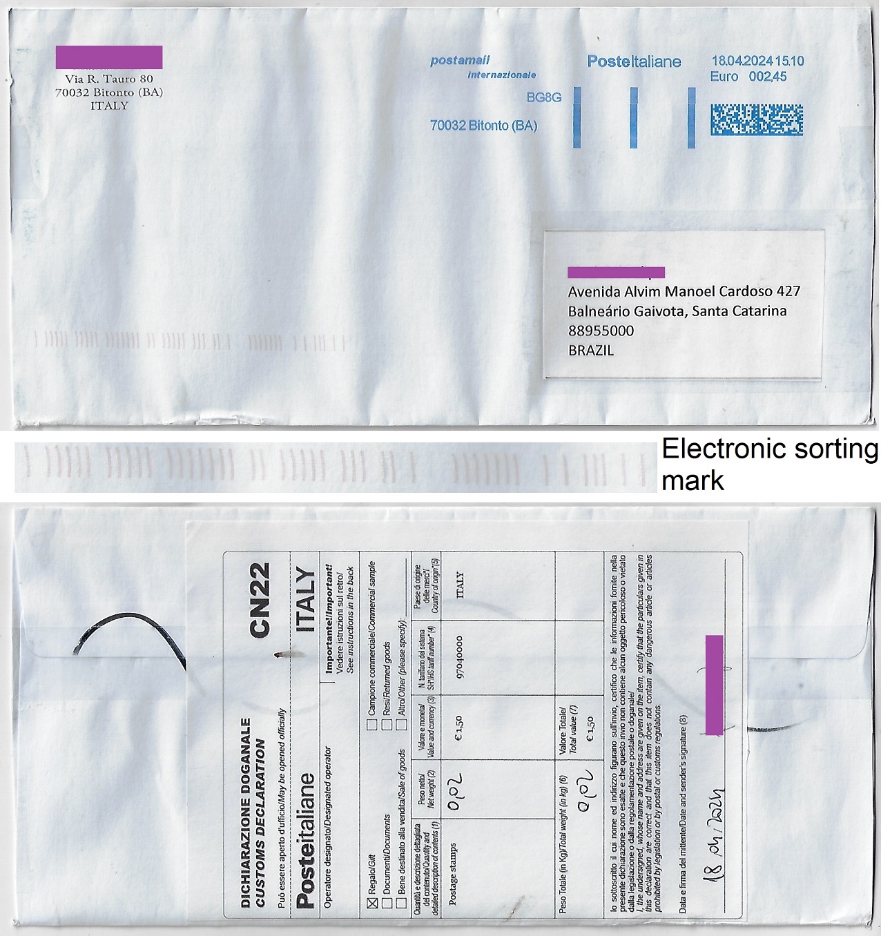 | 84865 | África do Sul, 2022, envelope prioritário registrado enviado de Vredenburg (21/12) para Biguaçu, porteado com franquia mecânica Web RePost (aka "PAT Label") | 10,00 | Foto |