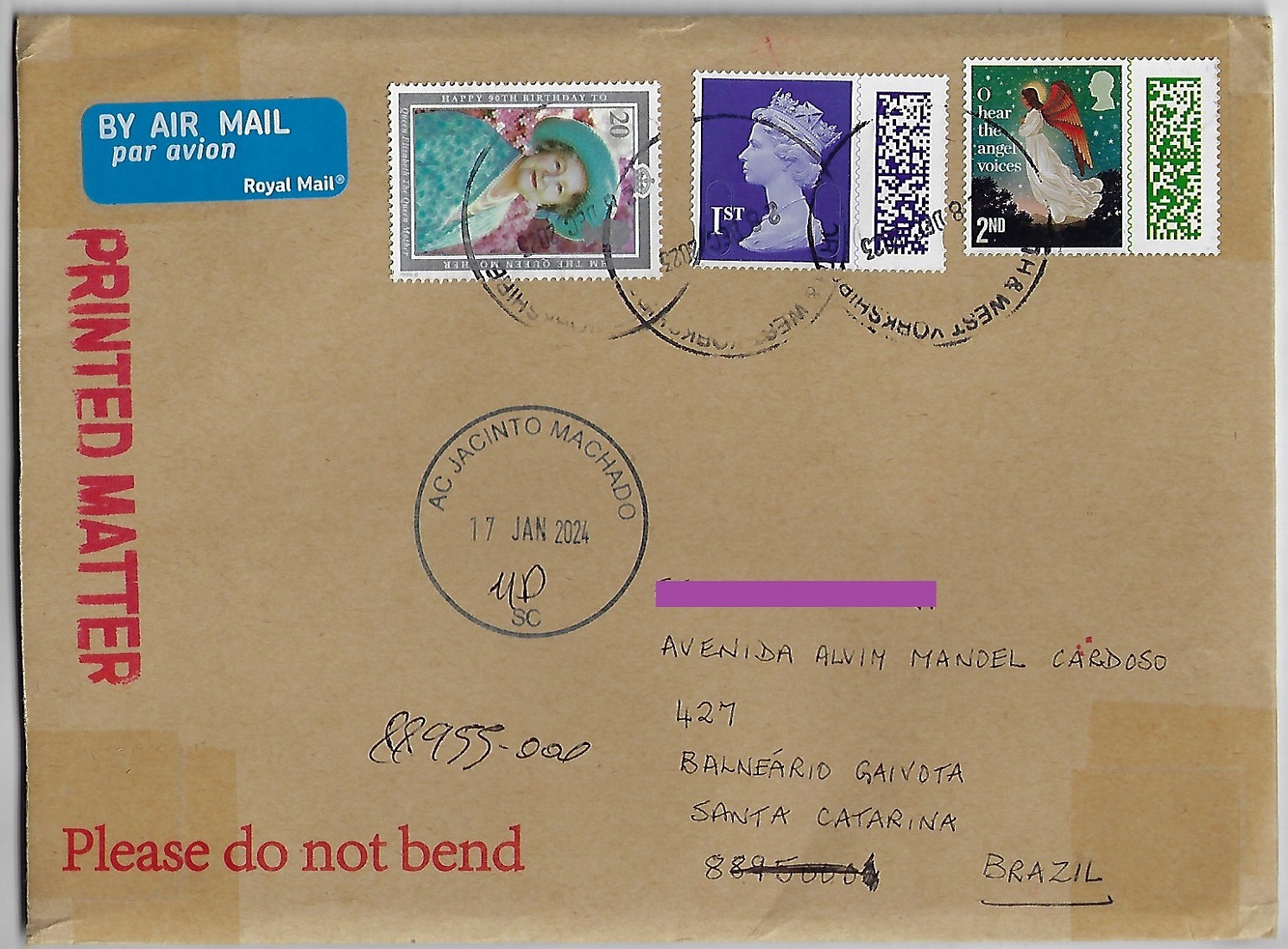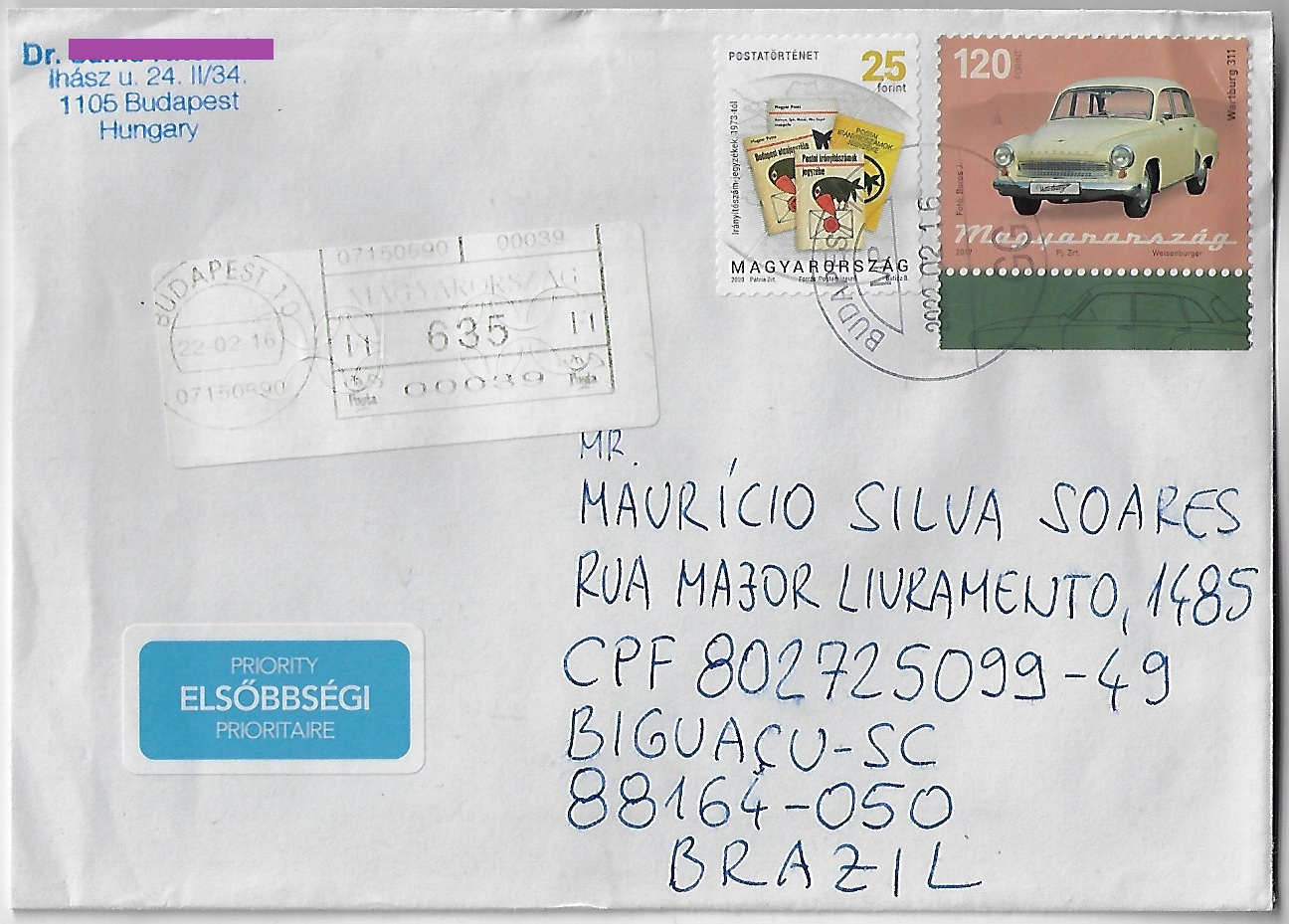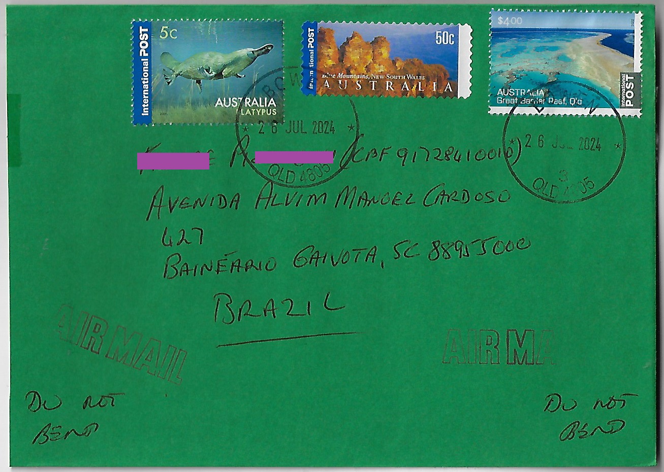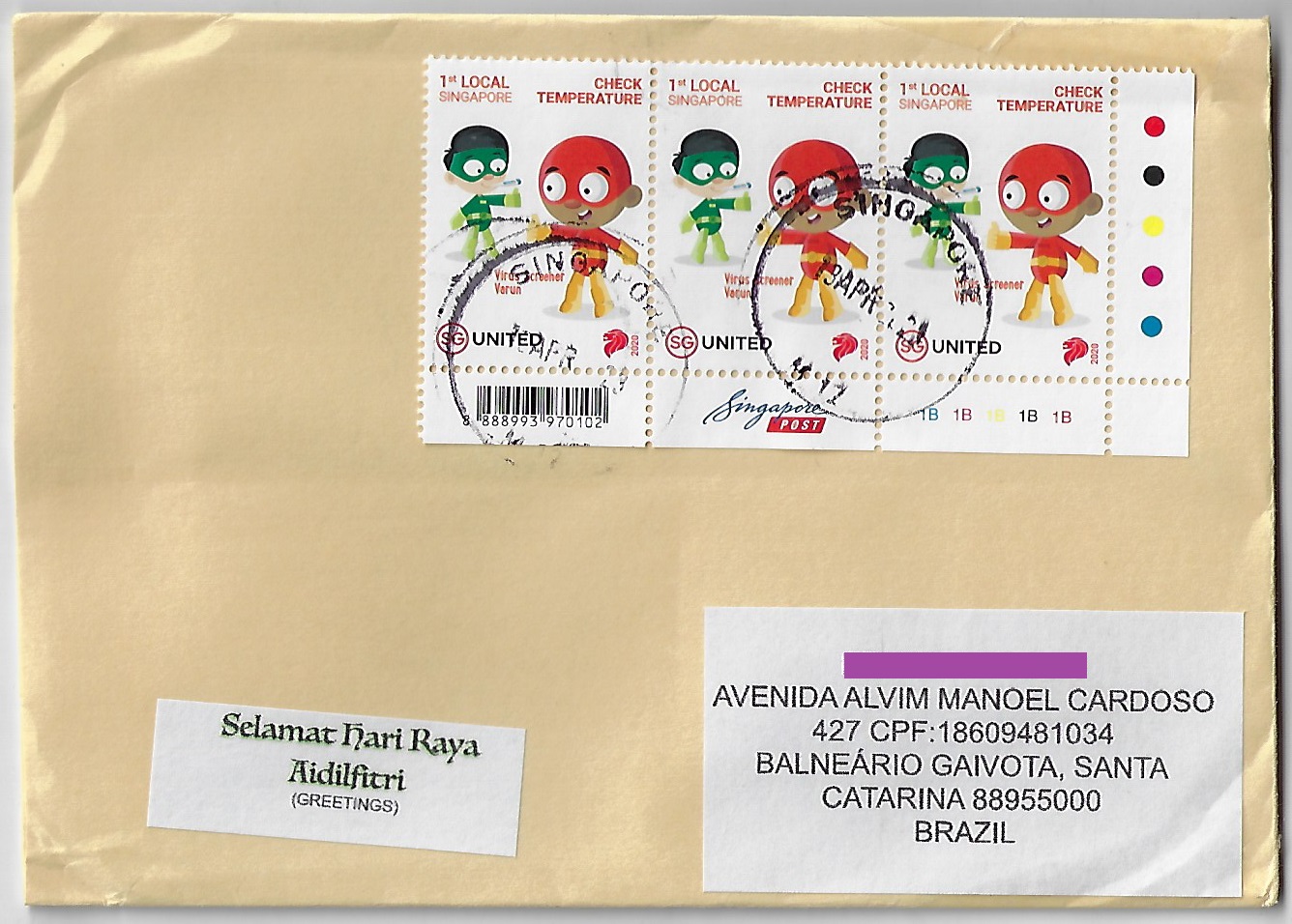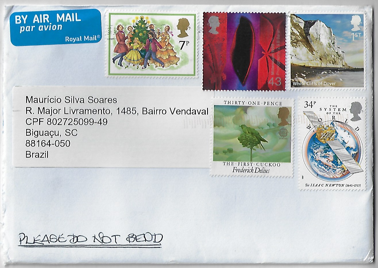 | 84865 | África do Sul, 2022, envelope prioritário registrado enviado de Vredenburg (21/12) para Biguaçu, porteado com franquia mecânica Web RePost (aka "PAT Label") | 10,00 | Foto |