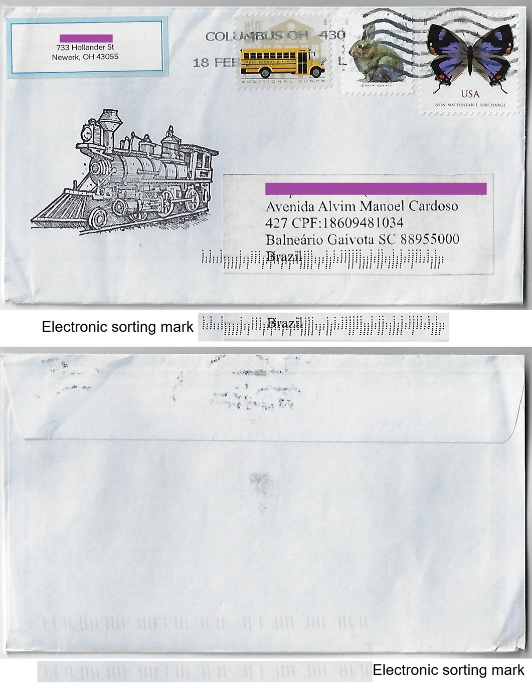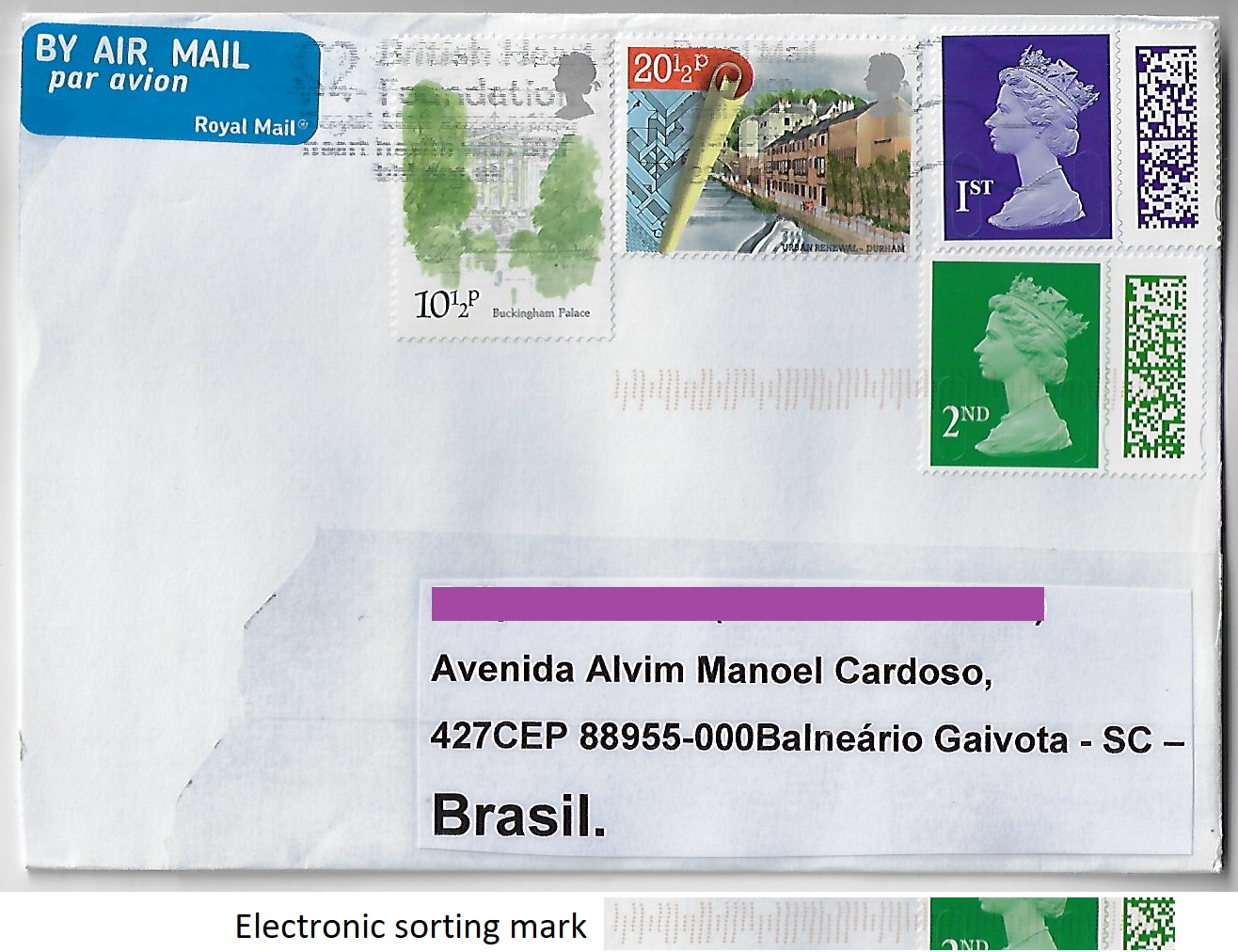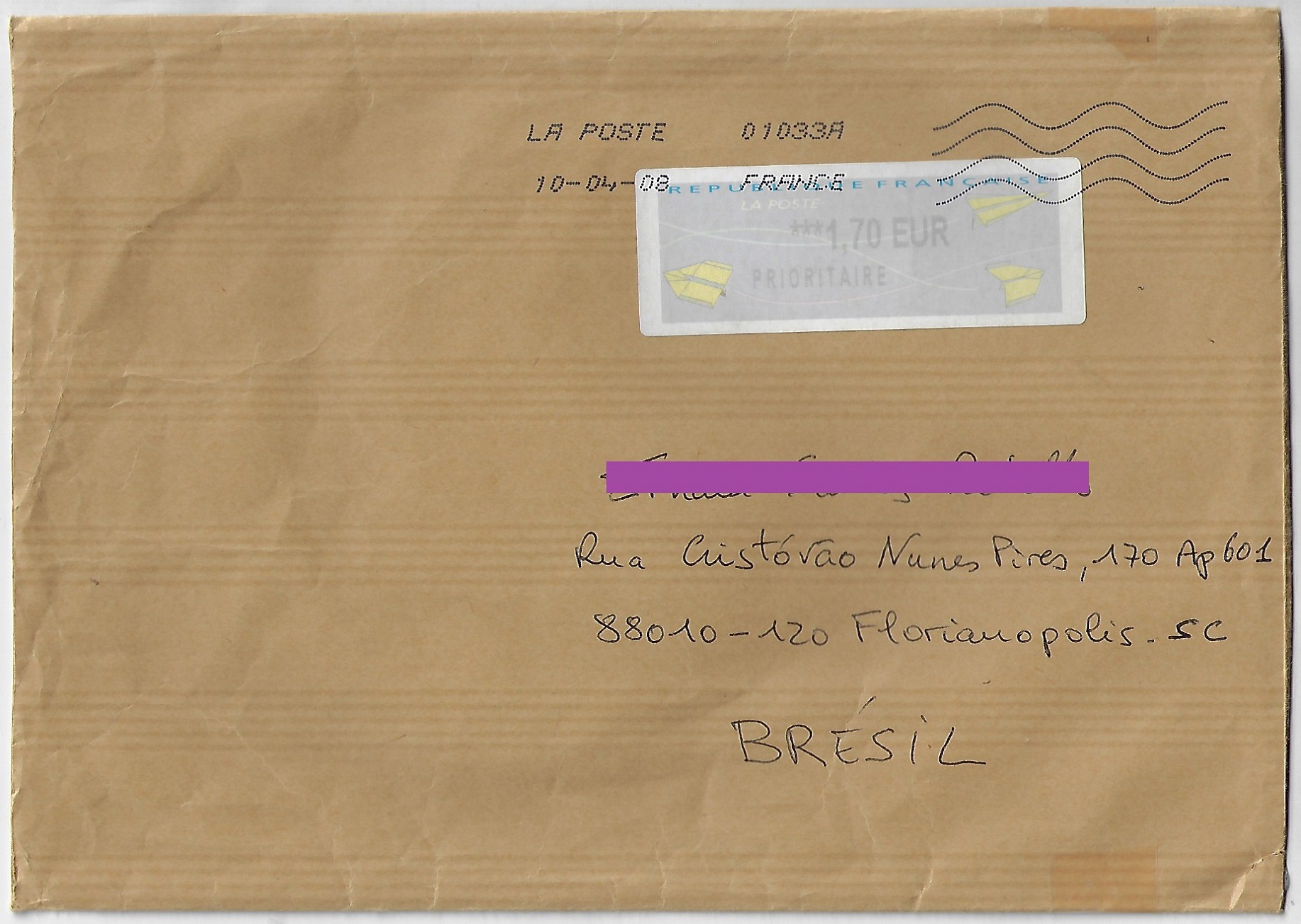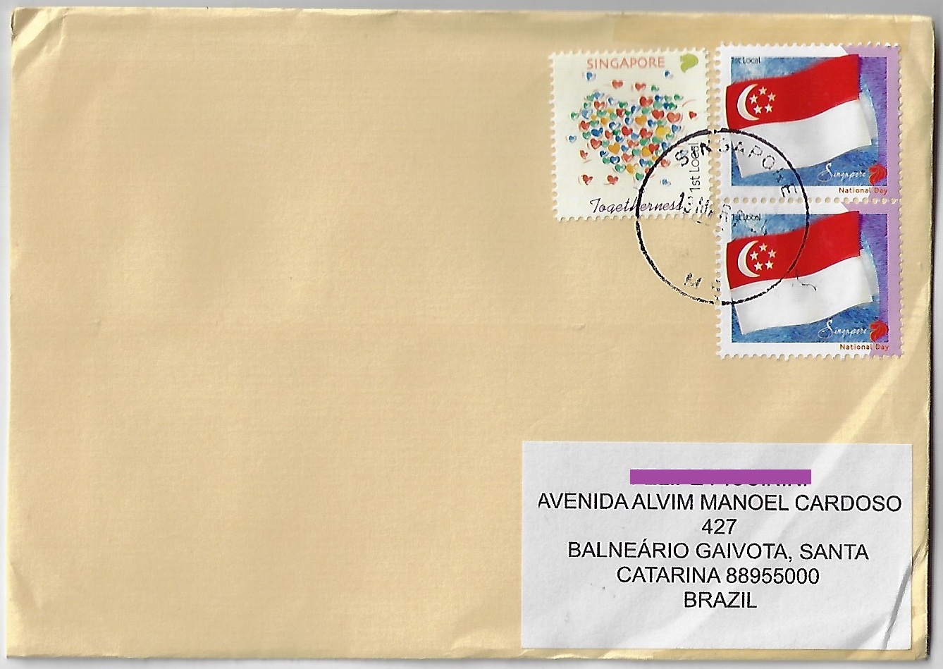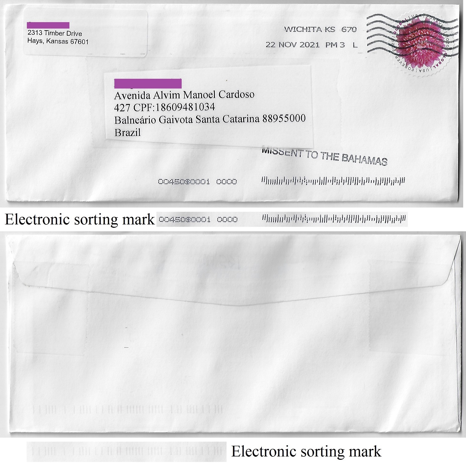 | 84865 | África do Sul, 2022, envelope prioritário registrado enviado de Vredenburg (21/12) para Biguaçu, porteado com franquia mecânica Web RePost (aka "PAT Label") | 10,00 | Foto |