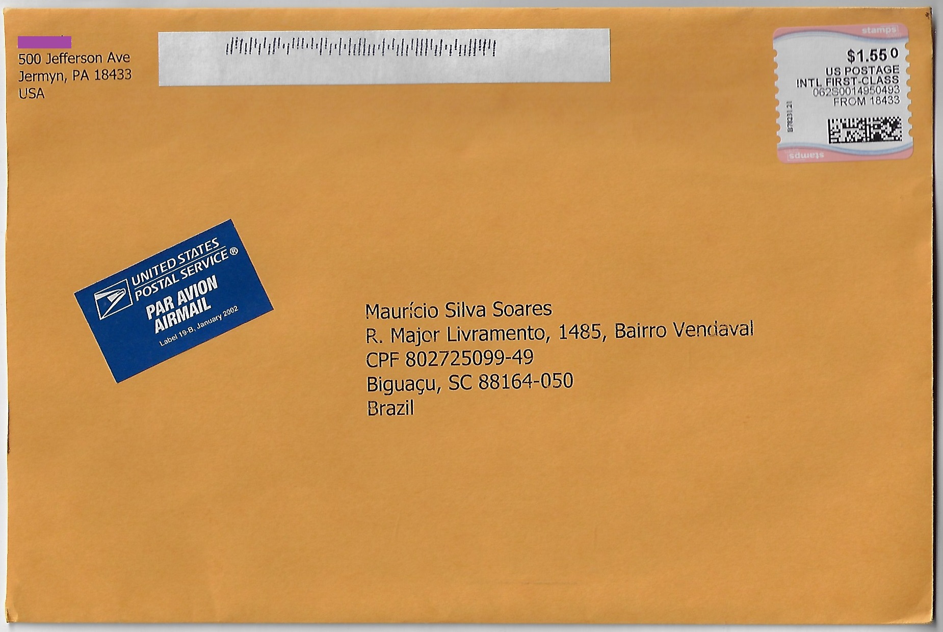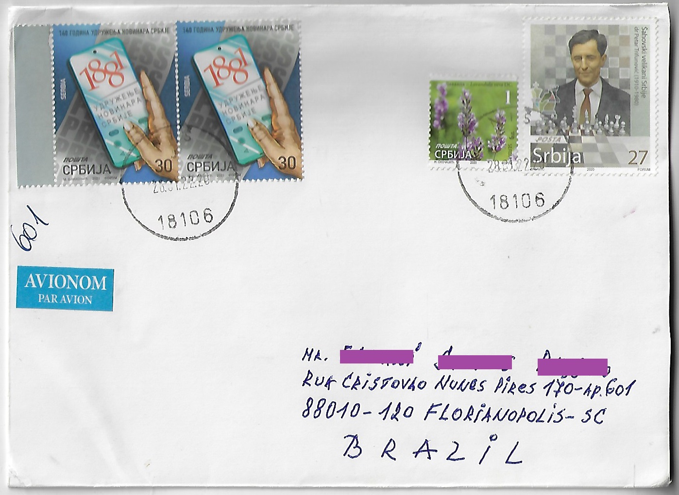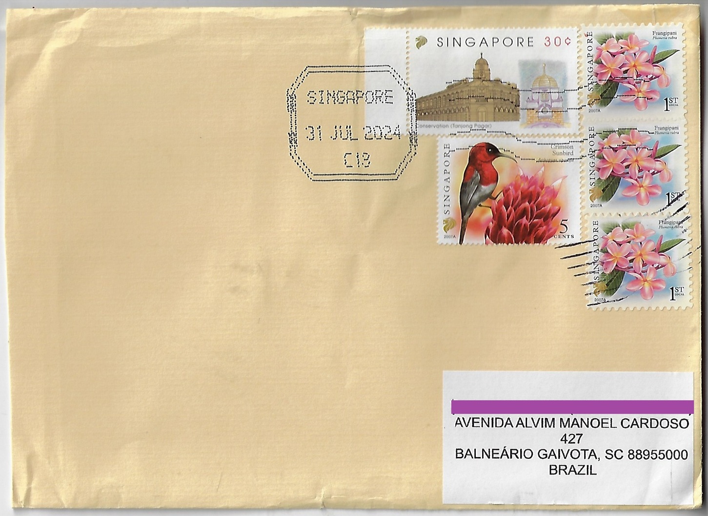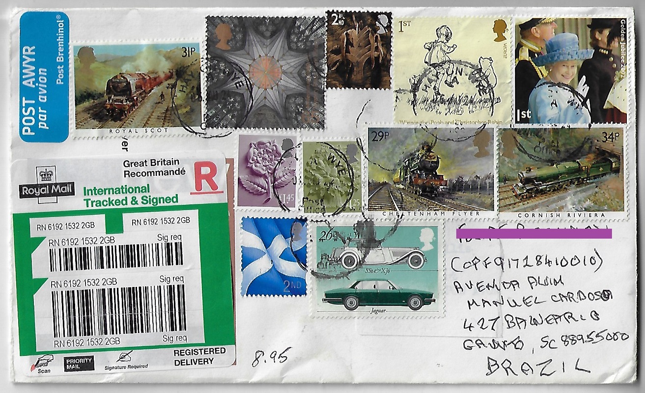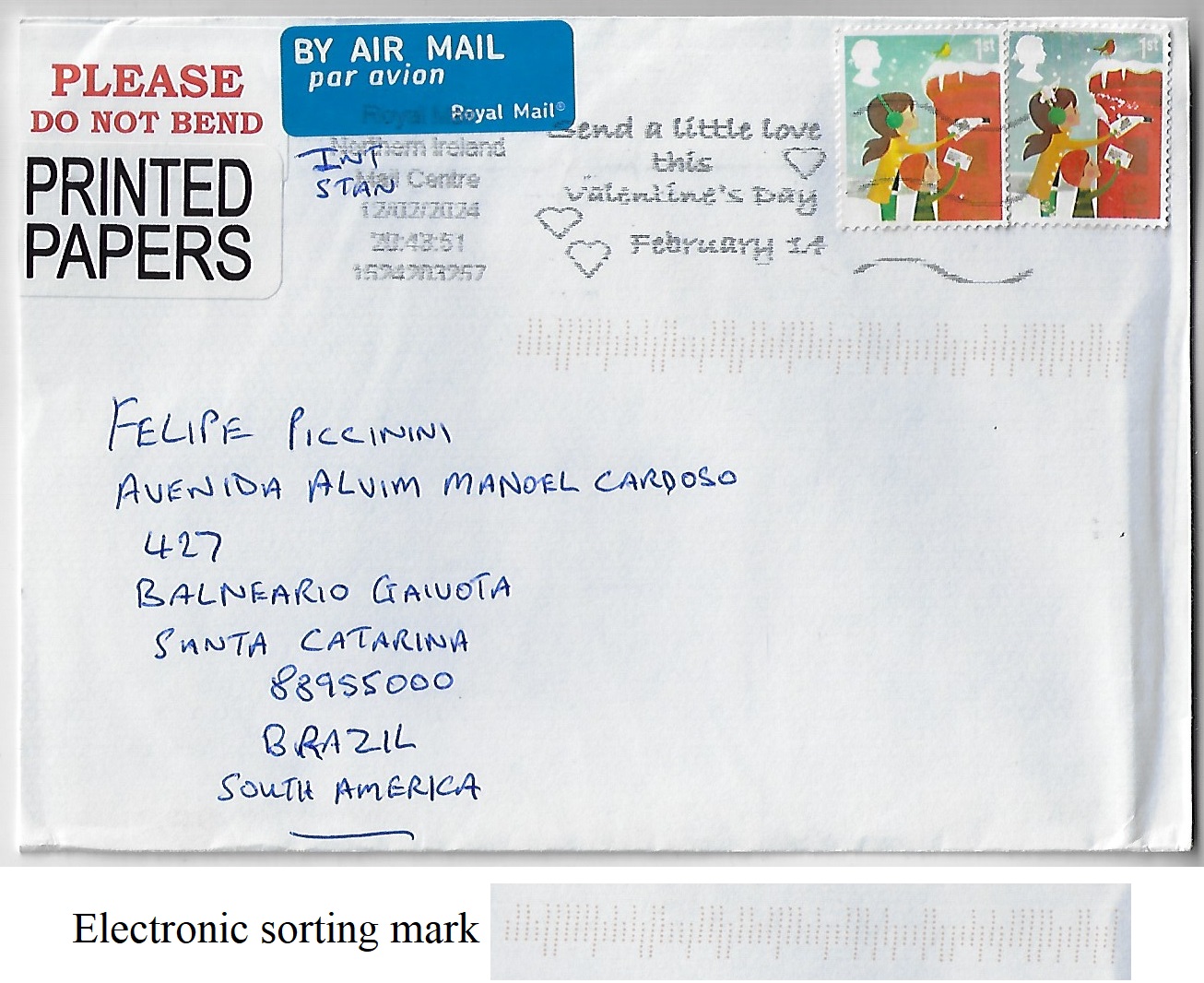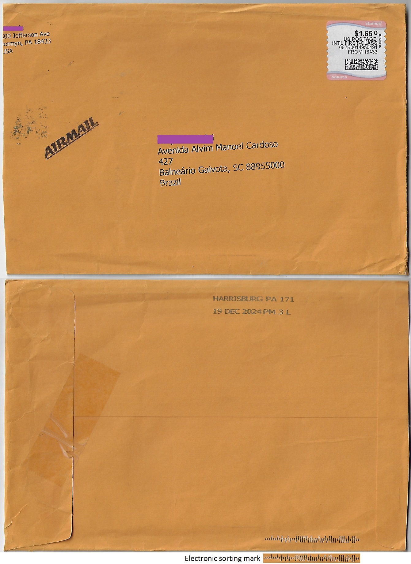 | 84865 | África do Sul, 2022, envelope prioritário registrado enviado de Vredenburg (21/12) para Biguaçu, porteado com franquia mecânica Web RePost (aka "PAT Label") | 10,00 | Foto |