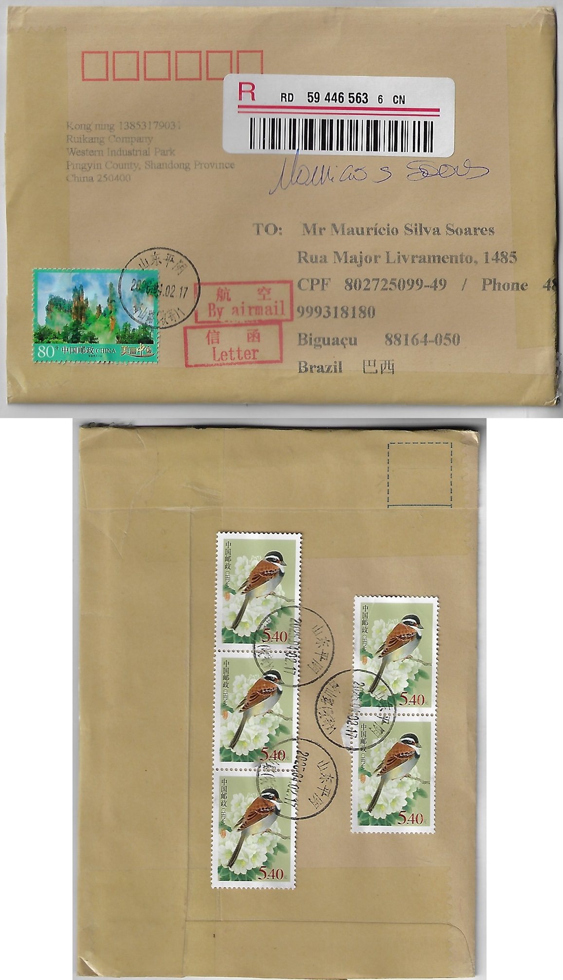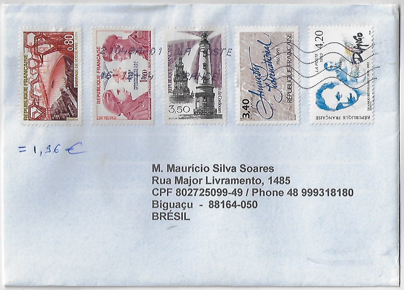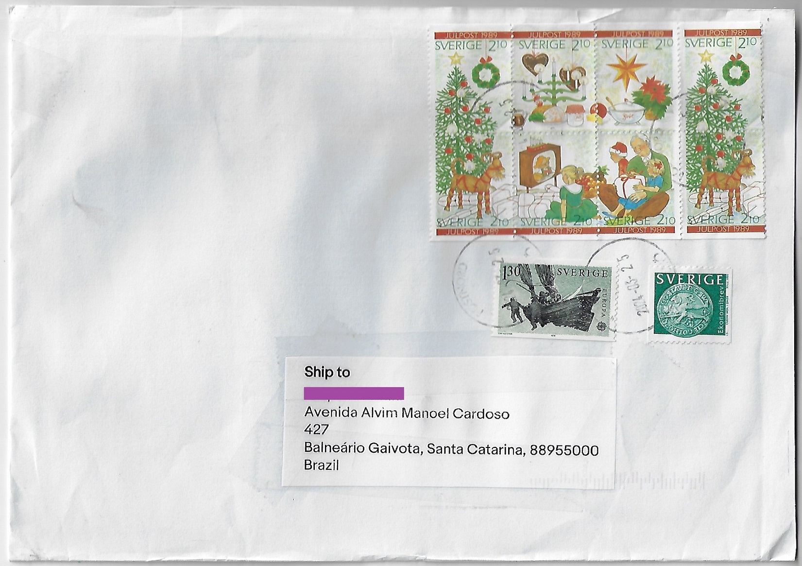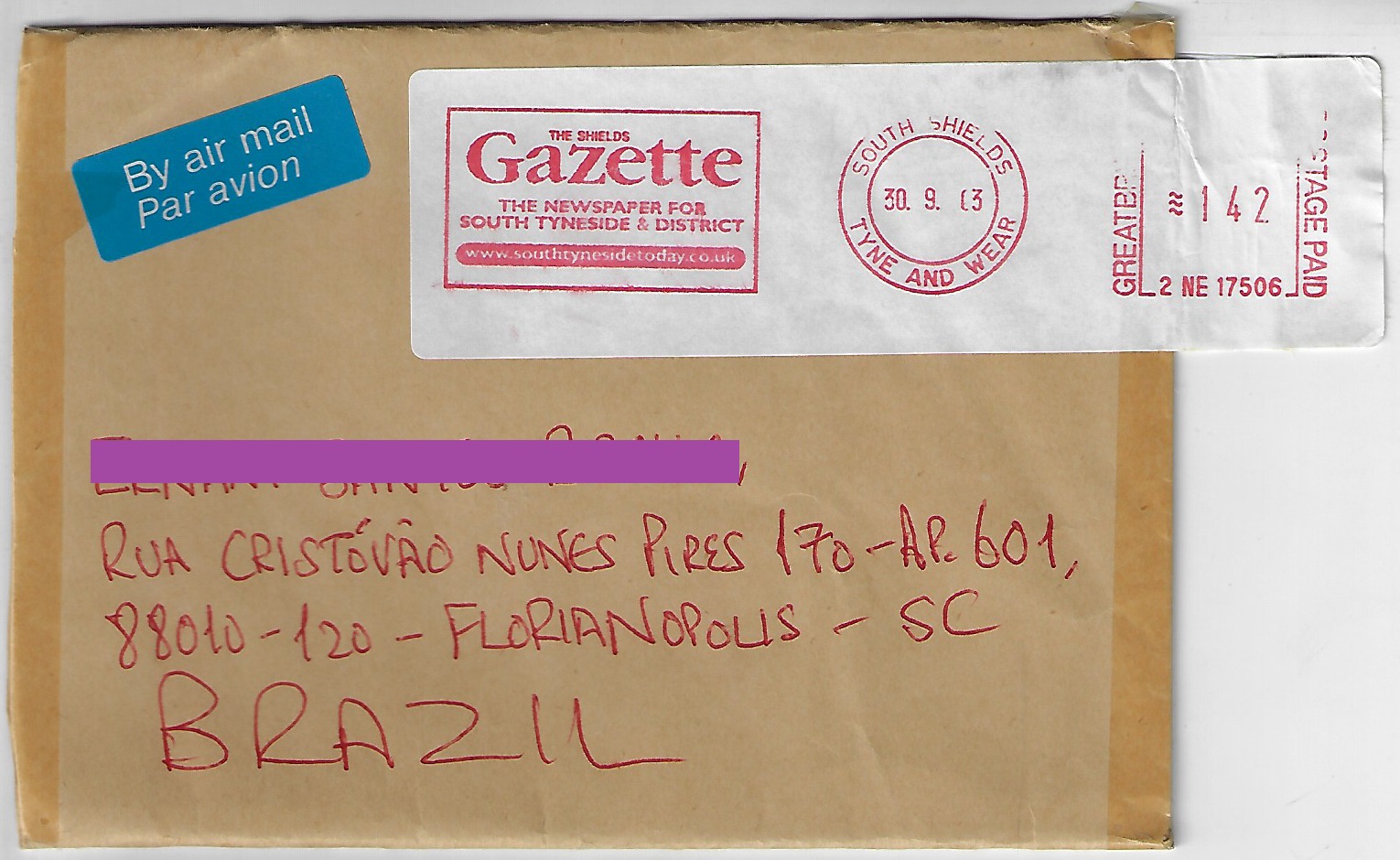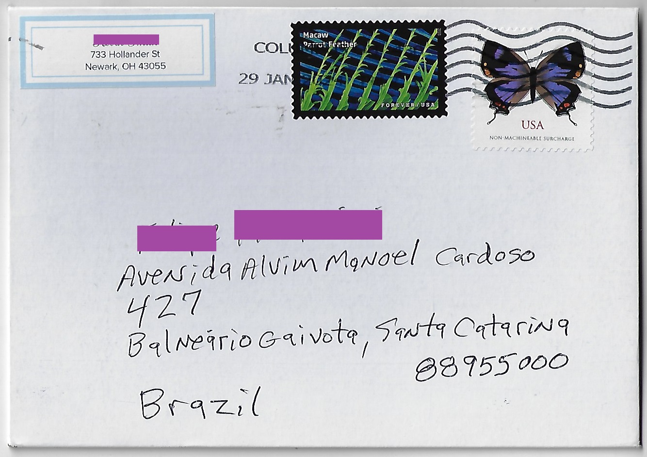 | 84865 | África do Sul, 2022, envelope prioritário registrado enviado de Vredenburg (21/12) para Biguaçu, porteado com franquia mecânica Web RePost (aka "PAT Label") | 10,00 | Foto |