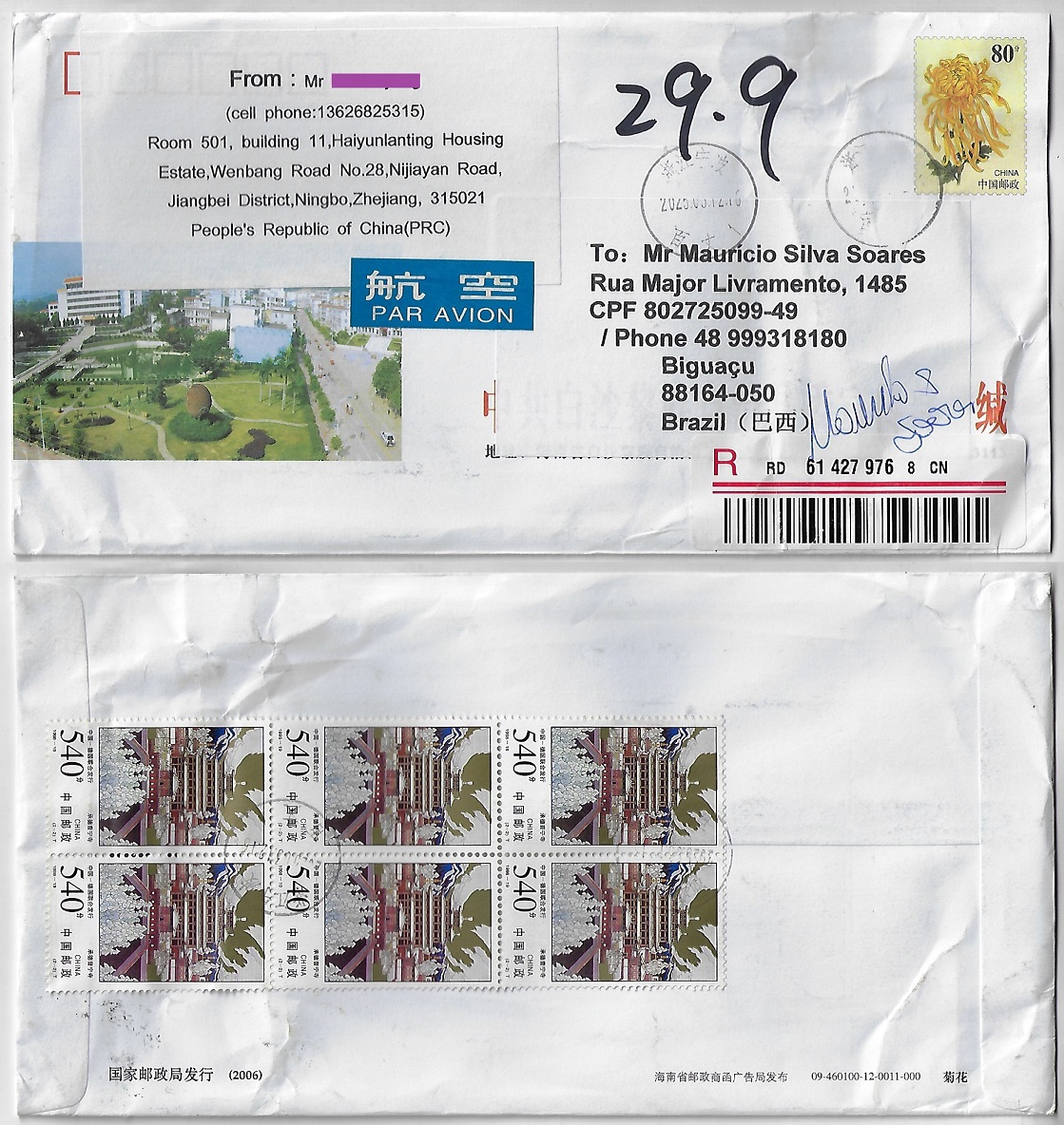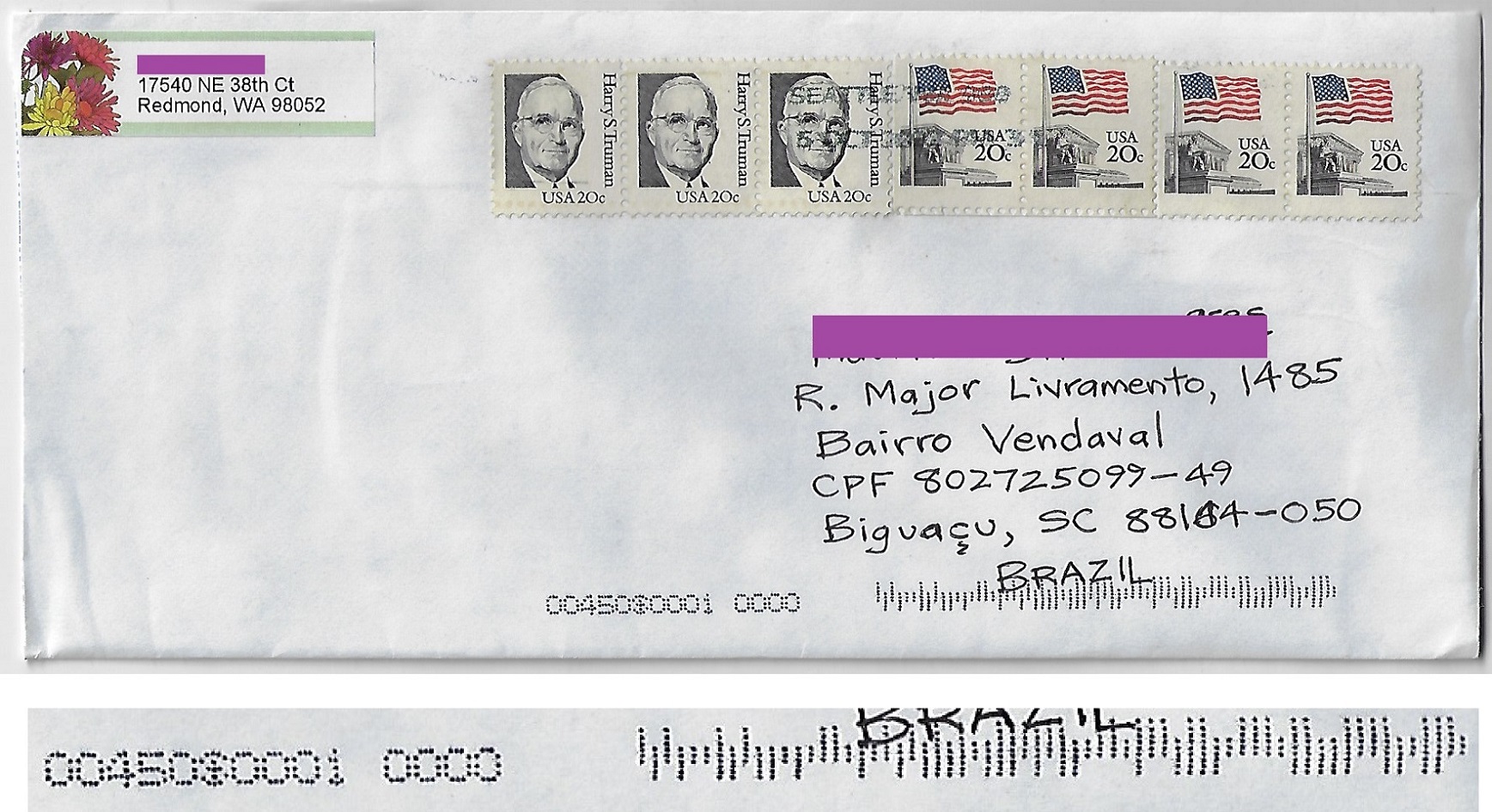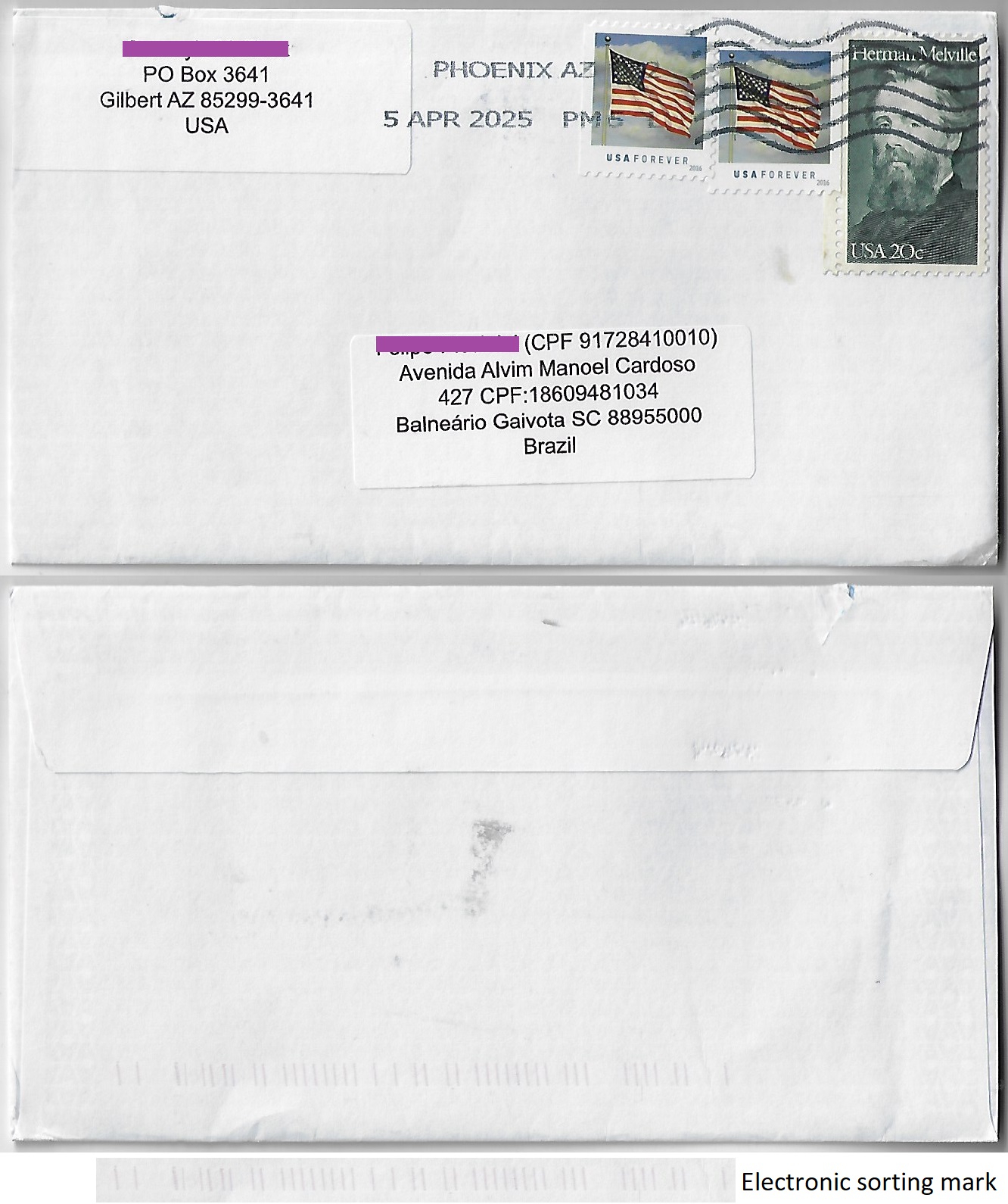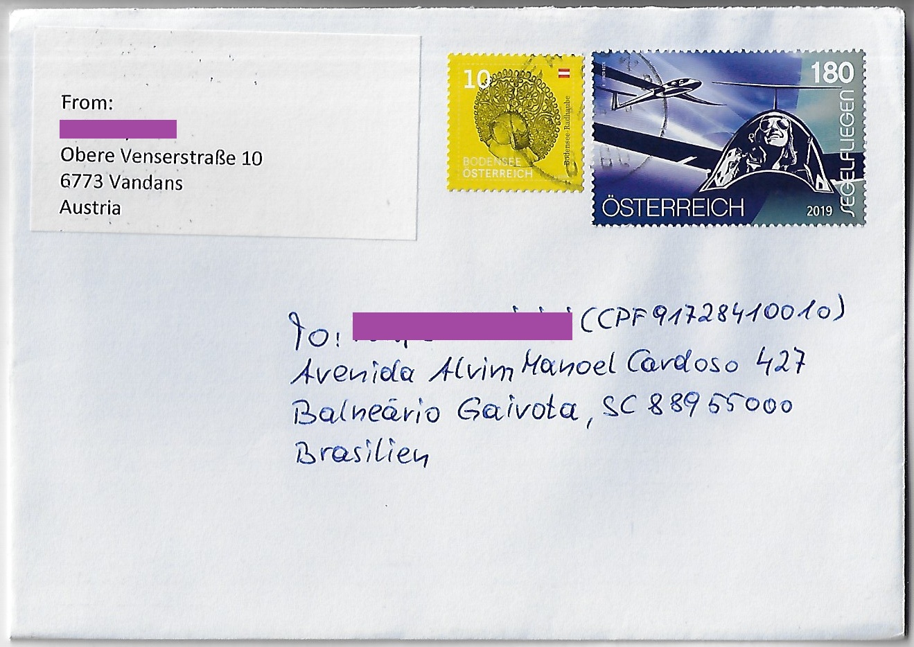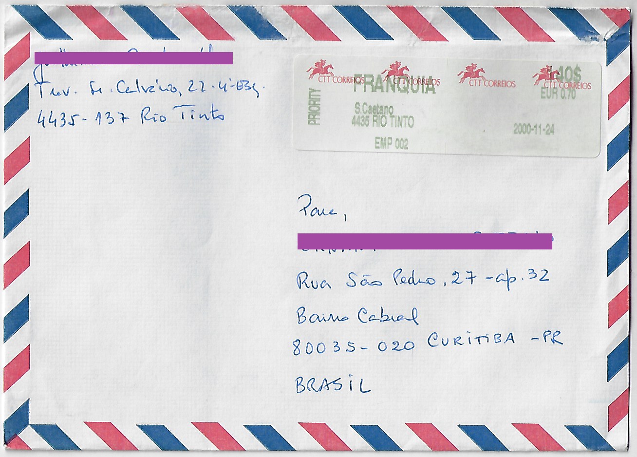 | 84865 | África do Sul, 2022, envelope prioritário registrado enviado de Vredenburg (21/12) para Biguaçu, porteado com franquia mecânica Web RePost (aka "PAT Label") | 10,00 | Foto |