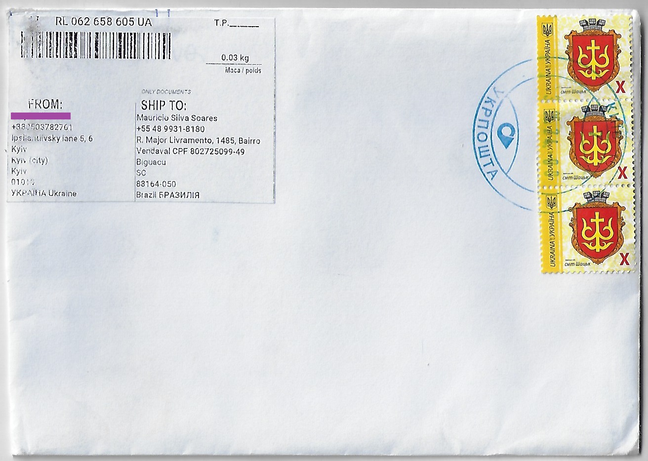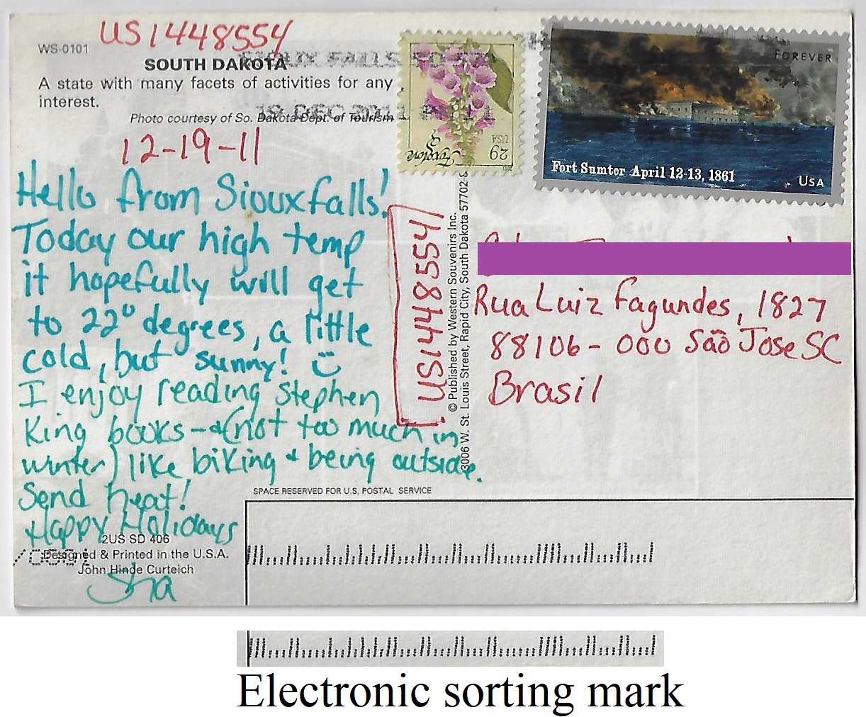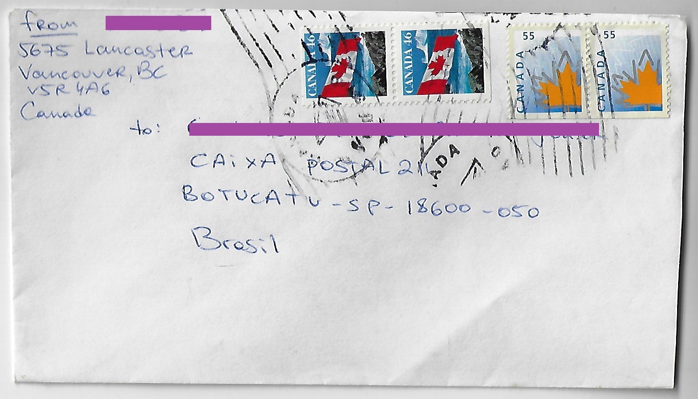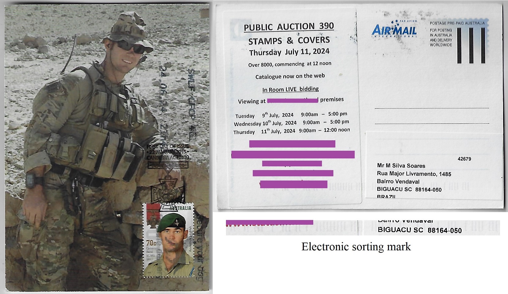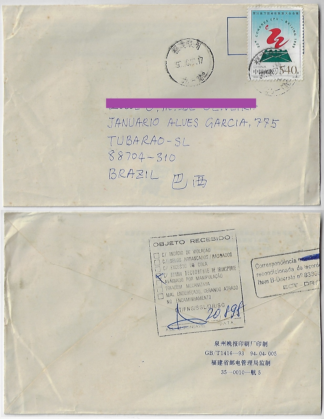 | 84865 | África do Sul, 2022, envelope prioritário registrado enviado de Vredenburg (21/12) para Biguaçu, porteado com franquia mecânica Web RePost (aka "PAT Label") | 10,00 | Foto |