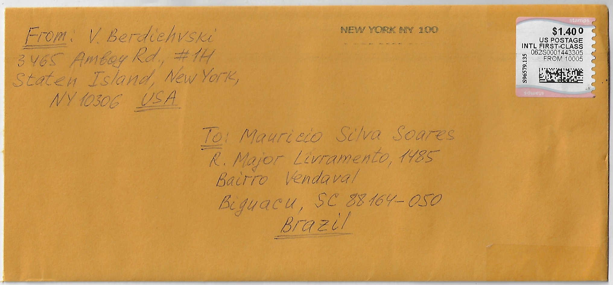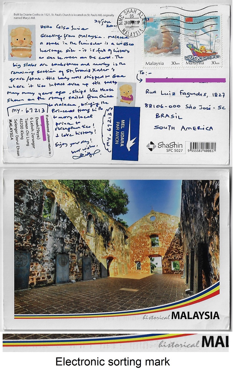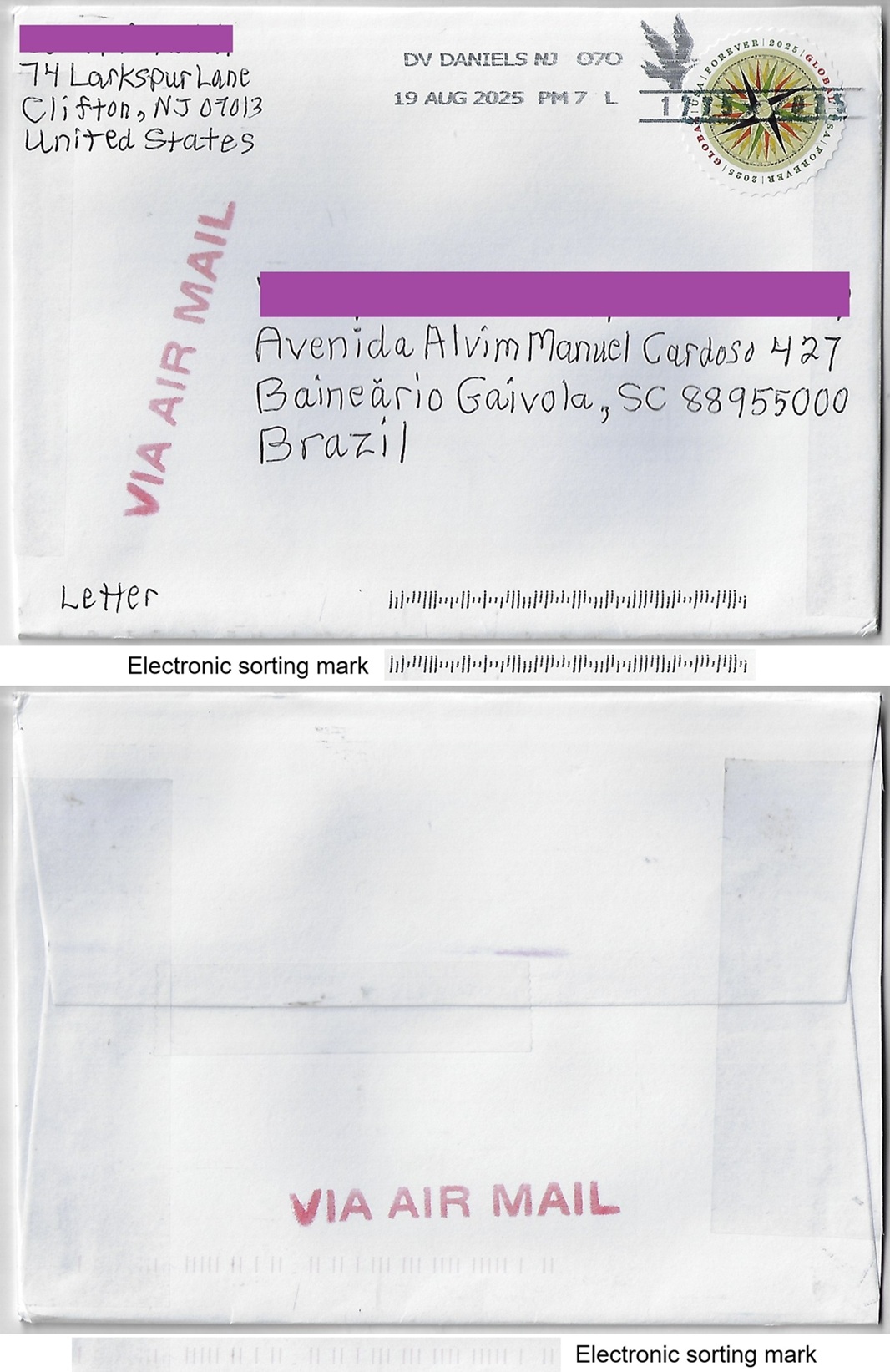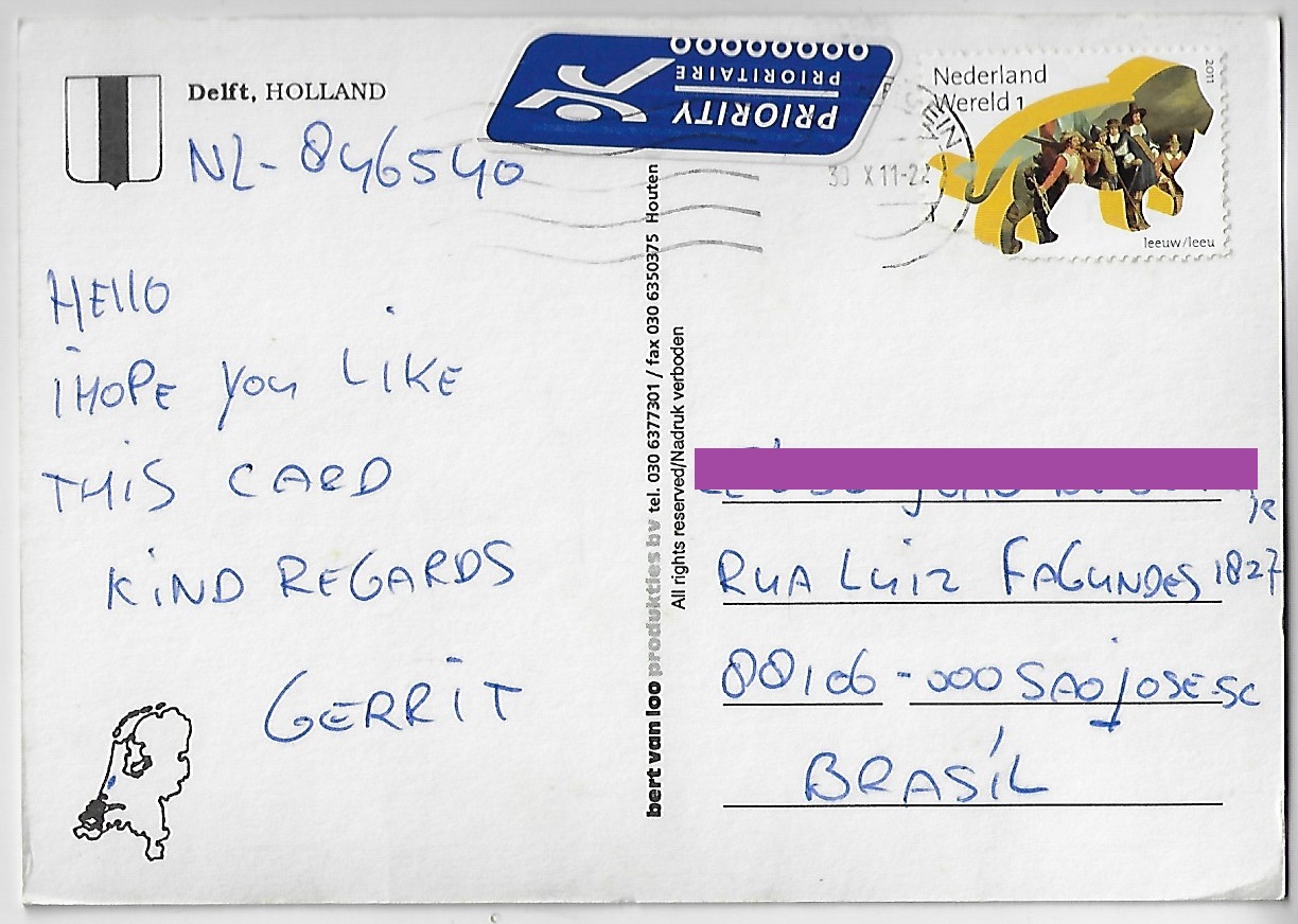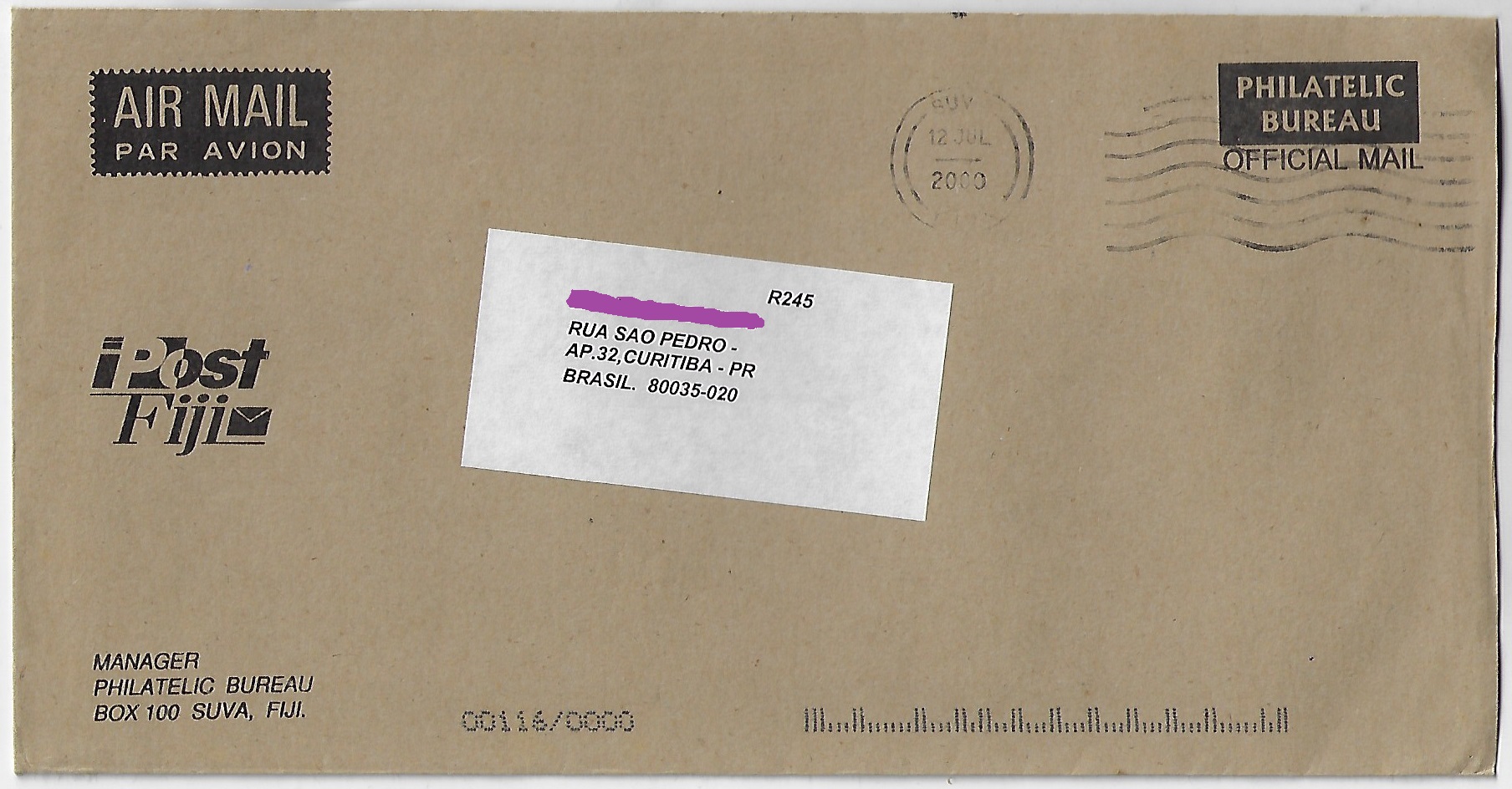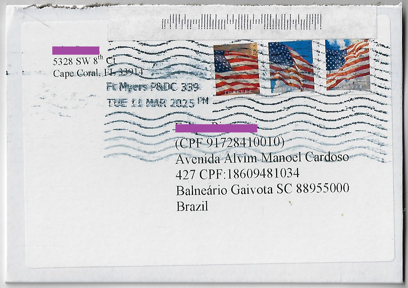 | 84865 | África do Sul, 2022, envelope prioritário registrado enviado de Vredenburg (21/12) para Biguaçu, porteado com franquia mecânica Web RePost (aka "PAT Label") | 10,00 | Foto |