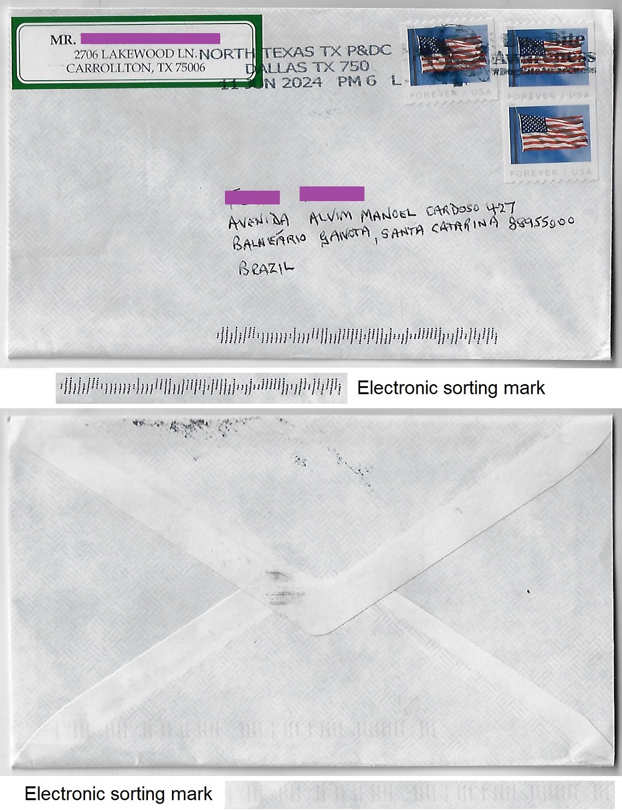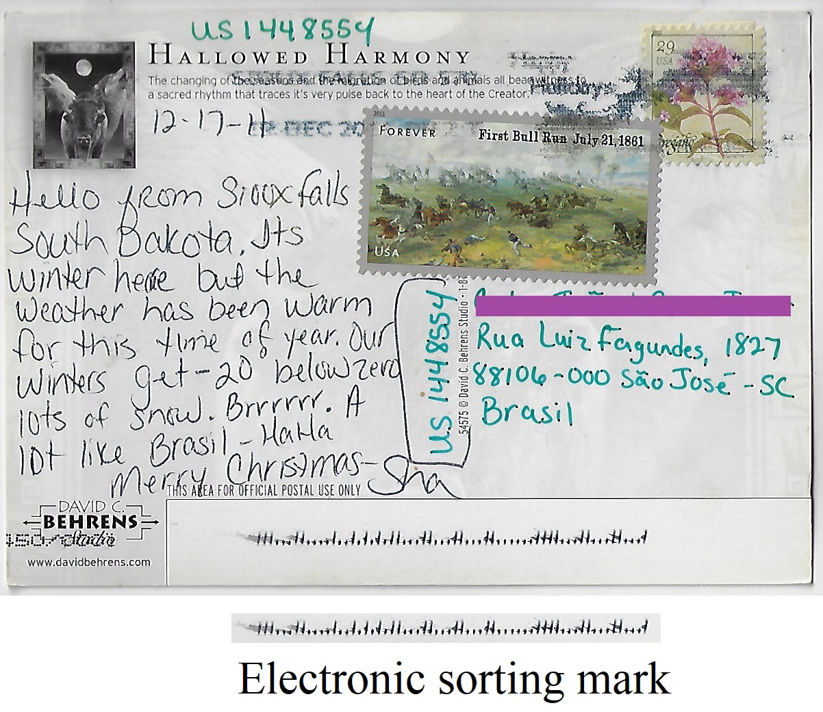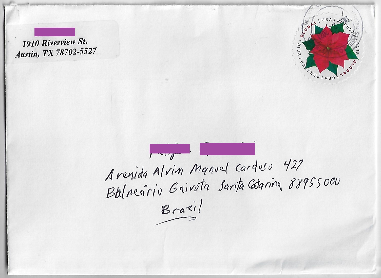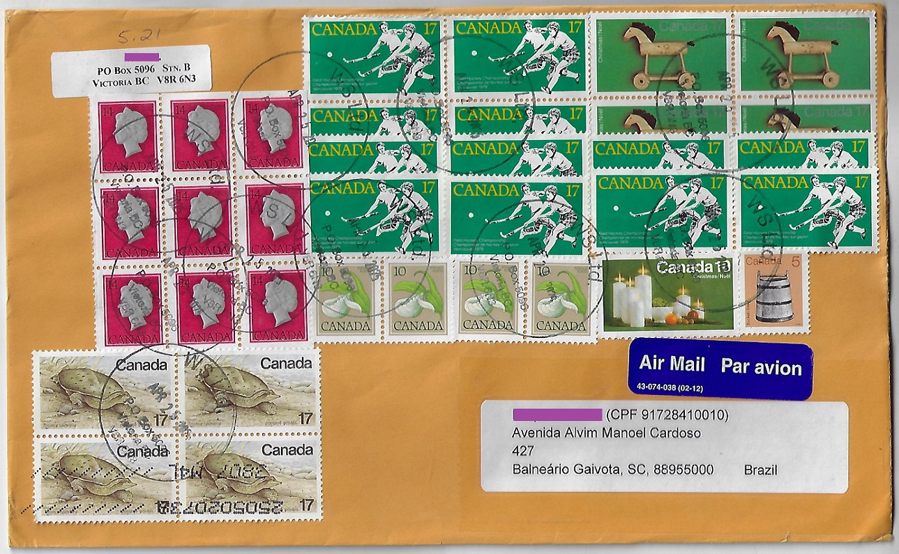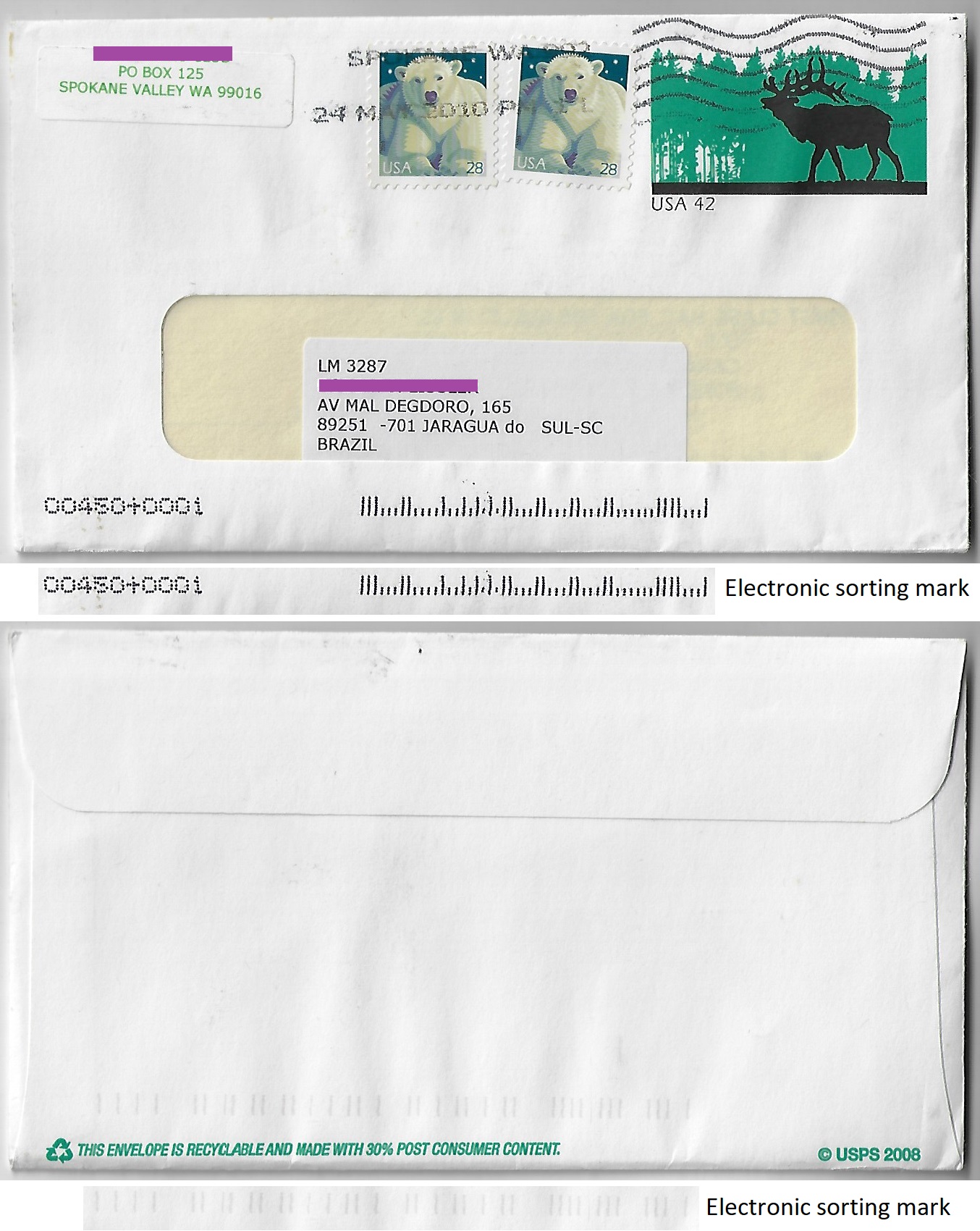 | 84865 | África do Sul, 2022, envelope prioritário registrado enviado de Vredenburg (21/12) para Biguaçu, porteado com franquia mecânica Web RePost (aka "PAT Label") | 10,00 | Foto |