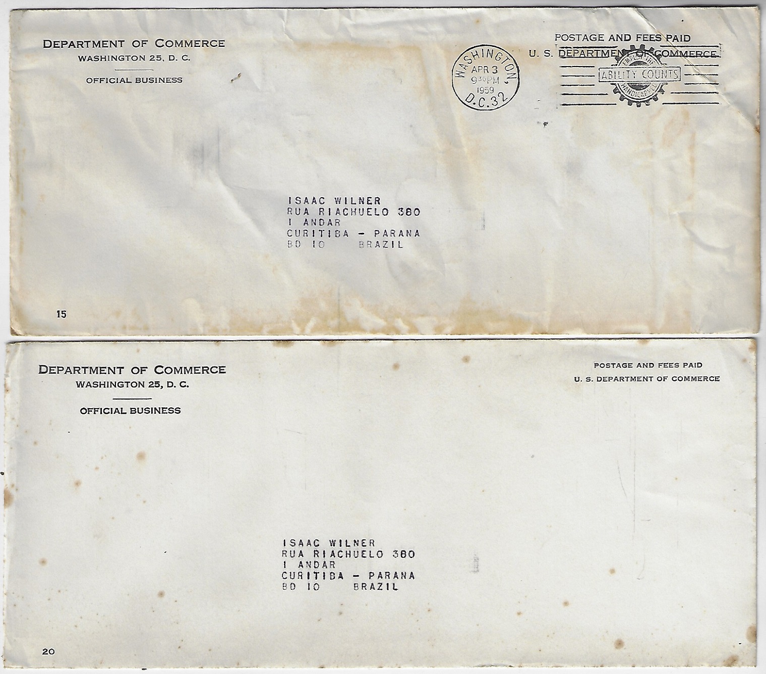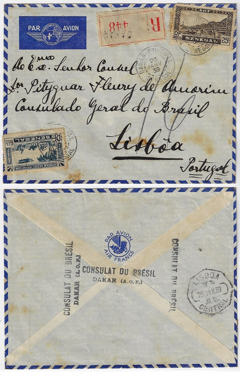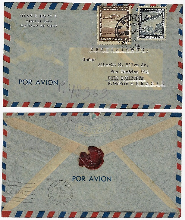 | 82550 | Venezuela, 1948, envelope aéreo registrado enviado de Mérida para o Rio de Janeiro, porteado com selos Estátua de Simon Bolivar 5 e 30 Centavos e Casa Natal de Simon Bolivar 20 Centavos | 10,00 | Foto |