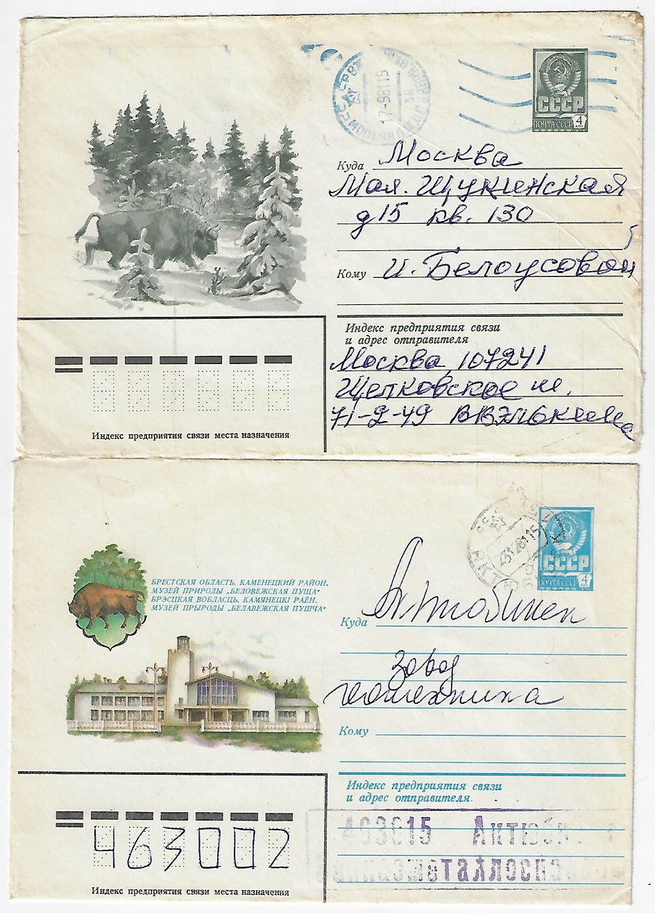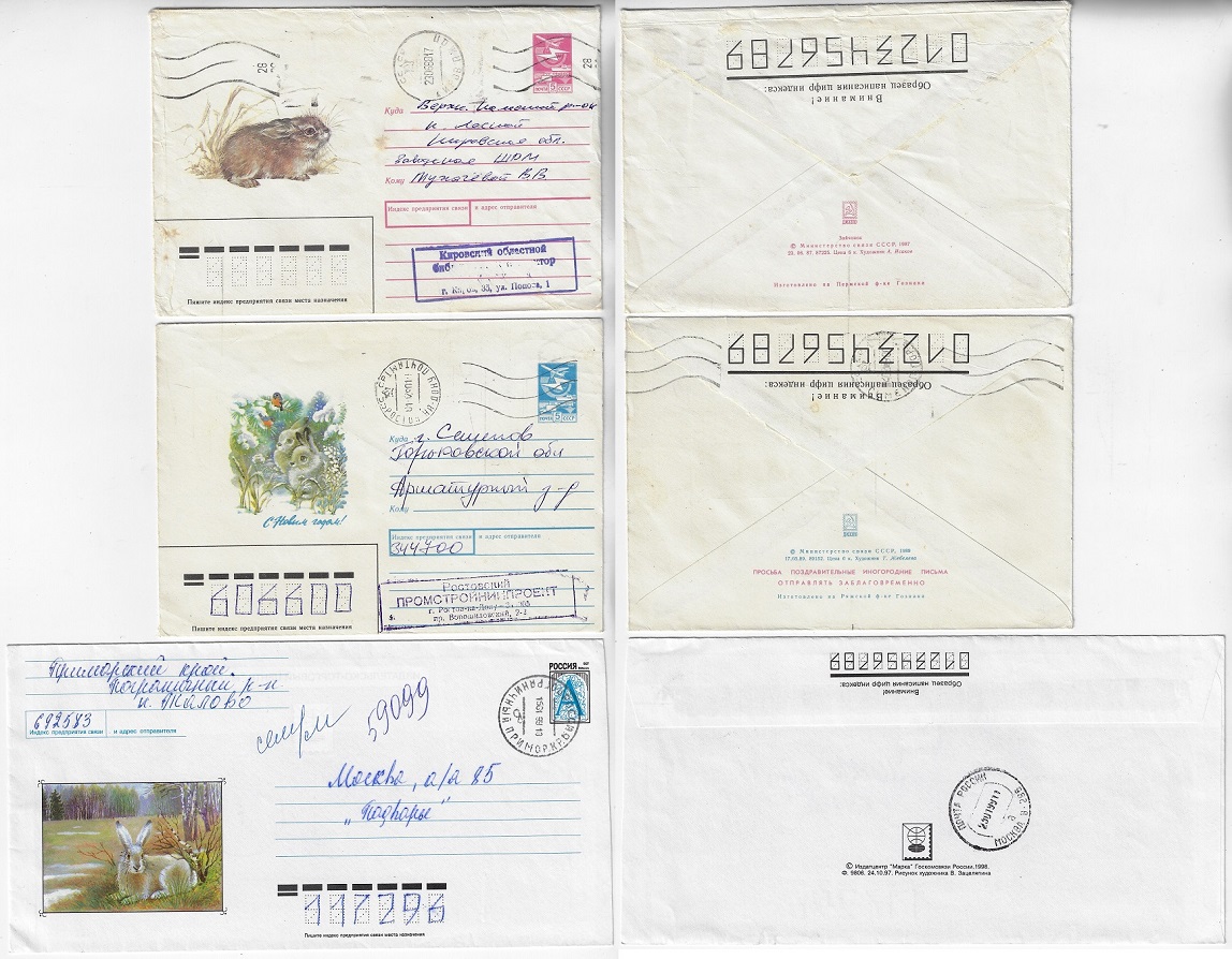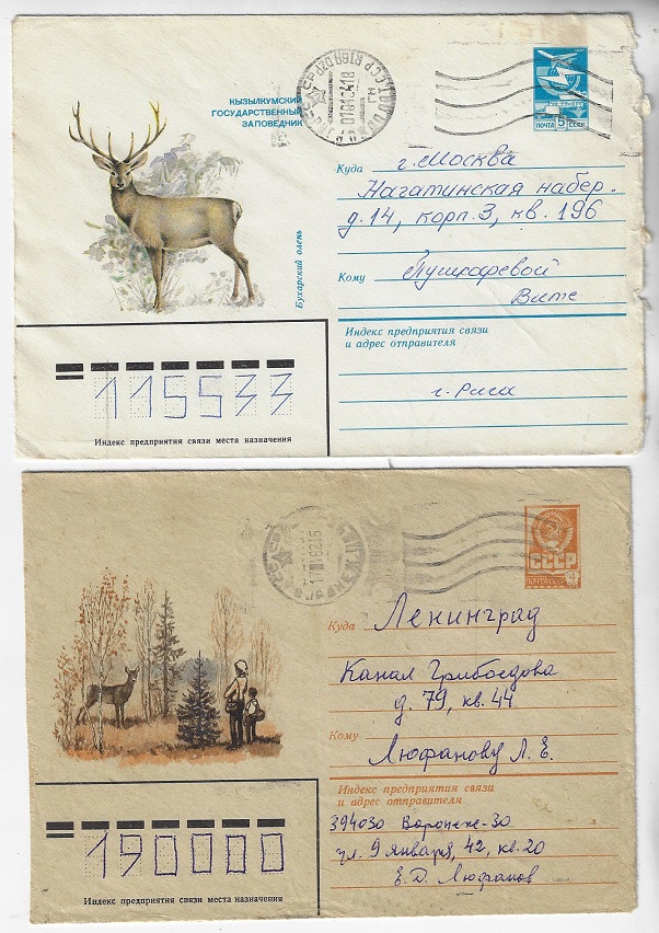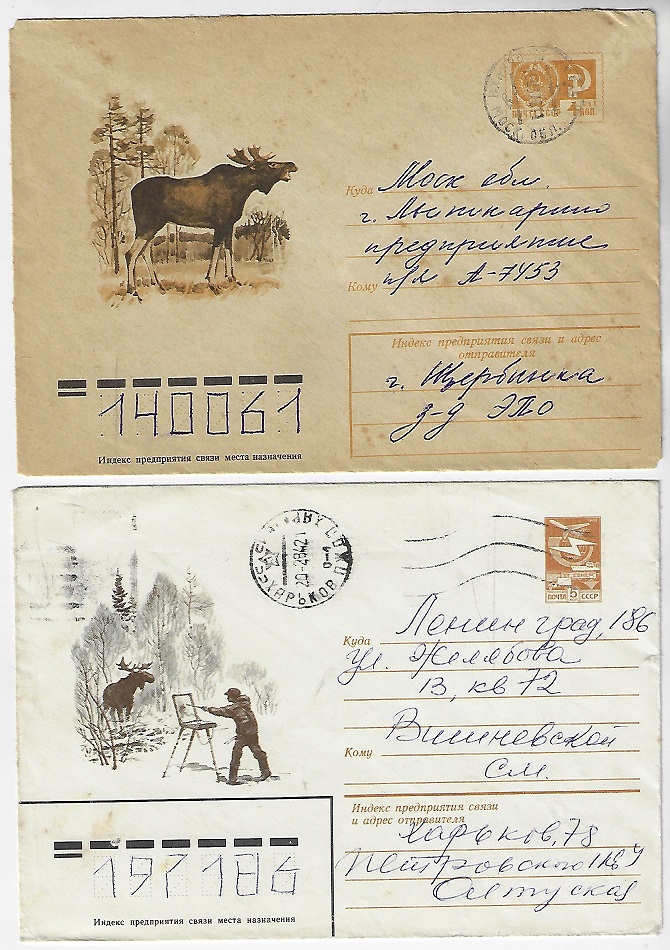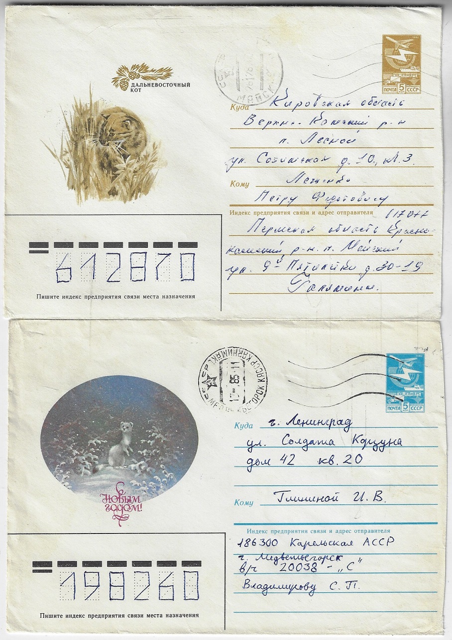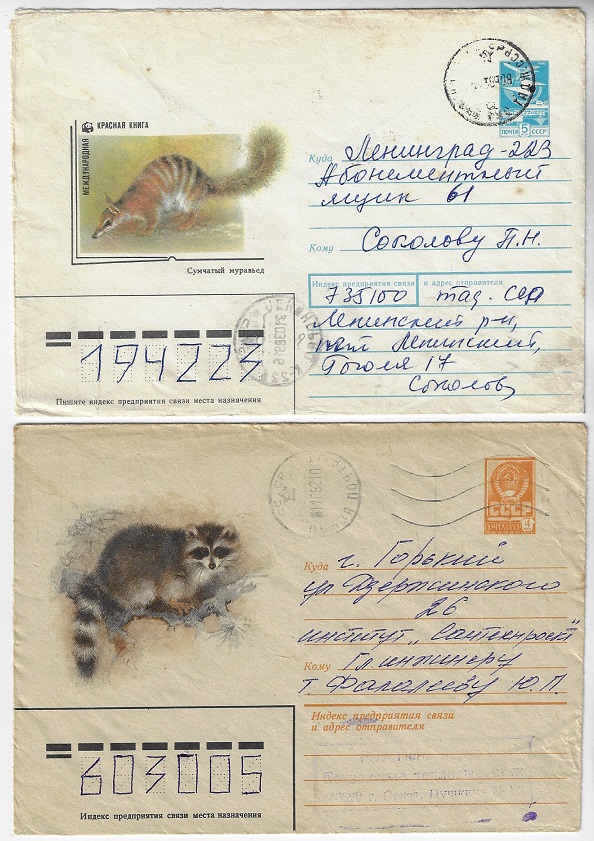 | 10522 | URSS, 1984/1985, 2 Inteiros Postais tipo envelope com desenho de pequenos carnívoros, circulados | 20,00 | Foto |