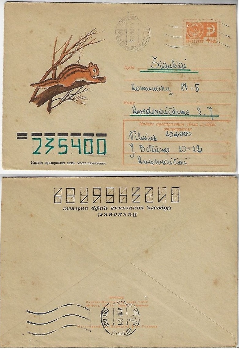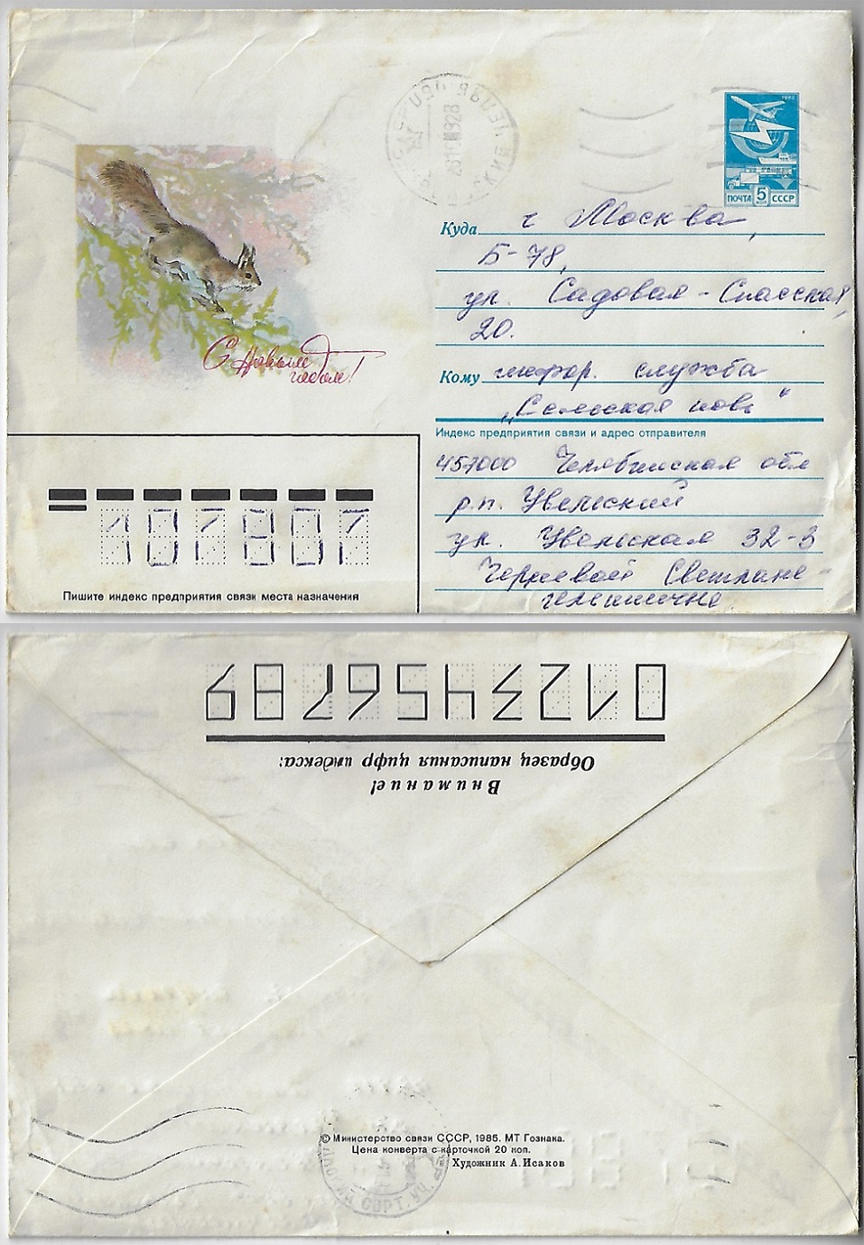 | 10524 | URSS, 1985, Inteiro Postal tipo envelope com desenho de esquilo, circulado | 10,00 | Foto |