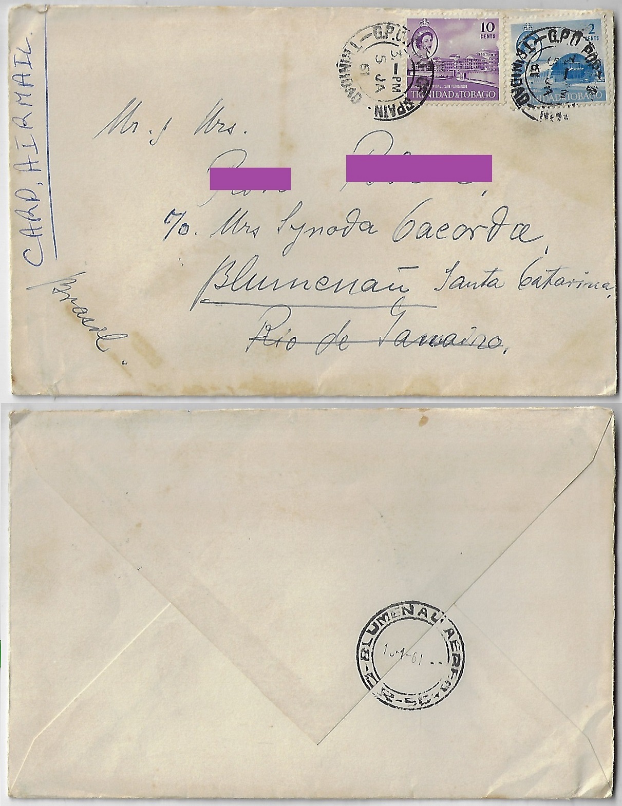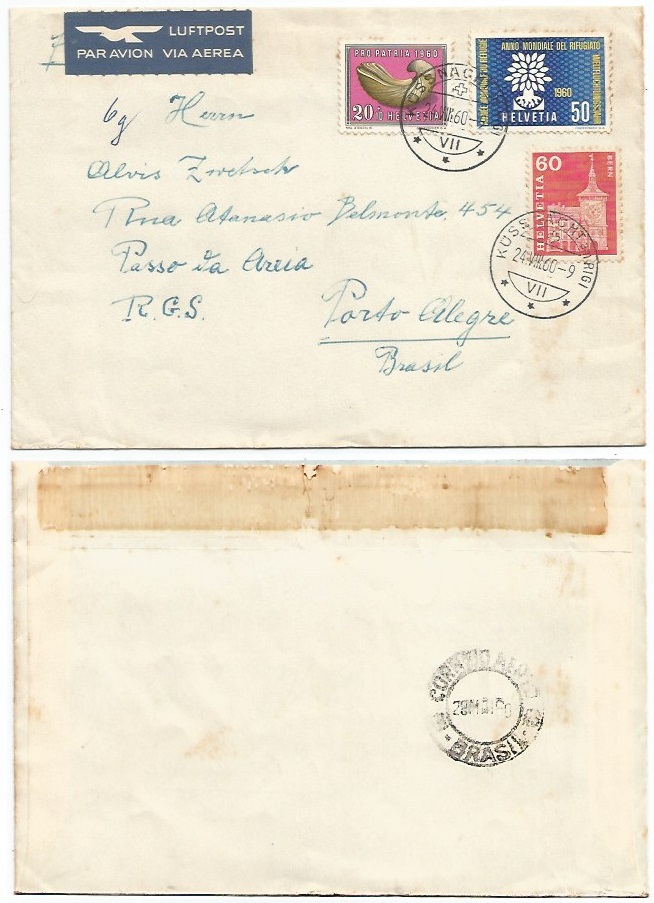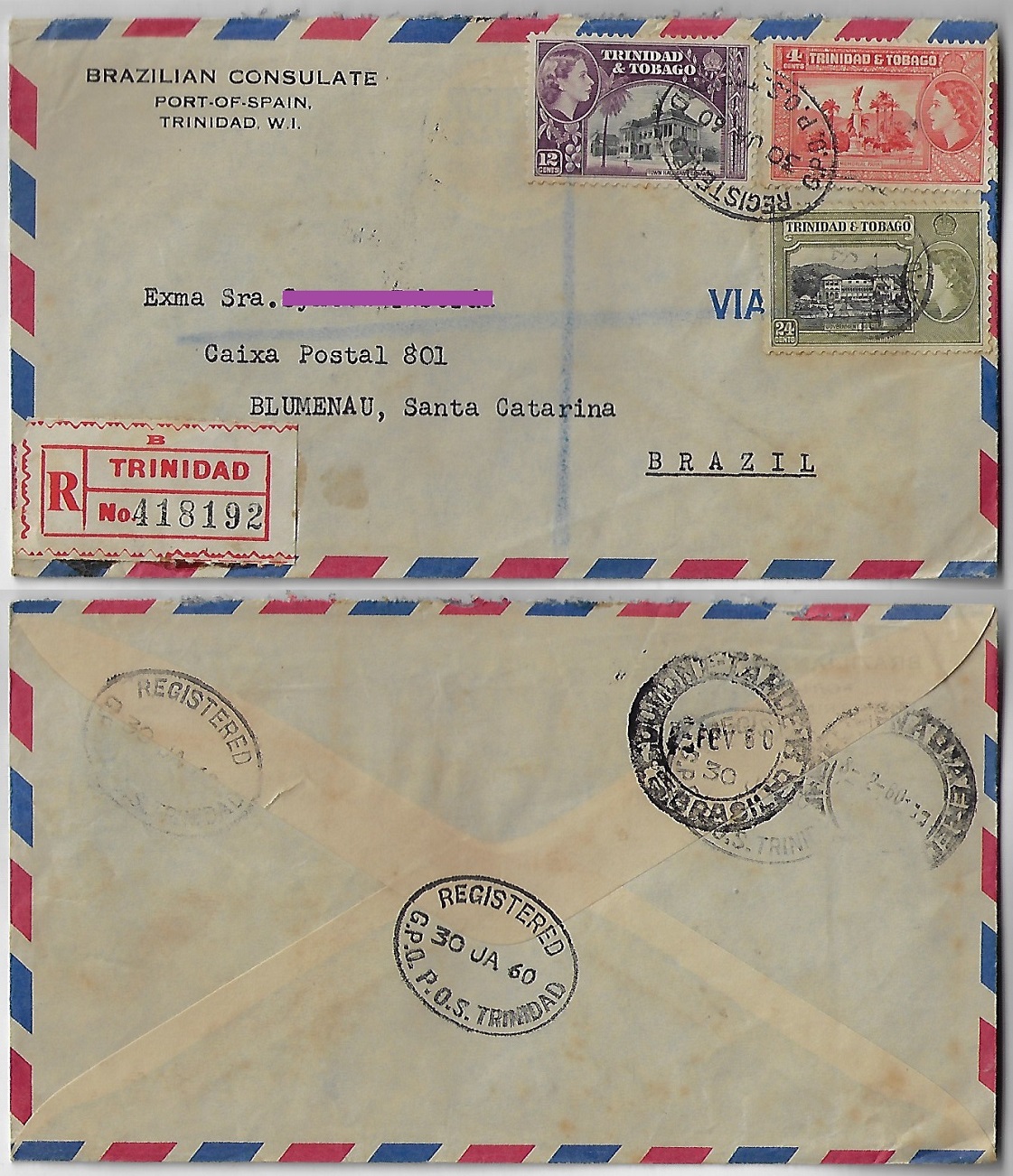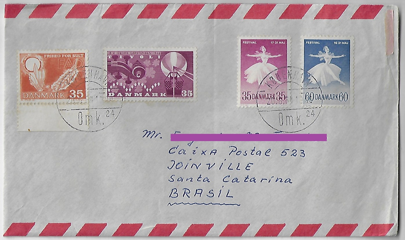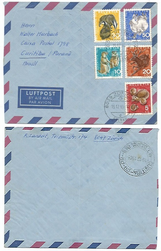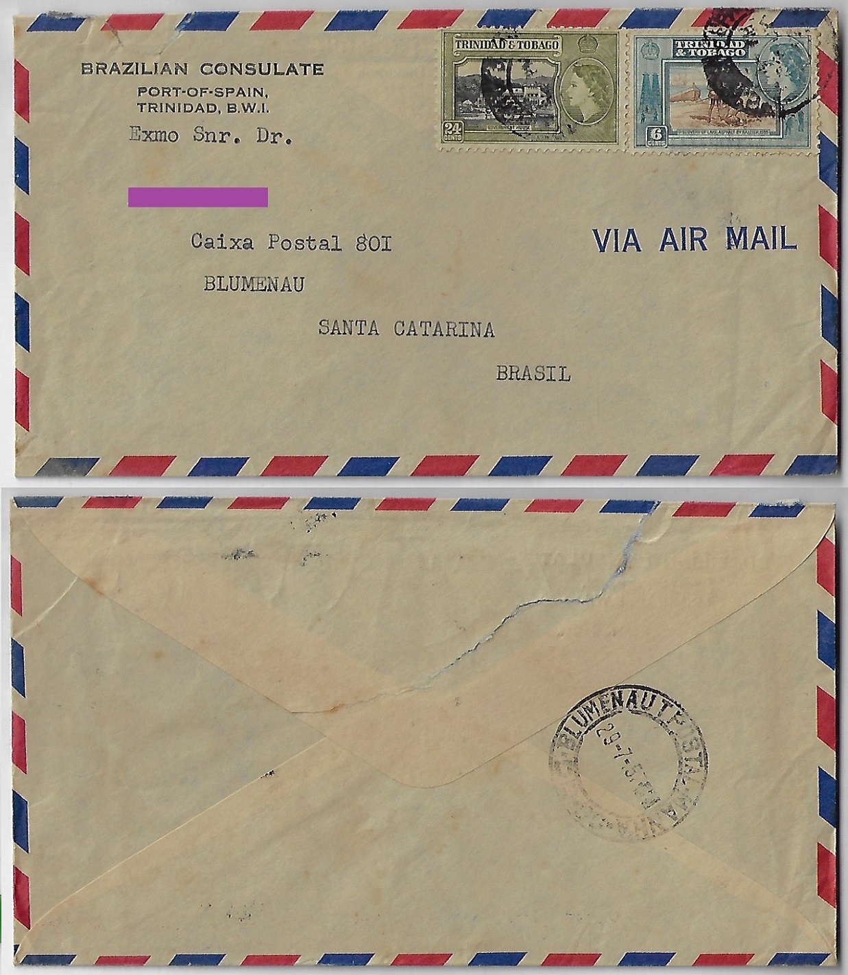 | 46101 | Argentina, 1965, envelope aéreo registrado enviado de Buenos Aires (16/6) para Blumenau (24/6), porteado com selos Uniforme e Árvore | 10,00 | Foto |