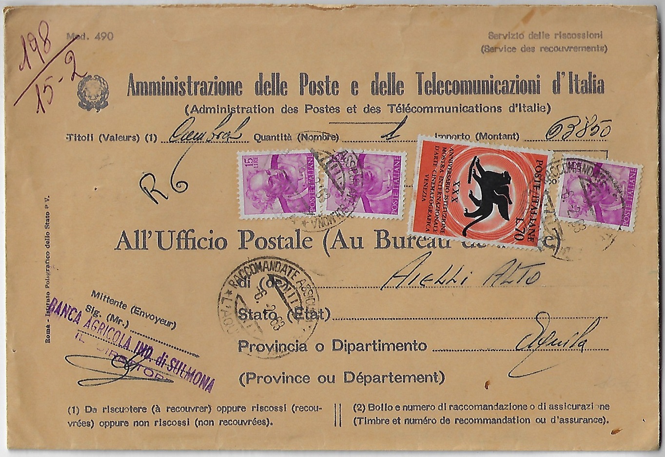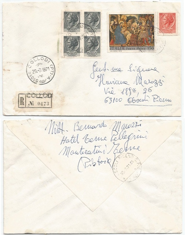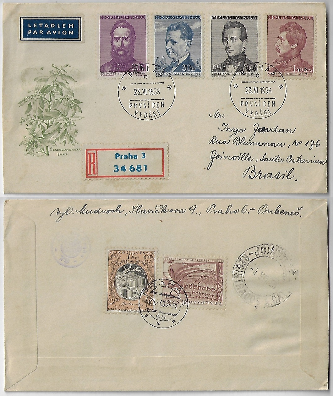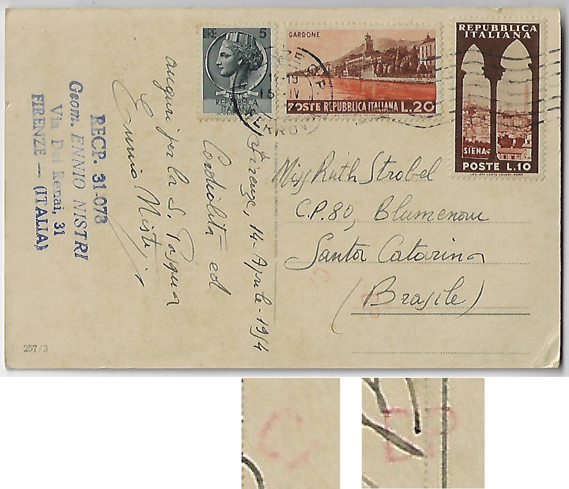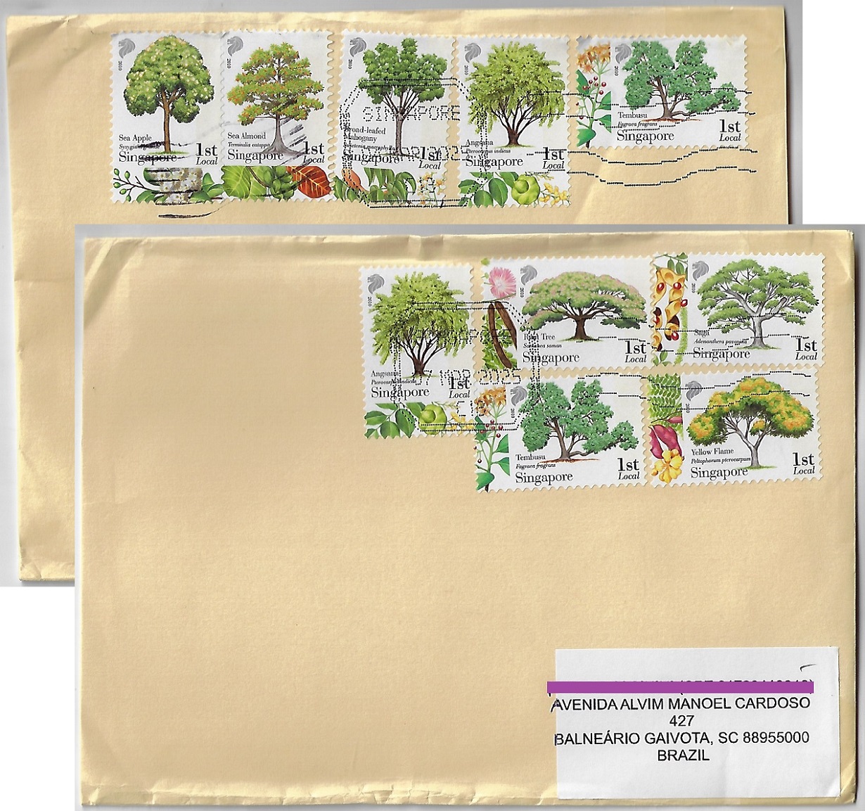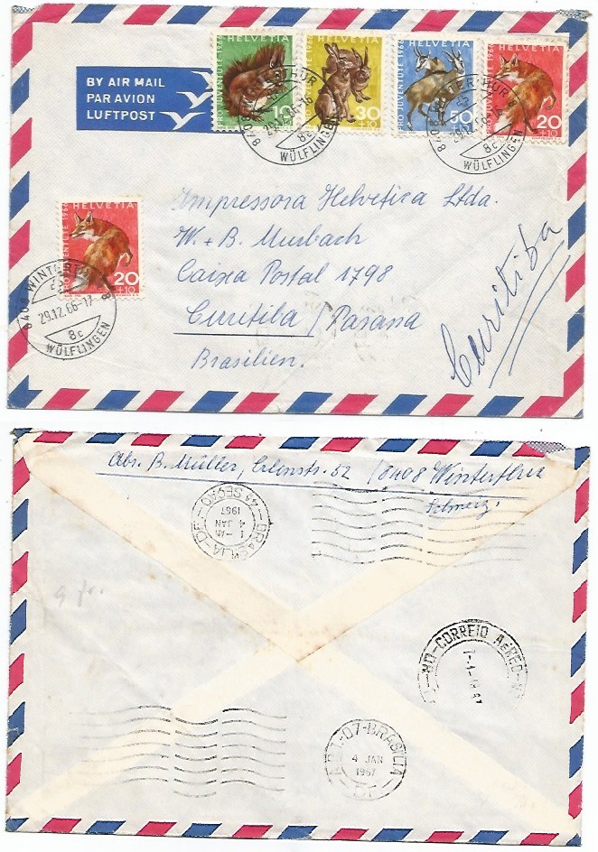 | 46101 | Argentina, 1965, envelope aéreo registrado enviado de Buenos Aires (16/6) para Blumenau (24/6), porteado com selos Uniforme e Árvore | 10,00 | Foto |