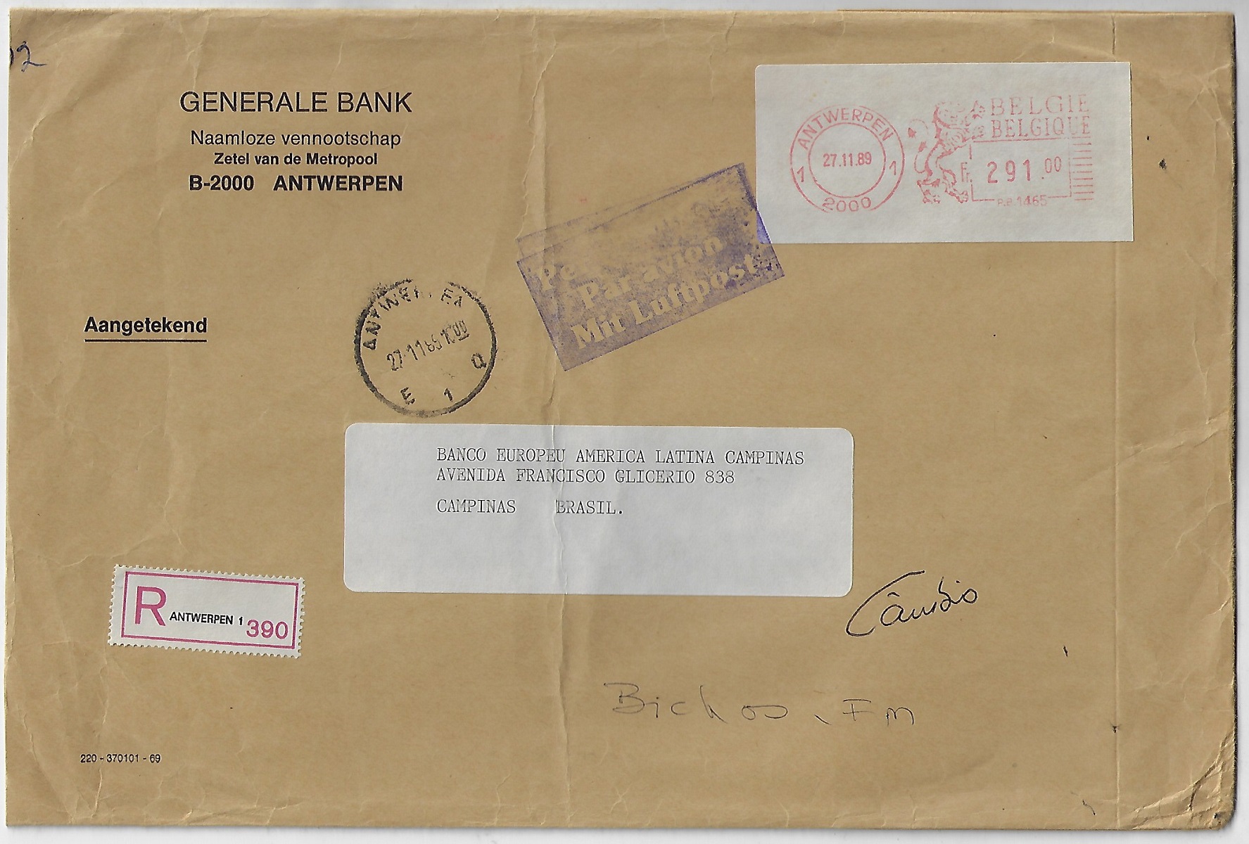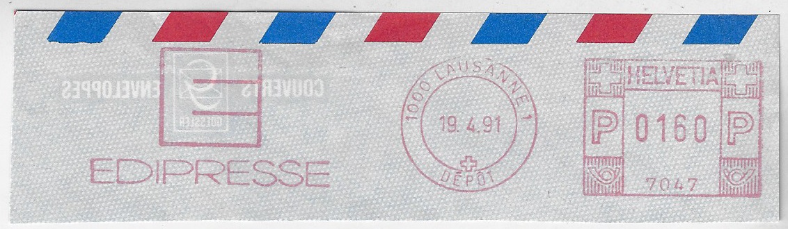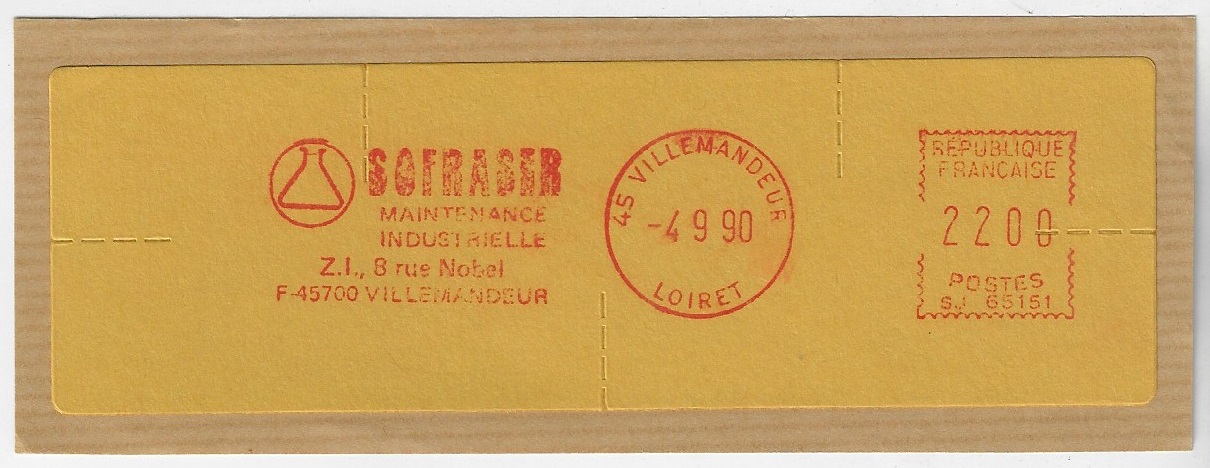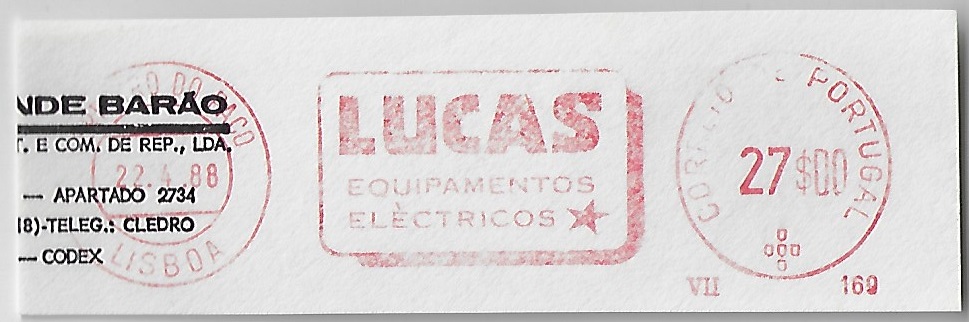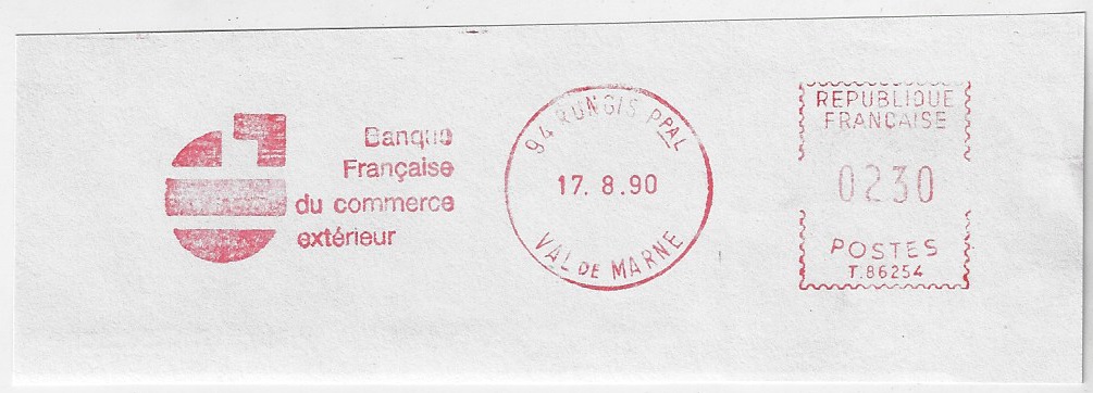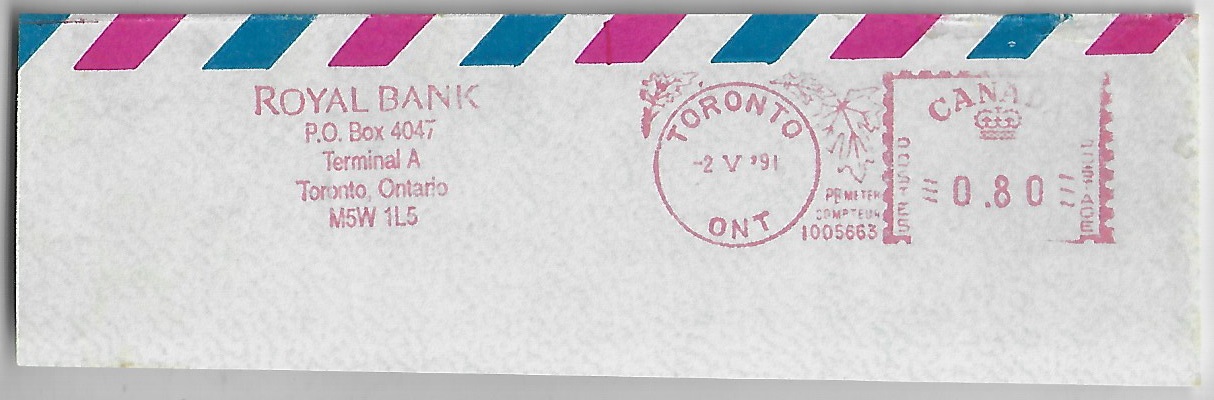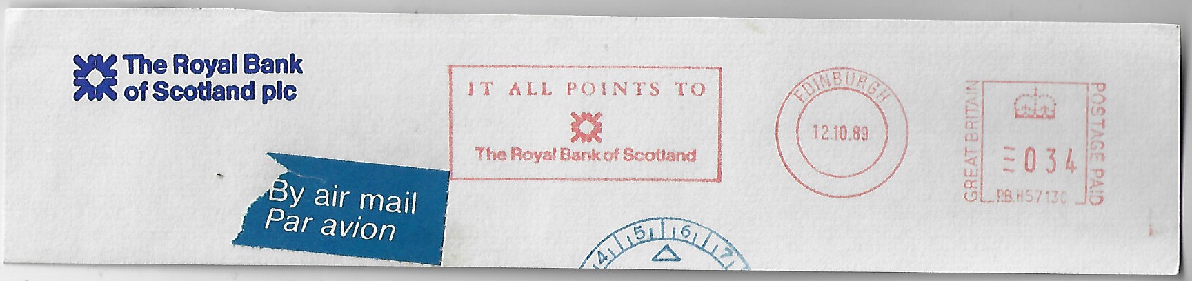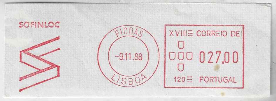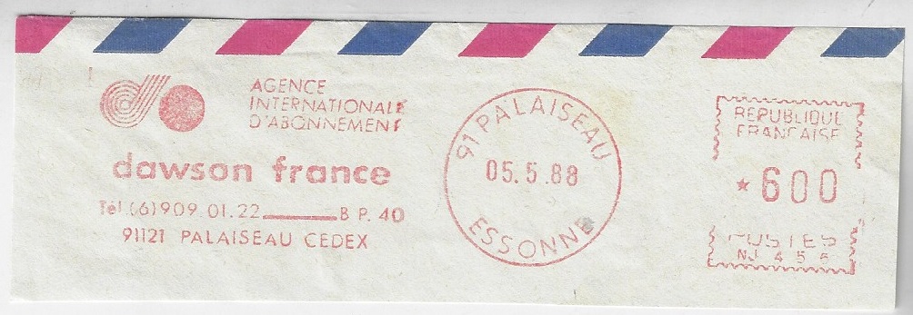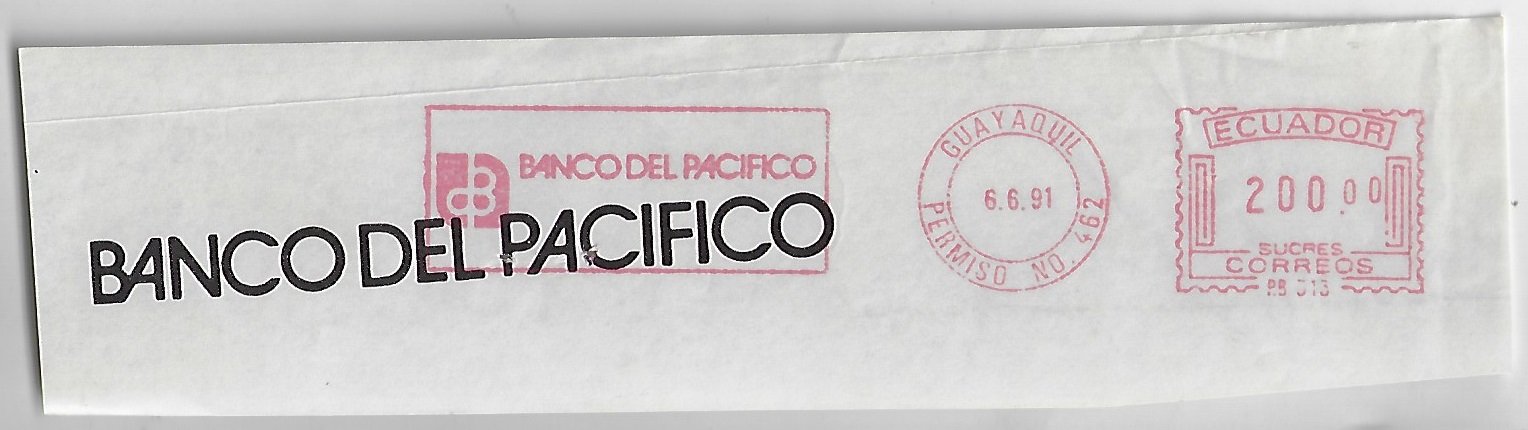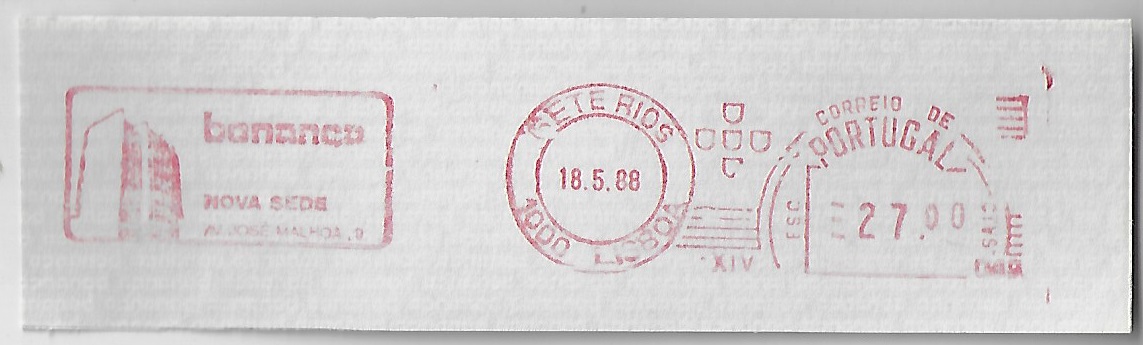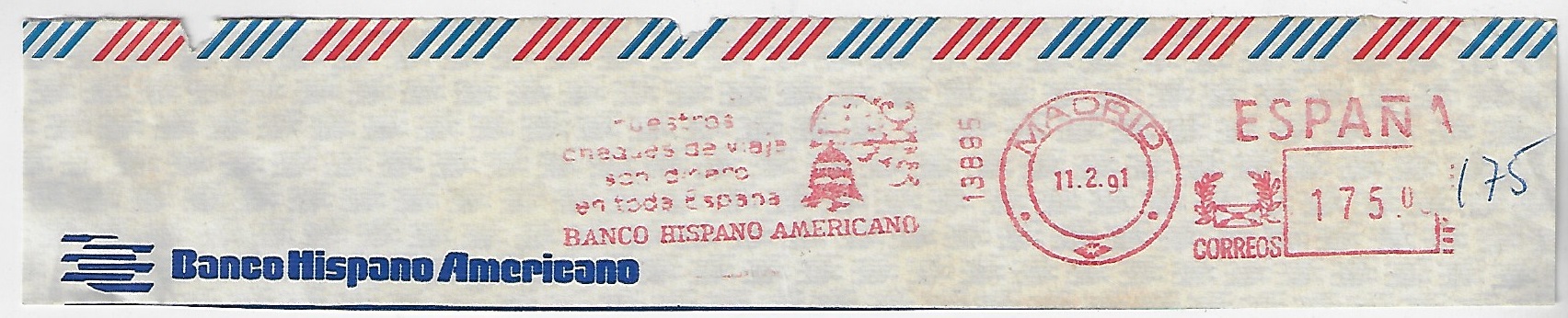 | 59200 | África do Sul, 1991, fragmento de envelope aéreo porteado com franquia mecânica Hasler "Mailmaster" com slogan "Volkskas Bank ( Banco Popular)", de Johannesburg |