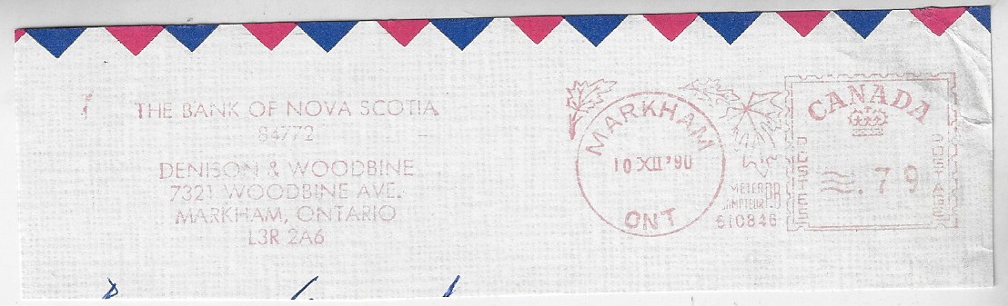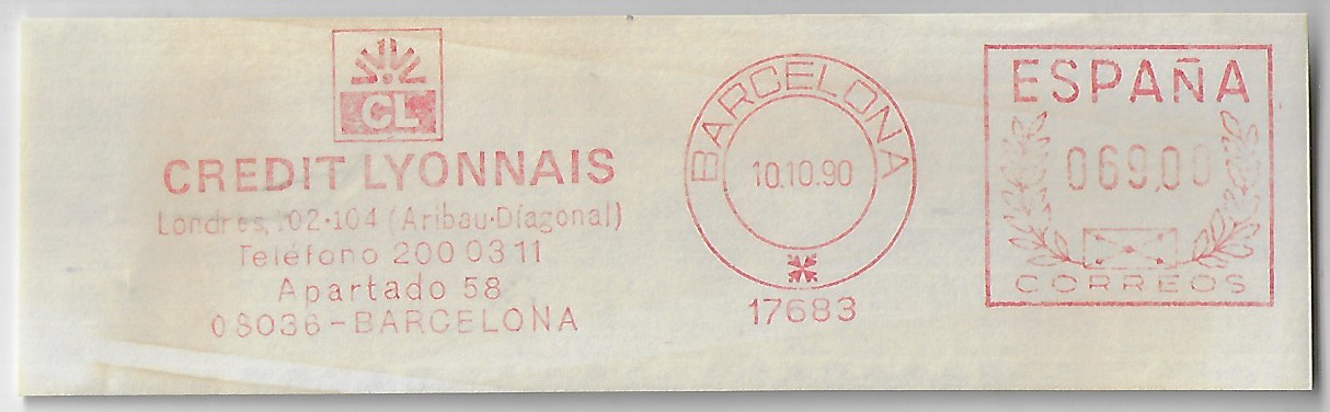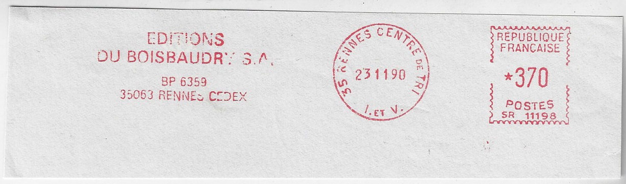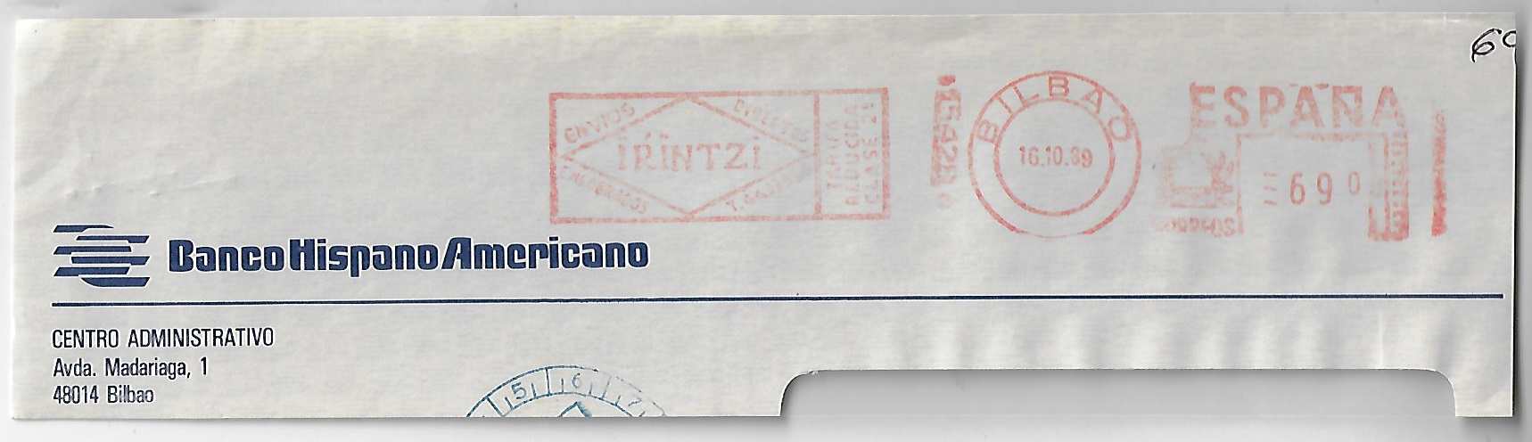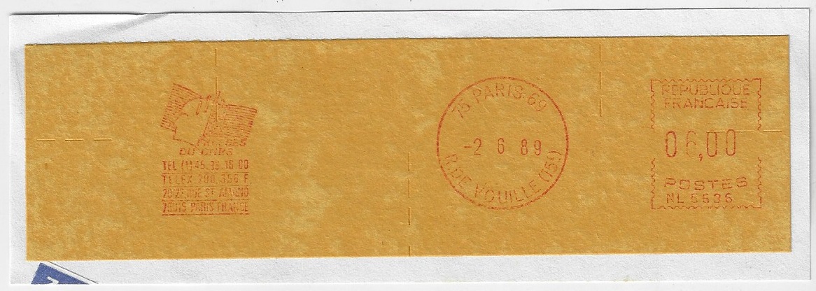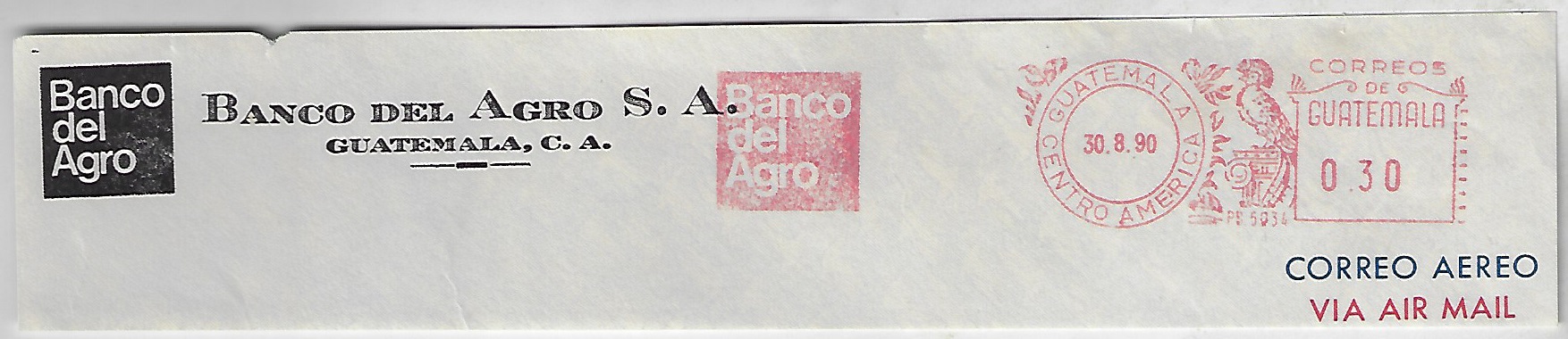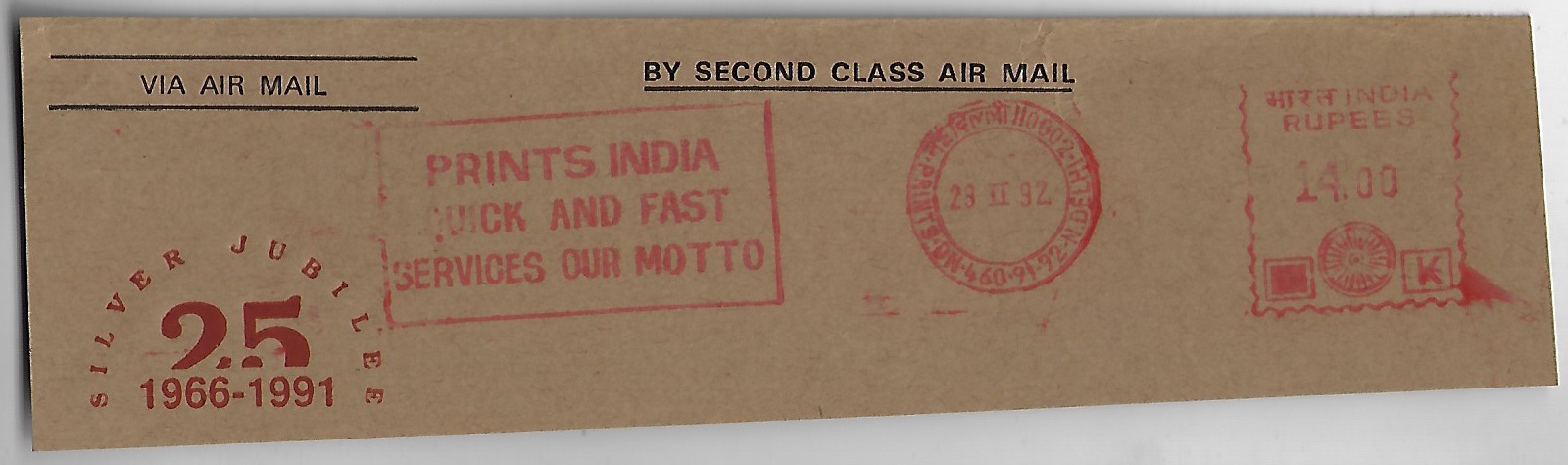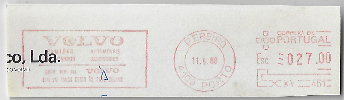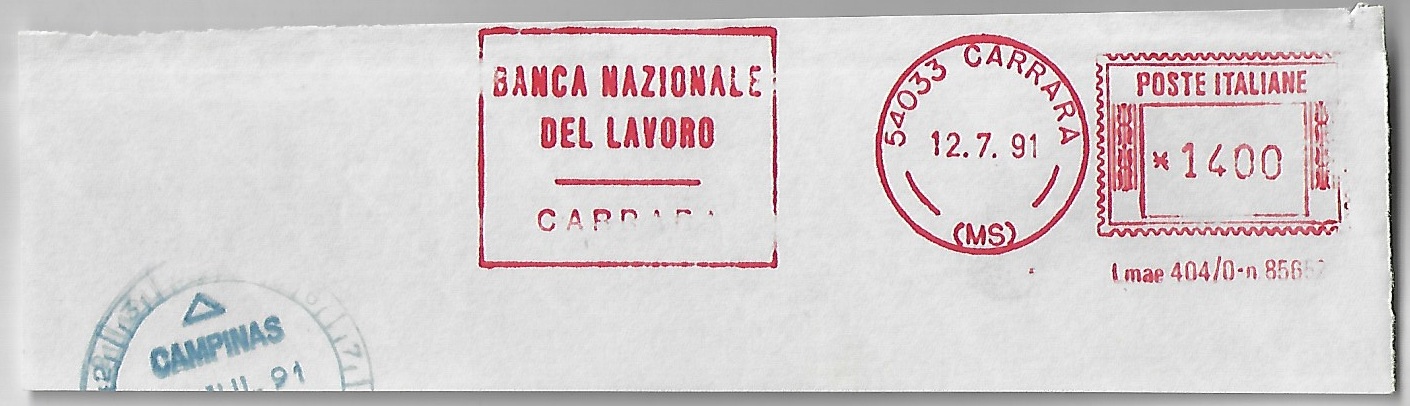 | 59200 | África do Sul, 1991, fragmento de envelope aéreo porteado com franquia mecânica Hasler "Mailmaster" com slogan "Volkskas Bank ( Banco Popular)", de Johannesburg |